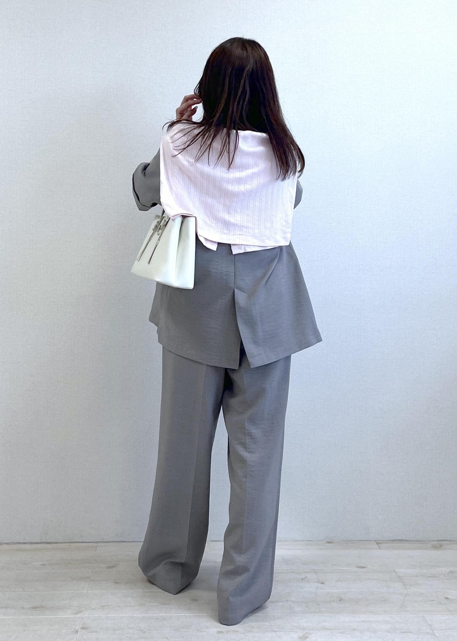着丈はヒップ下の長めでカジュアルスタイルにもおすすめ。
