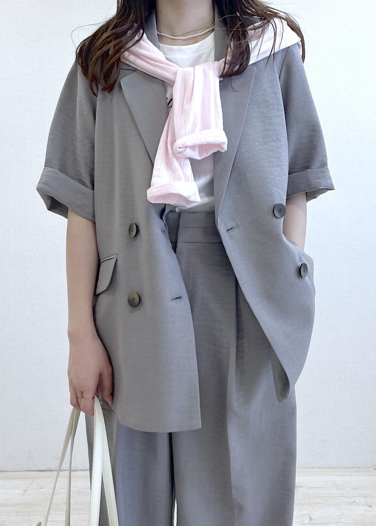 VIS美easyリネンライクハーフスリーブダブルジャケット/イージーケア・接触冷感・セットアップ対応グレー / S¥7,909レビューオーバーサイズなので肩幅が少し大きめですが、肩パッドが入っていないので落ち感があり肩が張らないです。