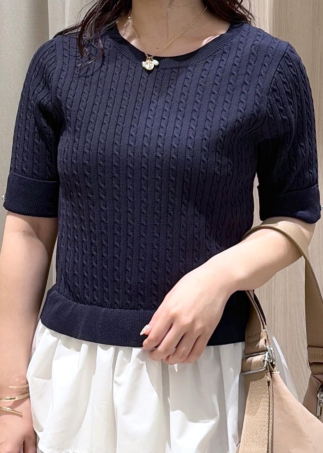 VISレイヤードケーブルハーフスリーブニットネイビー / F¥5,929レビュー身長150cmで腰周りが隠れる丈感でした!