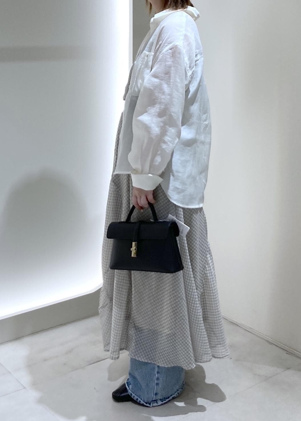 生地感は薄めでサラッとしていて体のラインを拾いすぎない少しハリのある素材感です。 -