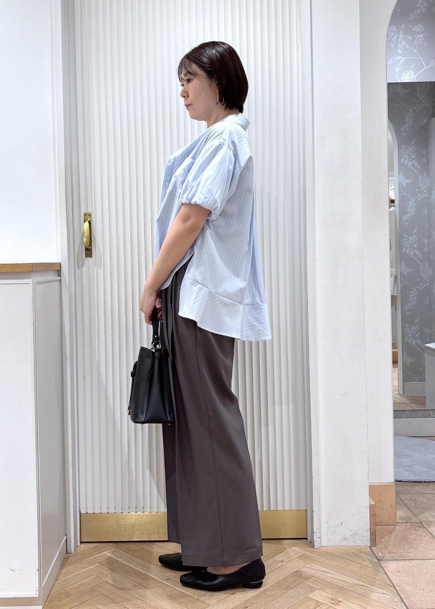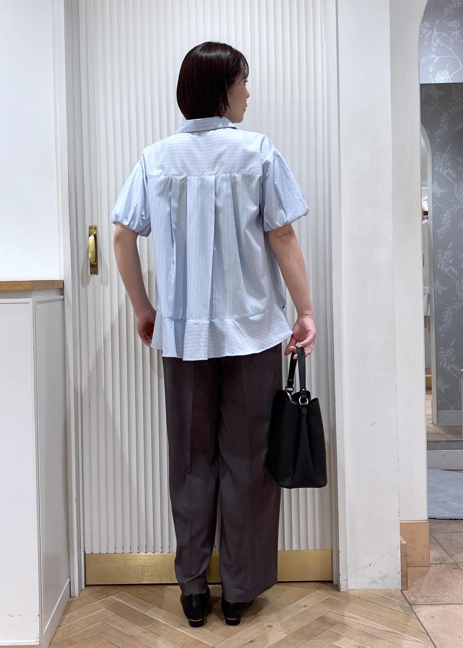 後ろにタックや切り替えが入っていて、動きが出るのでシンプルなボトムでもおしゃれ見えが叶います!