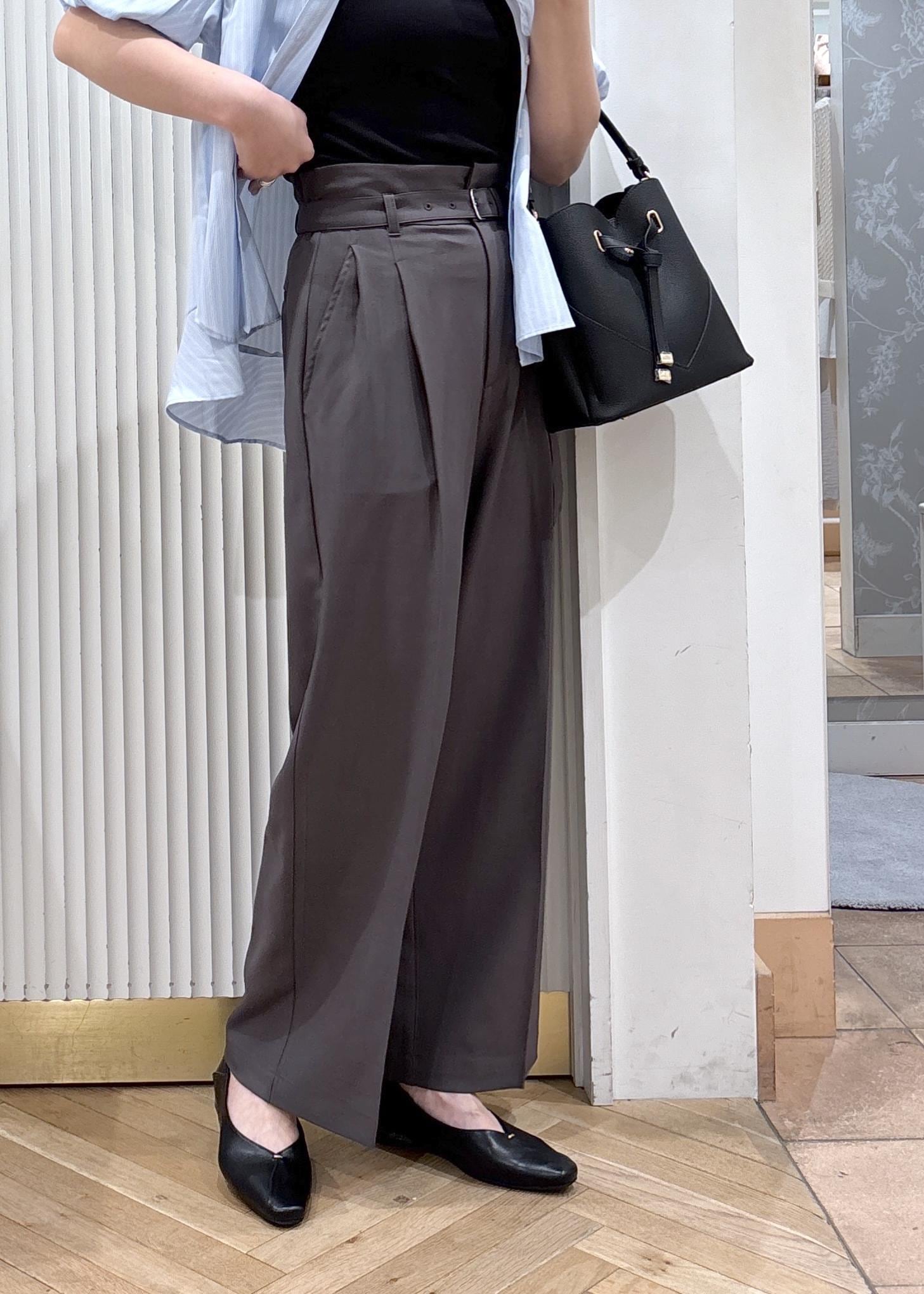 ベルトディティールタックワイドパンツ/イージーケア・接触冷感
