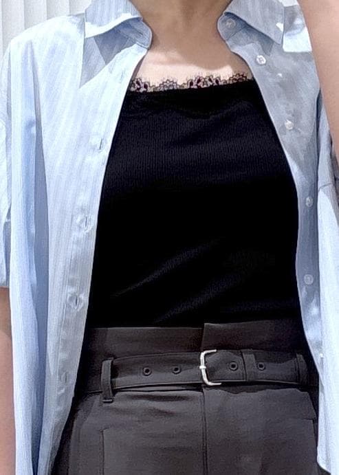 胸元と裾にレースをあしらったカップ付きインナーです。カップ部分はメッシュ素材なので夏も蒸れ感なく快適にきていただけます