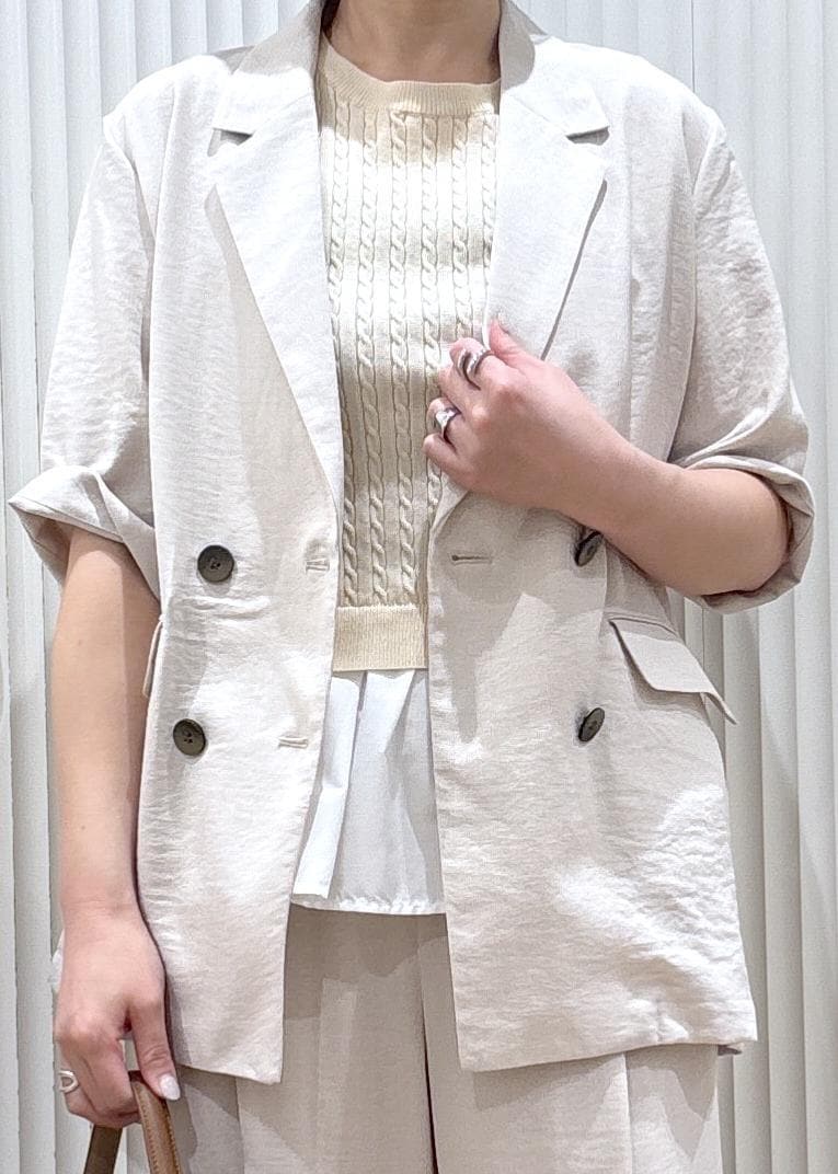 去年はシングルでしたが、今年は長袖と同じダブルのデザインなのでカジュアルスタイルにも合わせやすいです!