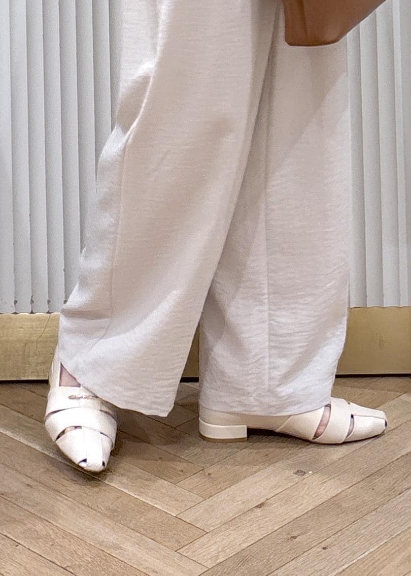 ワイドですがスッキリしたラインなのでトップスを選ばず着れます -