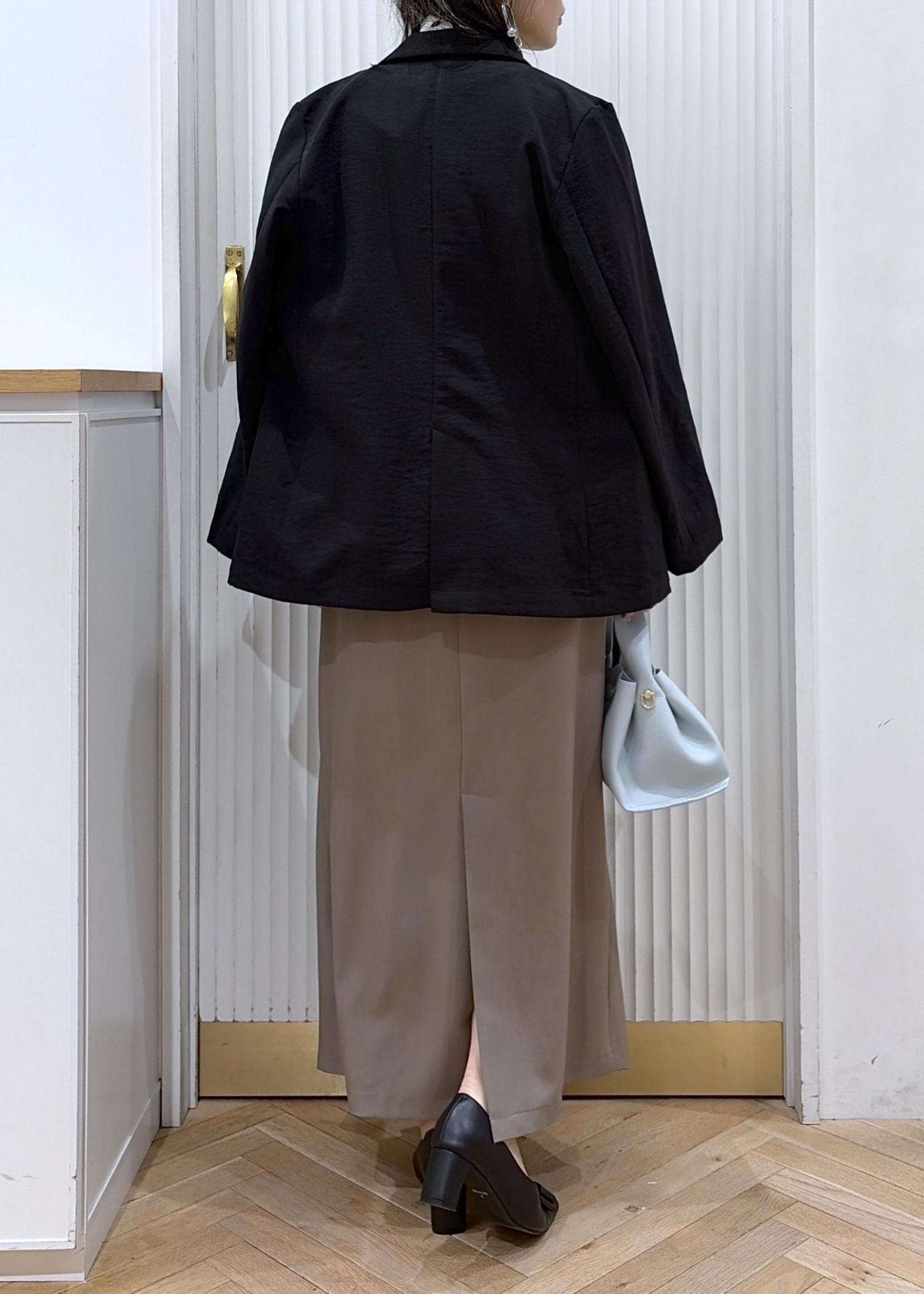 アシンメトリーのフロントタックが入っていて、歩くと自然に動きが出るデザイン。程よい艶と落ち感があって高見えします。 -