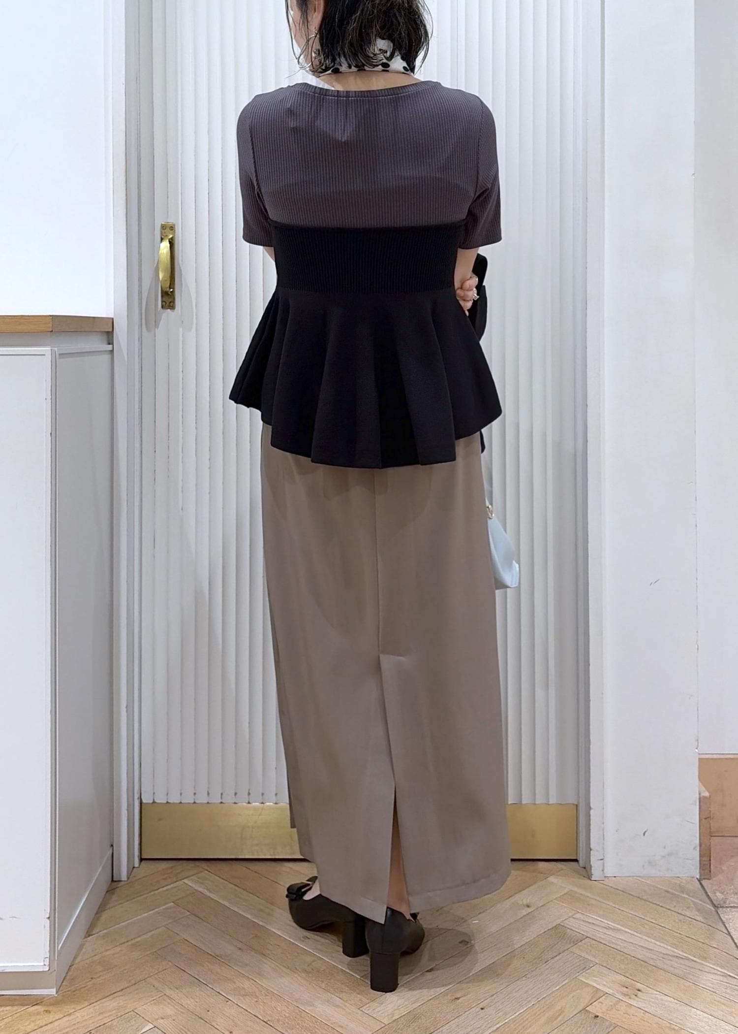 トップスがペプラムデザインだからジャケットを脱いでも360度可愛いをキープ♡