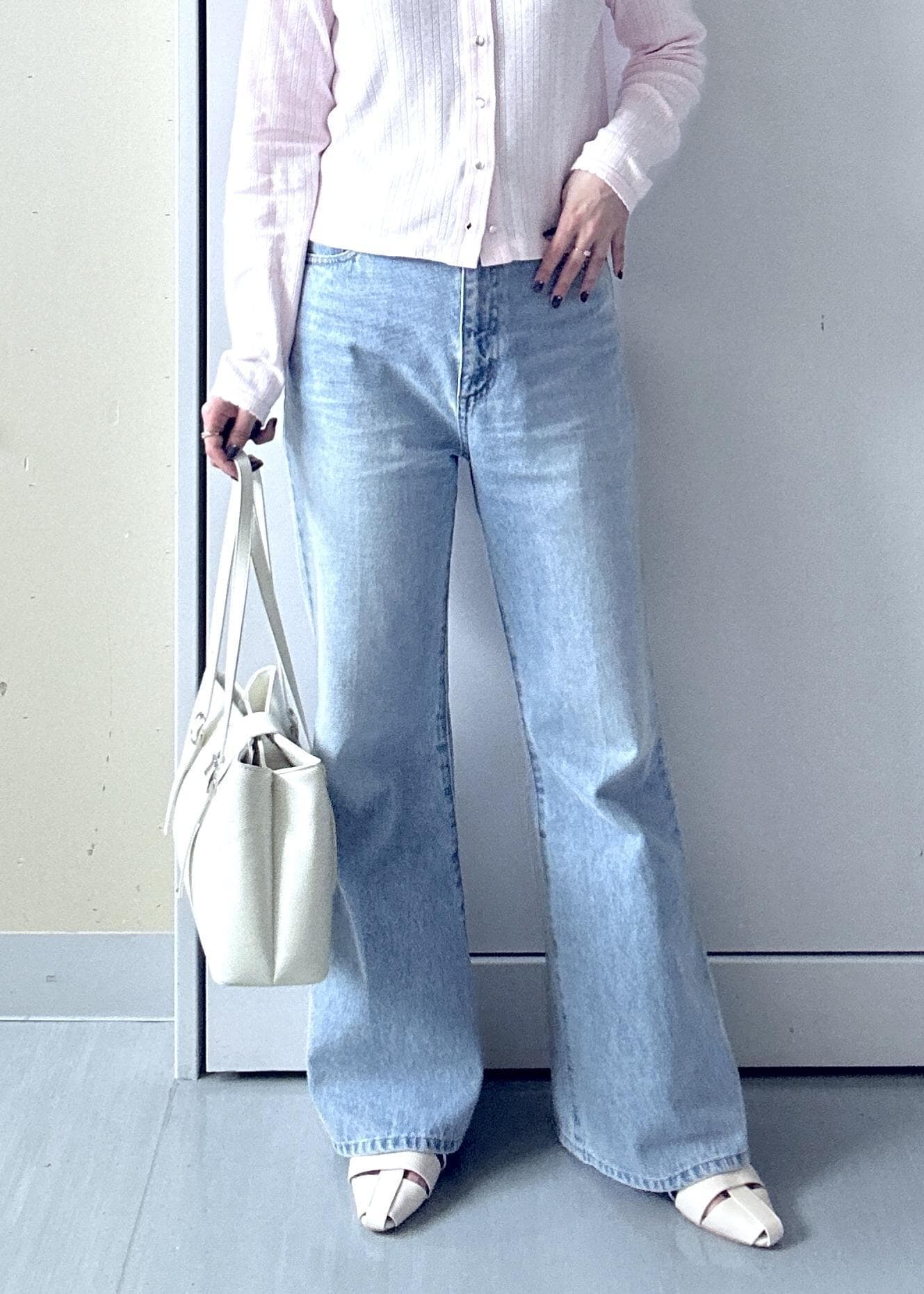 VISカラーフレアデニムパンツサックス / M¥8,899レビュー身長162cmでMサイズ着用。