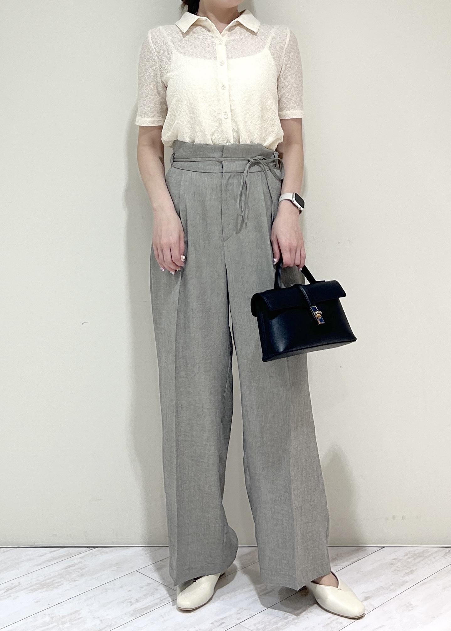 VISサマーツイードリボンベルトパンツ/UVケア・イージーケアグレー / M¥6,589レビュー夏も使えるサラッと軽い素材です!ワイドなので太もも周りもカバーしてくれます◎身長164cm、Mサイズ着用でぺたんこ靴でも床につかずに着られます。