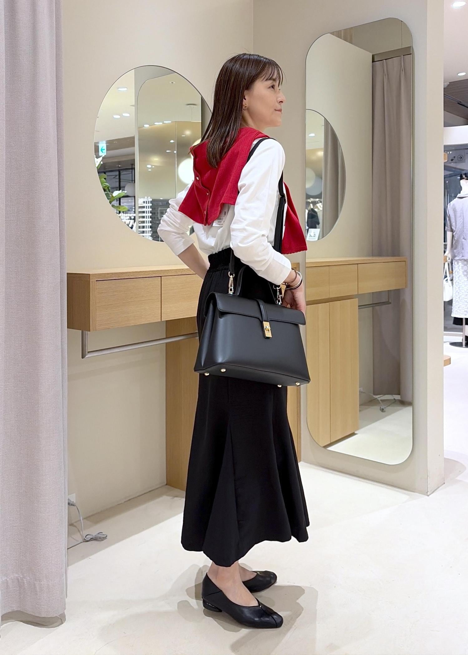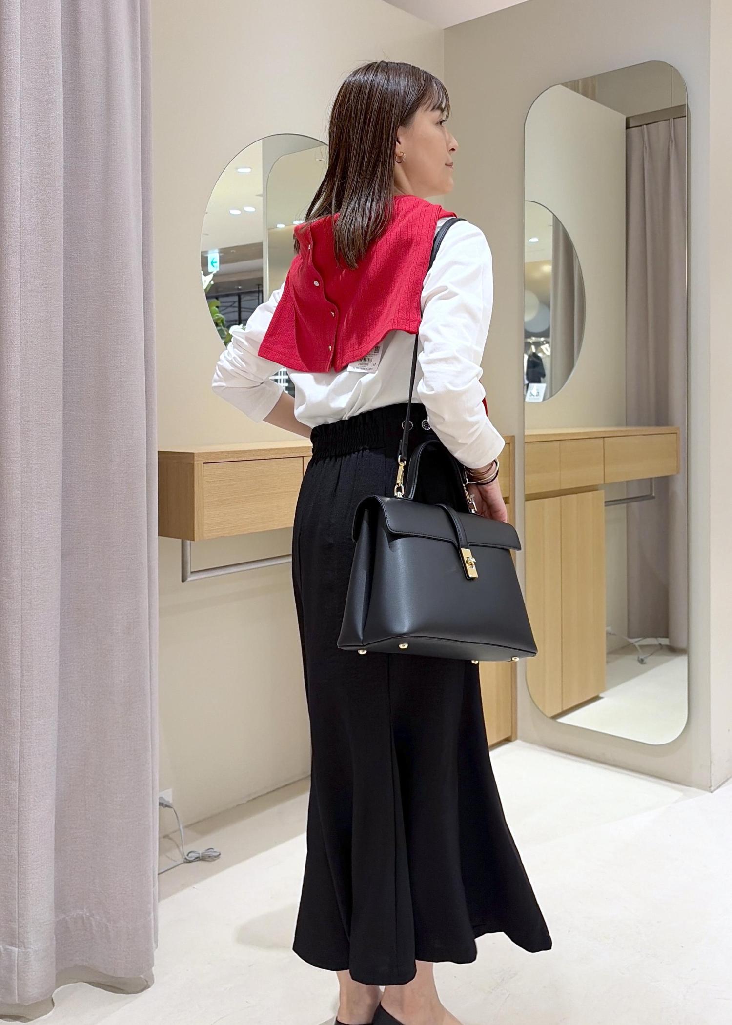 コンパクトに使える形なので、カーディガンでも華奢見えになります。