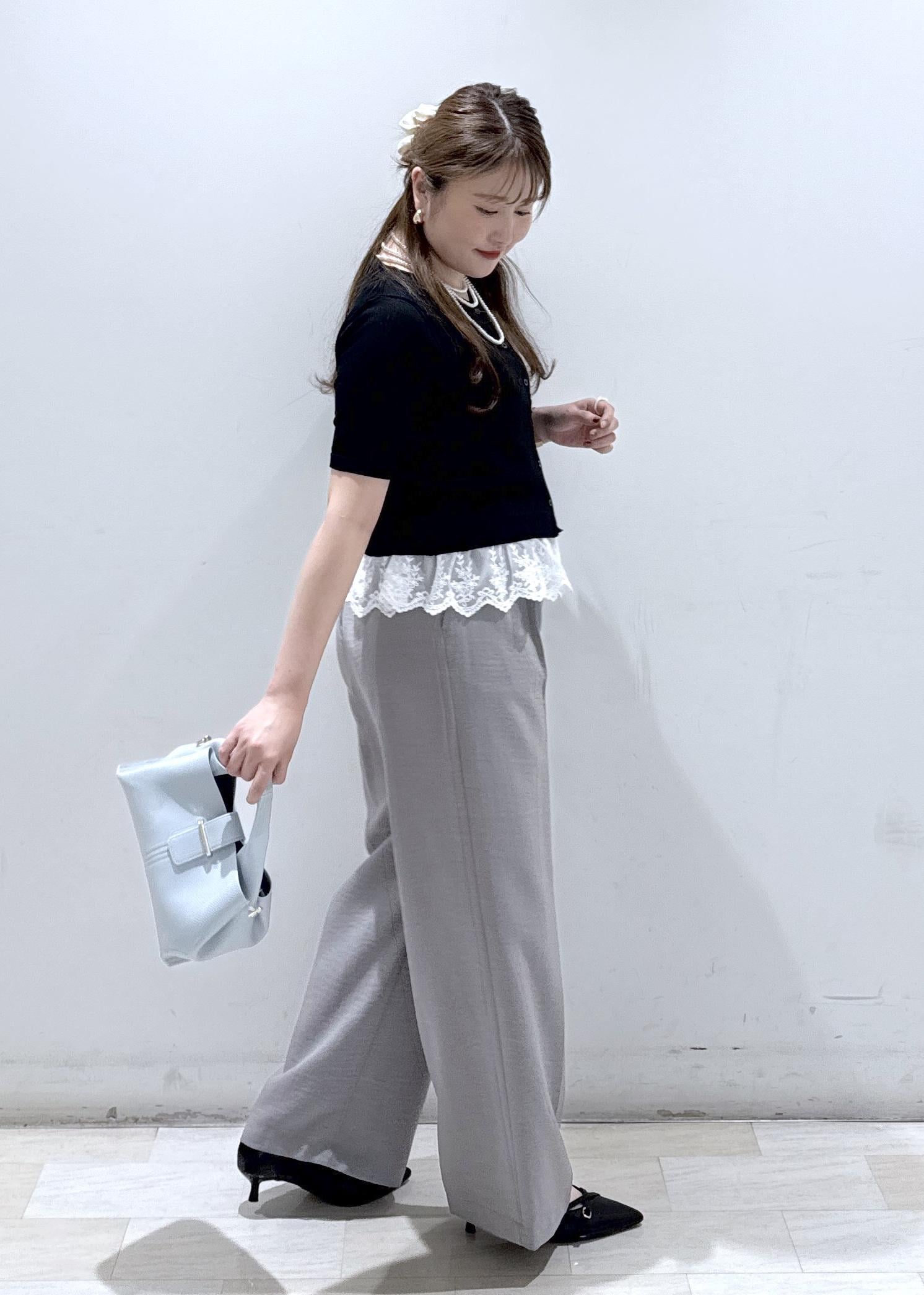 今回は新作で入荷しました、一枚でまるで重ね着しているかのように見えるVネックカーディガンに、VISで大人気な美easyリネンライクワイドパンツと合わせてお仕事でも使える綺麗めなコーディネートにしてみました⭐︎体型カバーもできる上にオシャレにお女性らしさも出るのでオススメです。