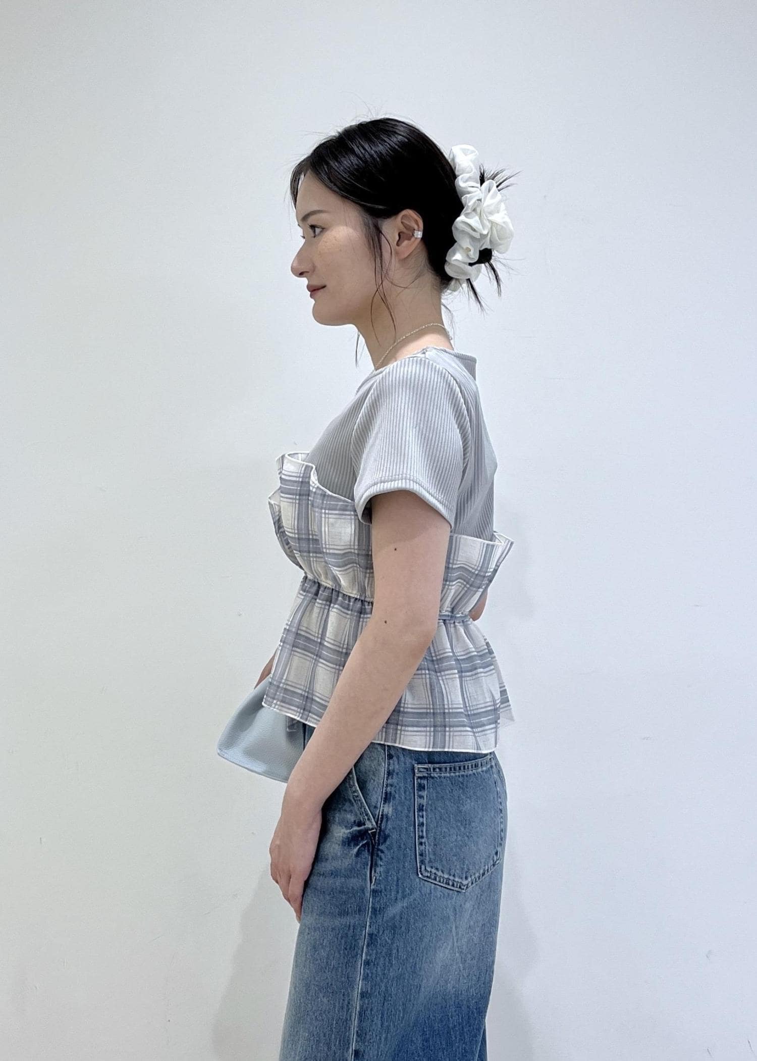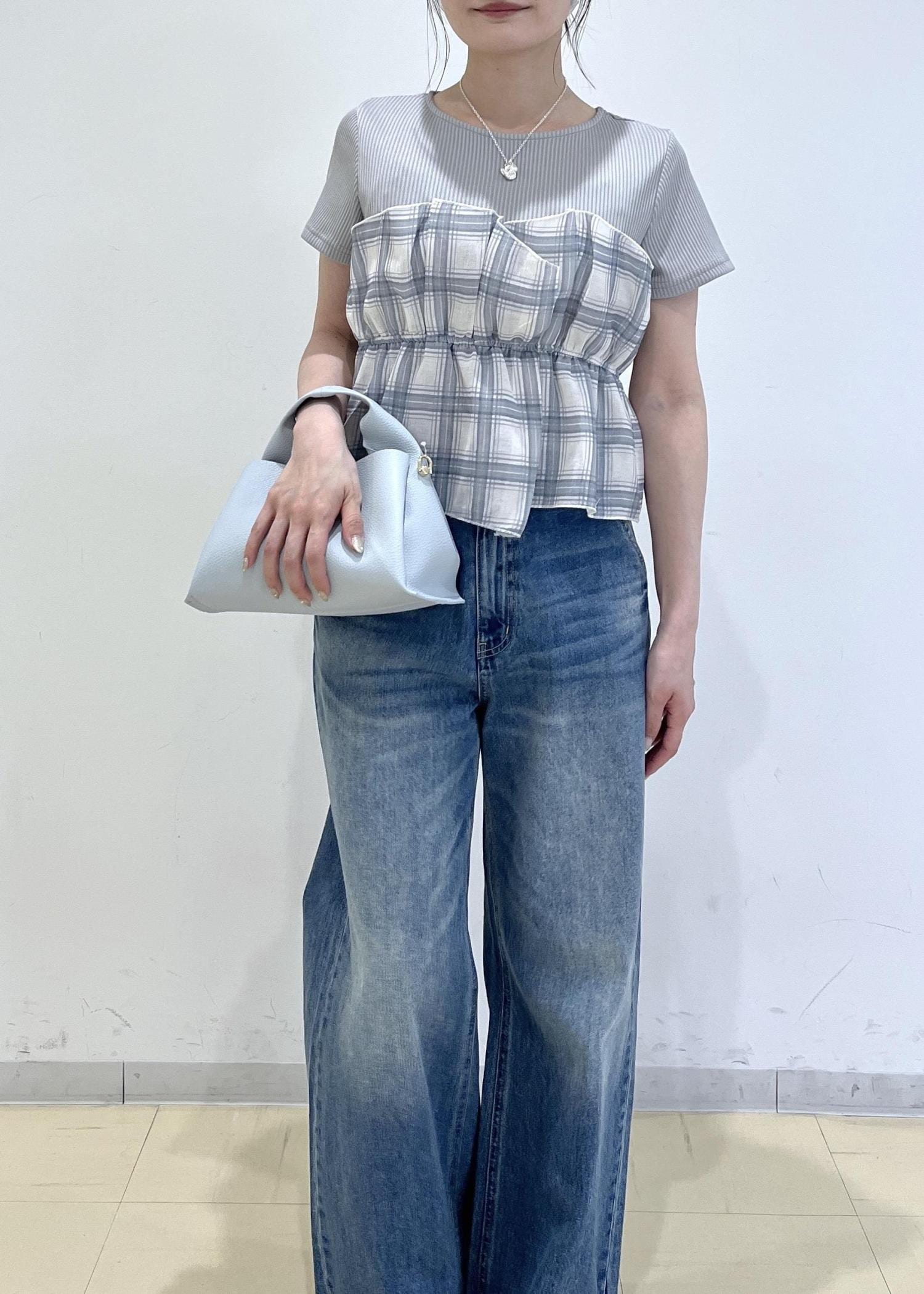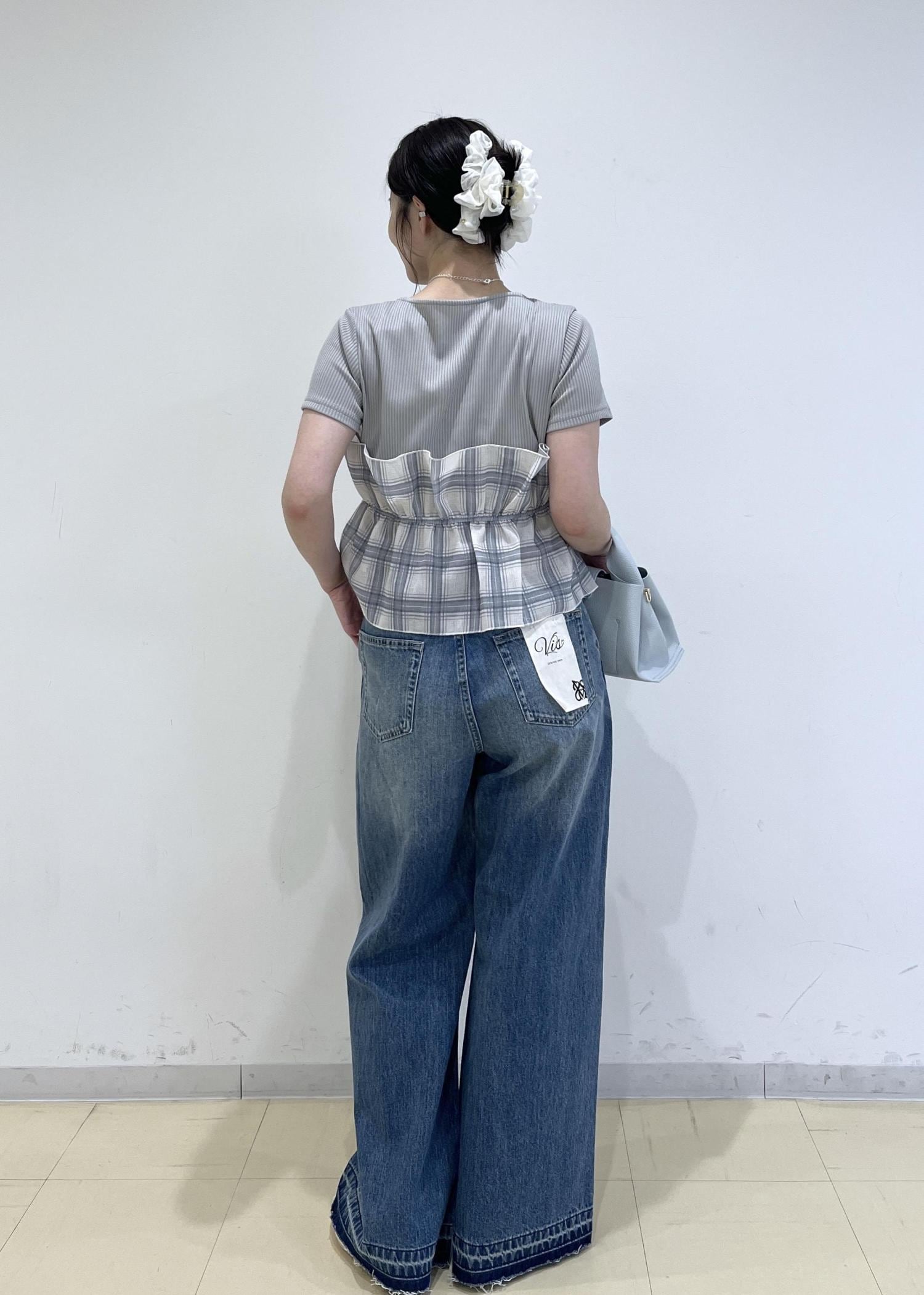 チェック×デニムでカジュアルにしつつも