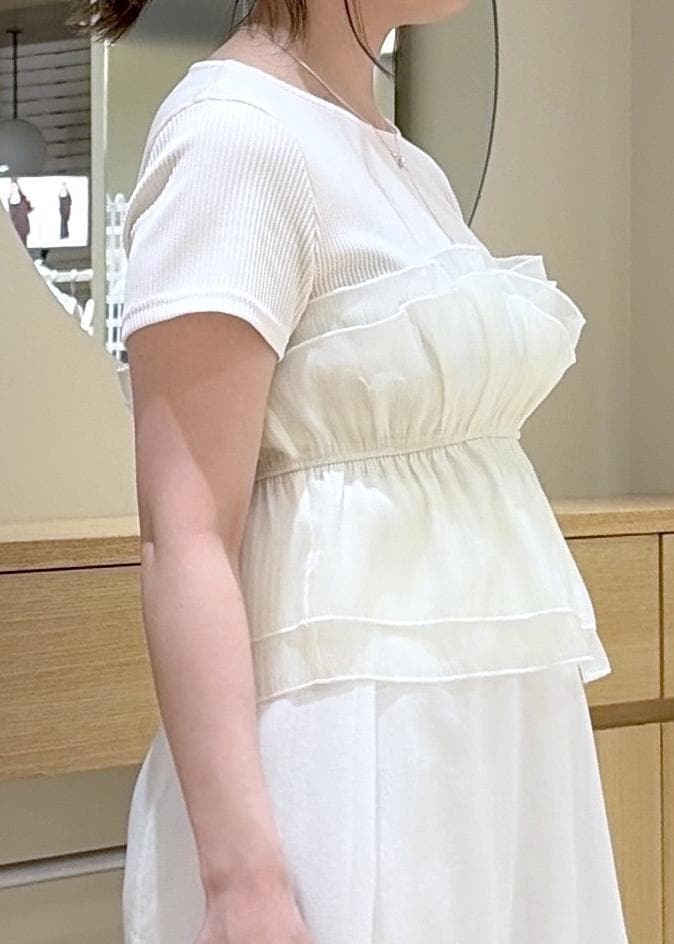 VISチェック&無地ビスチェドッキング半袖プルオーバー/イージーケアキナリ / F¥5,489レビューシャーリング部分にゴムが入っているので、