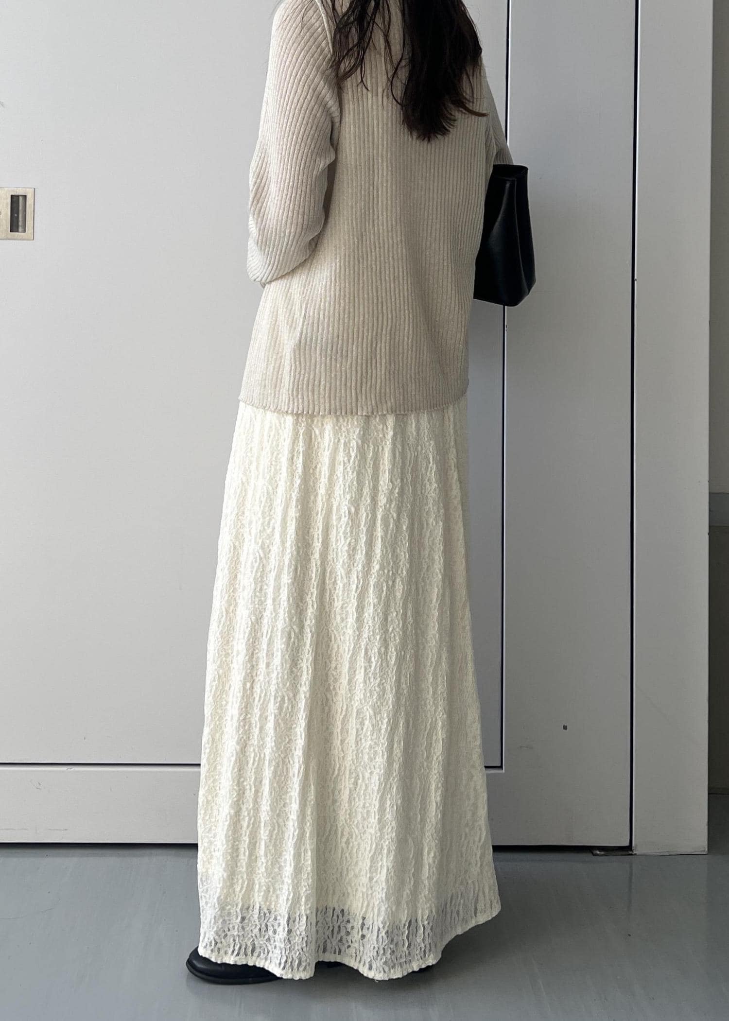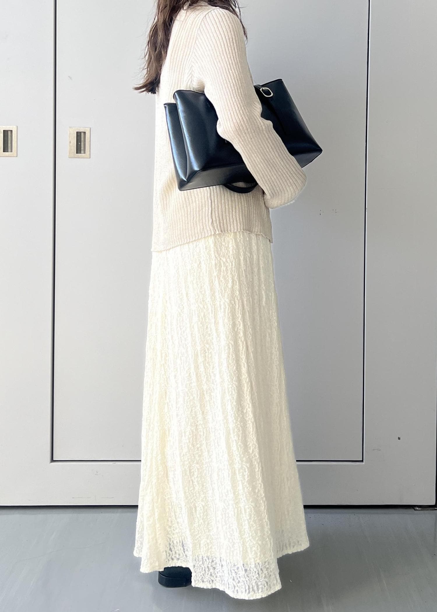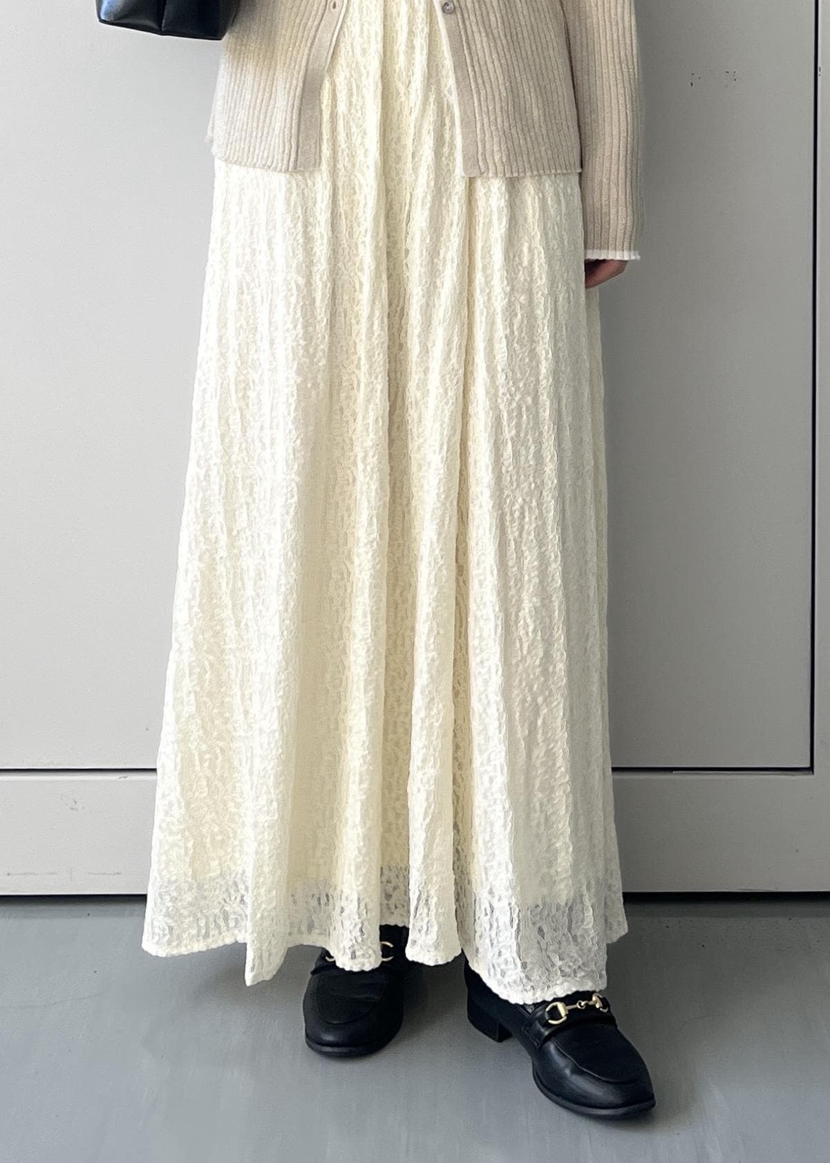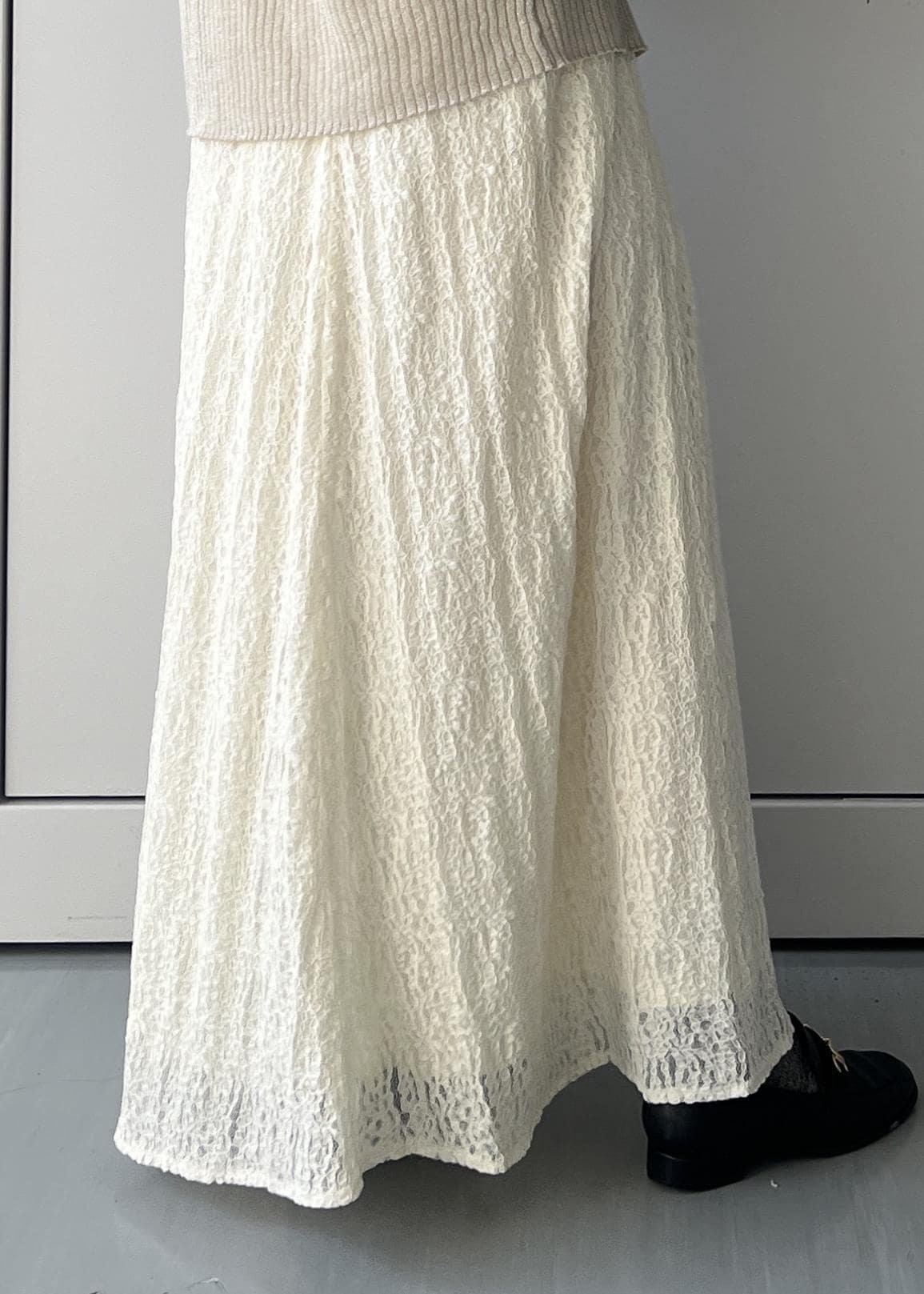 VISラメレースフレアスカートキナリ / F¥6,919レビュー152cmで足首隠れる着丈です。春らしい動きのあるレースが可愛いく、ウエストもゴムなのでストレスなく着用できます!