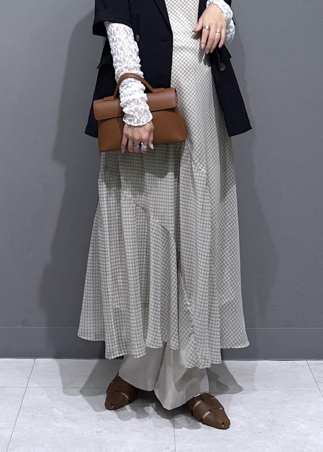 VISシアーチェックキャミワンピースベージュ系 / F¥8,899レビュー肩紐で長さ調節可能です。