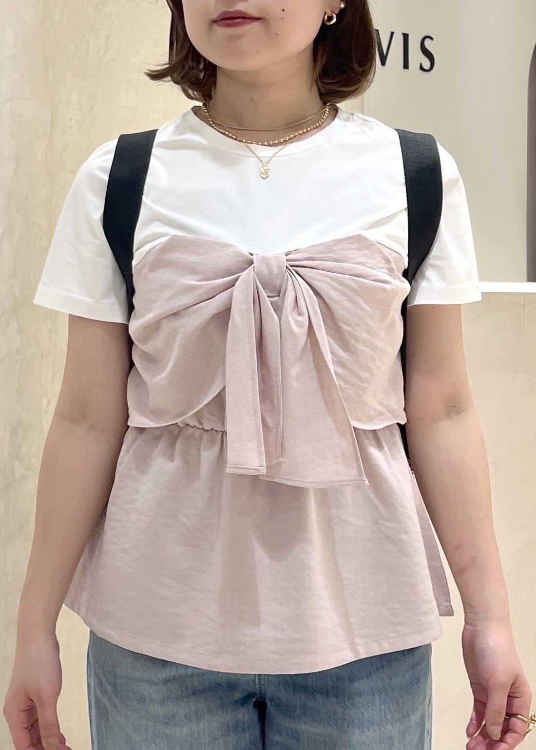 VIS美easyリネンライクリボンビスチェトップス/イージーケア・接触冷感・セットアップ対応ピンク / F¥5,489レビュー昨年も大人気だった、リボンビスチェトップスです♡サラッとしたTシャツにリボン型のビスチェがくっついており、一枚でレイヤードスタイルが叶うものになっております!