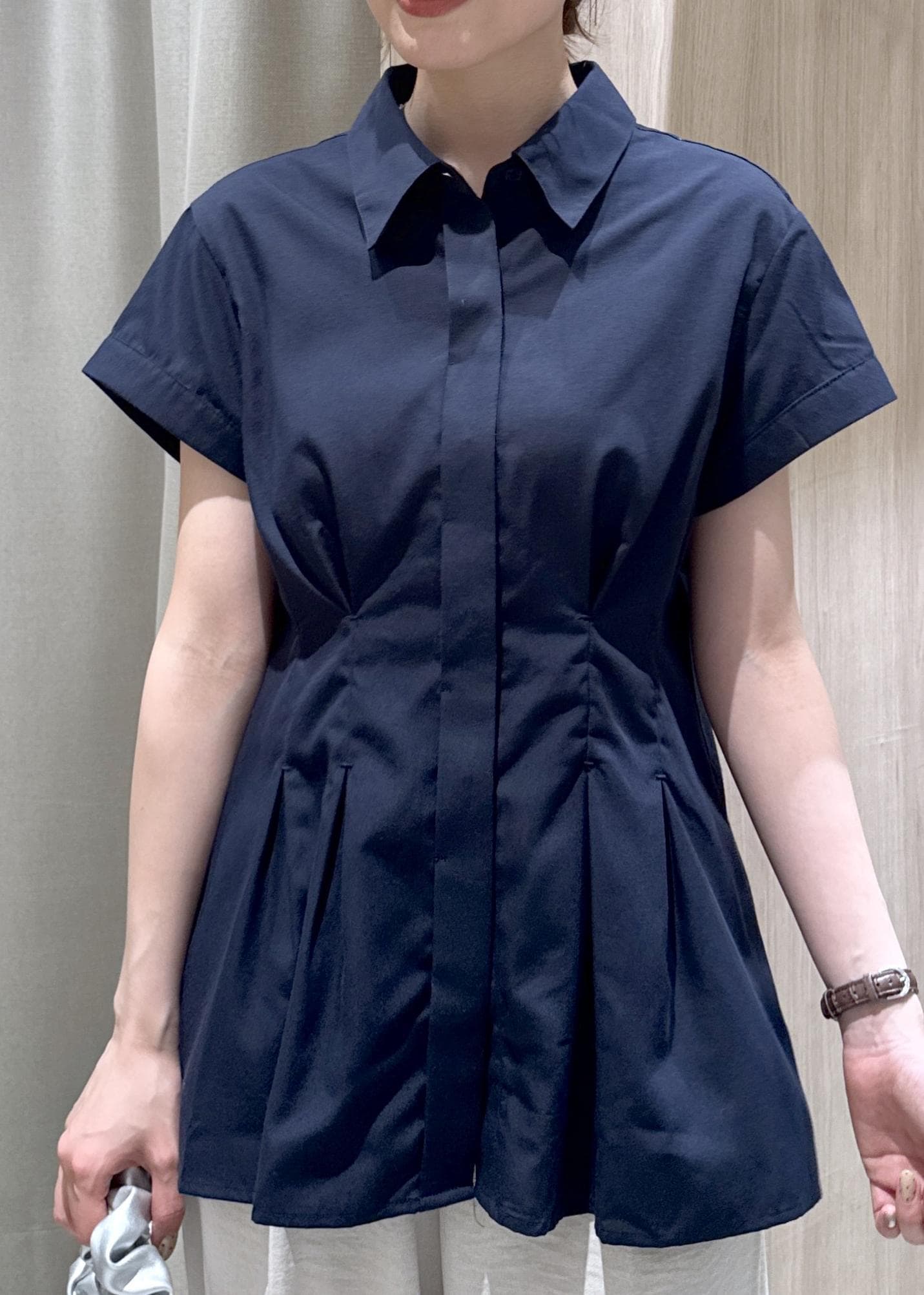 VISウエストタックペプラム半袖シャツブラウスネイビー / F¥5,489レビュー身長157cm / Fサイズ着用