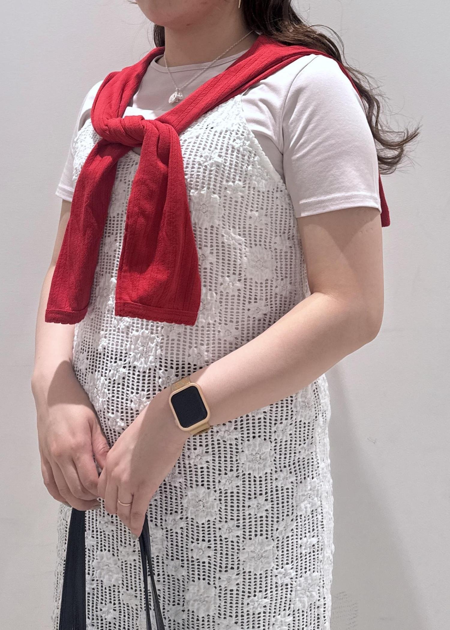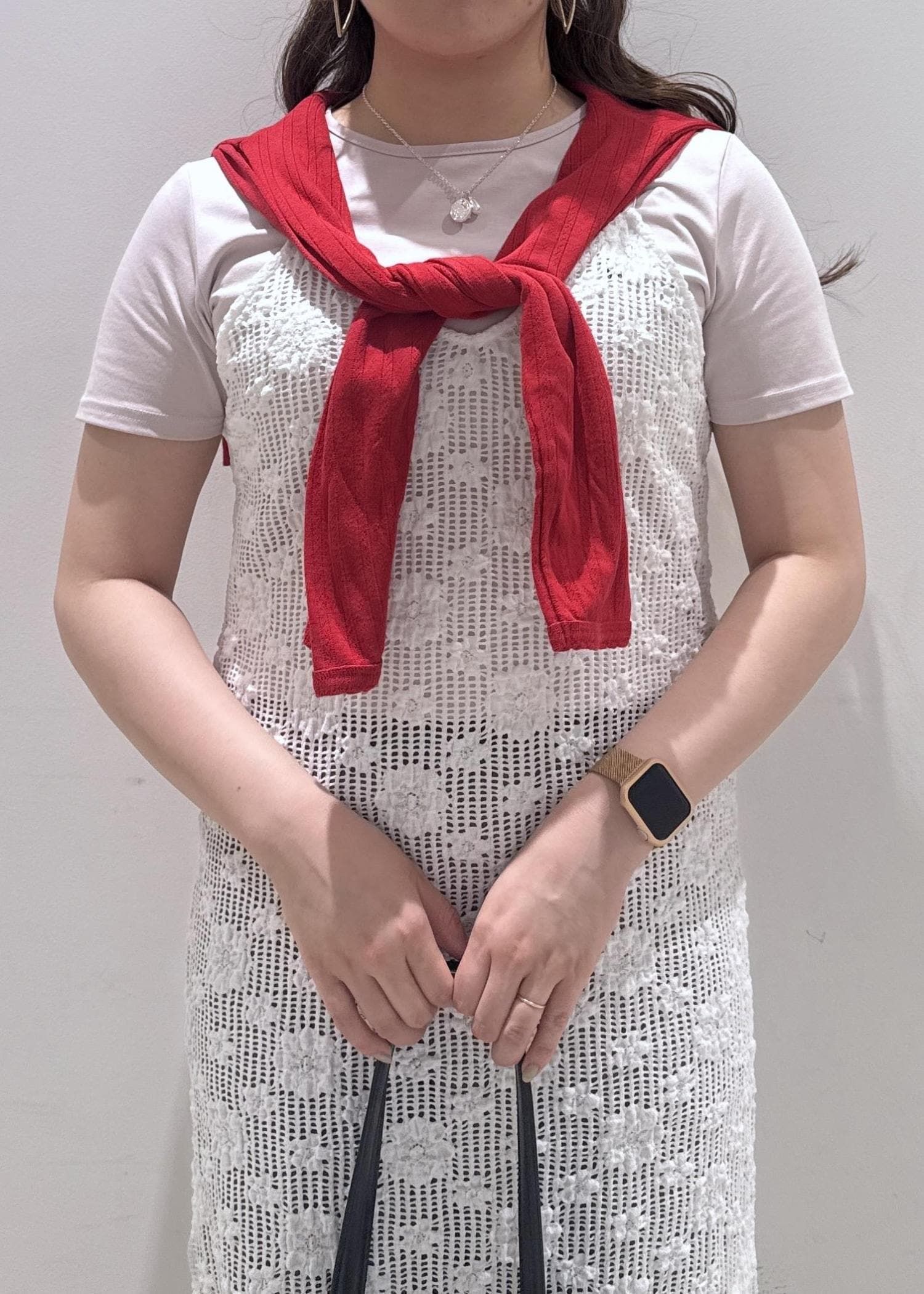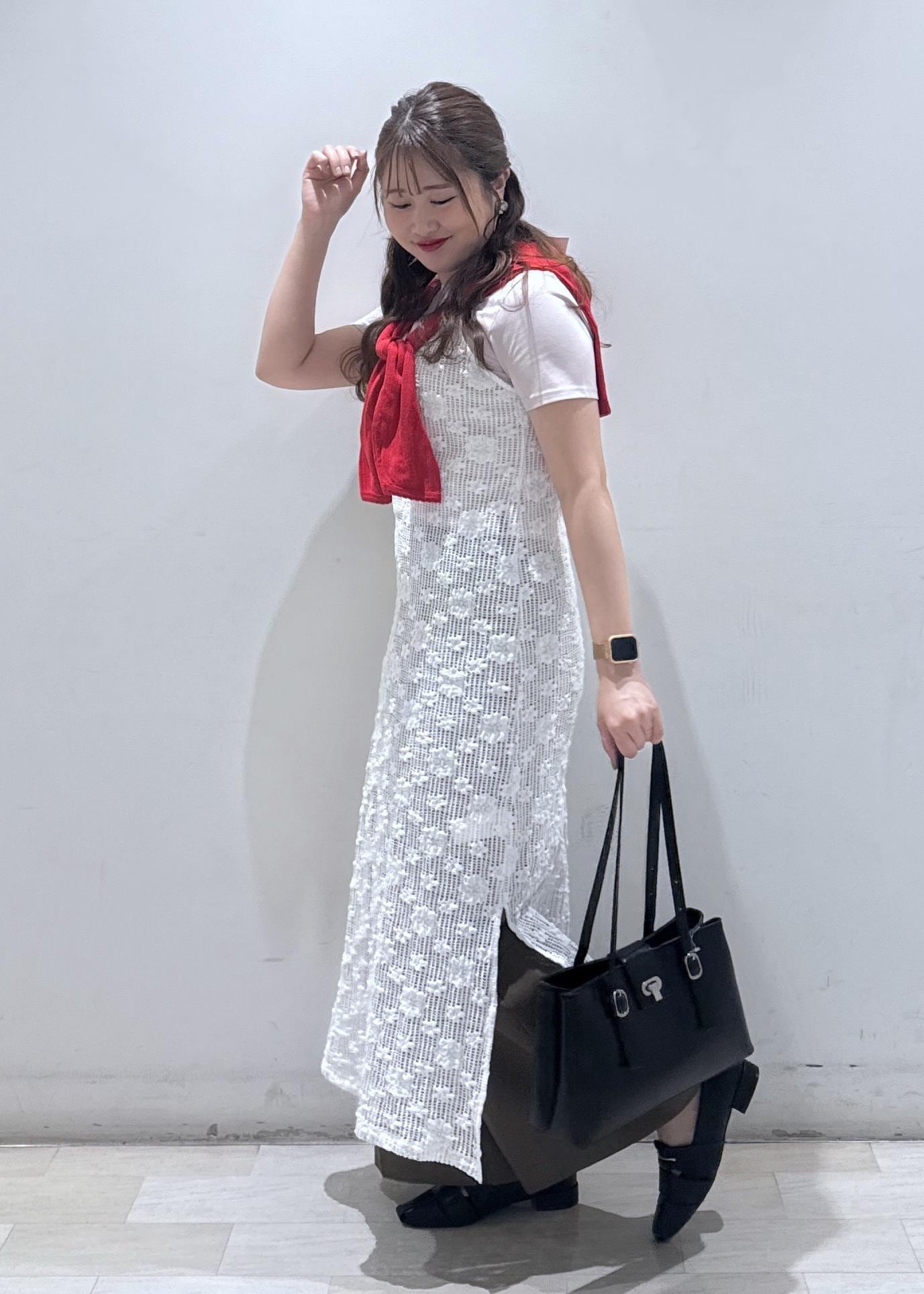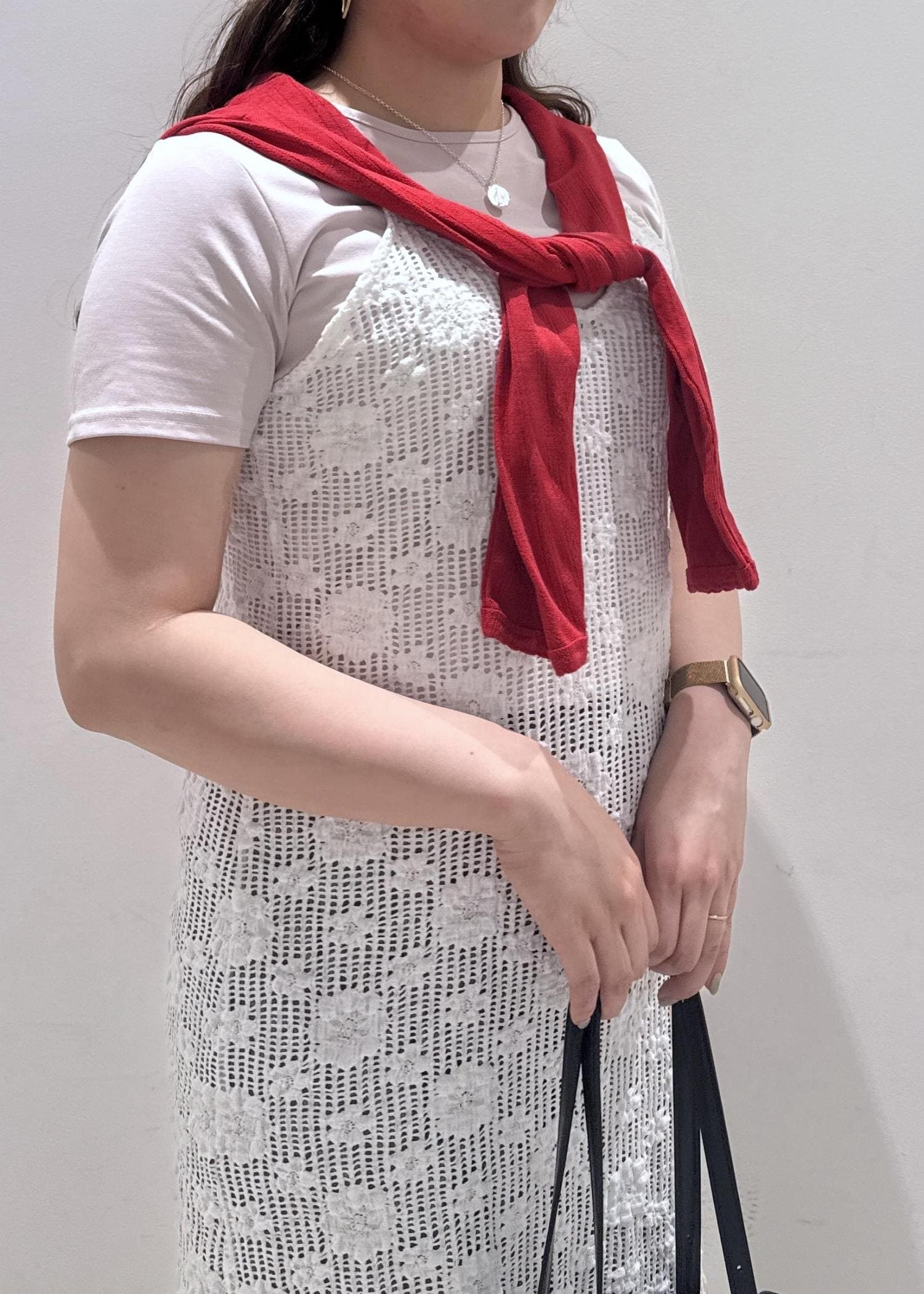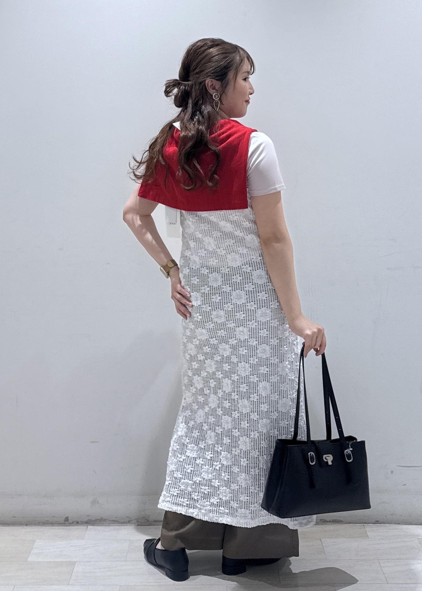 今回は新作で入荷しました、POLOとのコラボアイテムのTシャツをインナー使いにしてレースのキャミワンピースと合わせてみました。ワンピースはレース素材なので、下に太めのワイドパンツを♪offの休日の日にぜひオススメなコーデです⭐︎