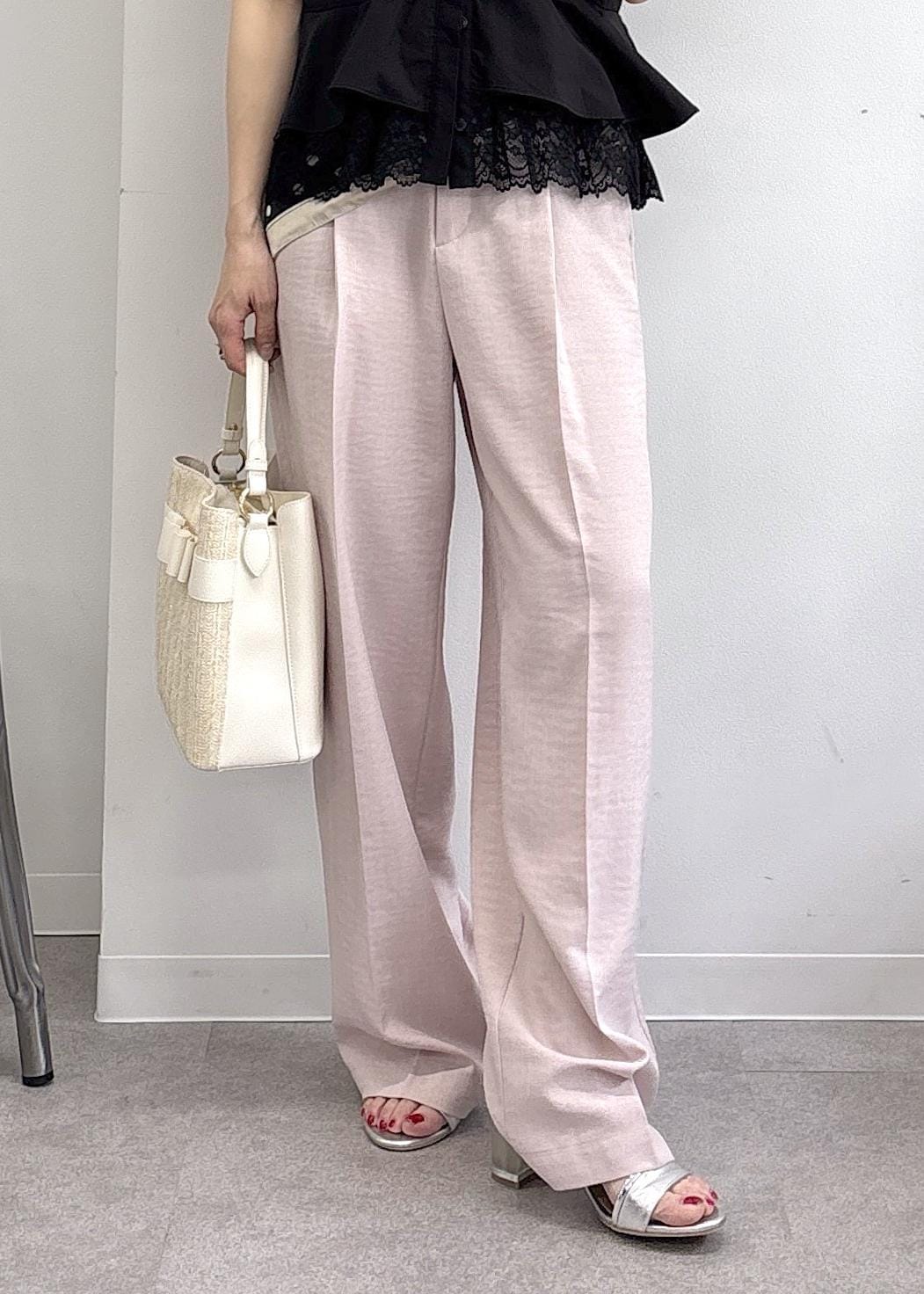 VIS美easyリネンライクワイドパンツ/イージーケア・接触冷感・セットアップ対応ピンク / M¥5,489レビュー大人気の美easyシリーズ♪今季はウエストタックを施している為、ベルトなしでもキレイに見えるのが嬉しいポイント◎麻調素材でさらっとしていてとても着やすい。シワになりにくいのも嬉しい。全体的に程よくゆったり、着丈は足首位の長さでした。