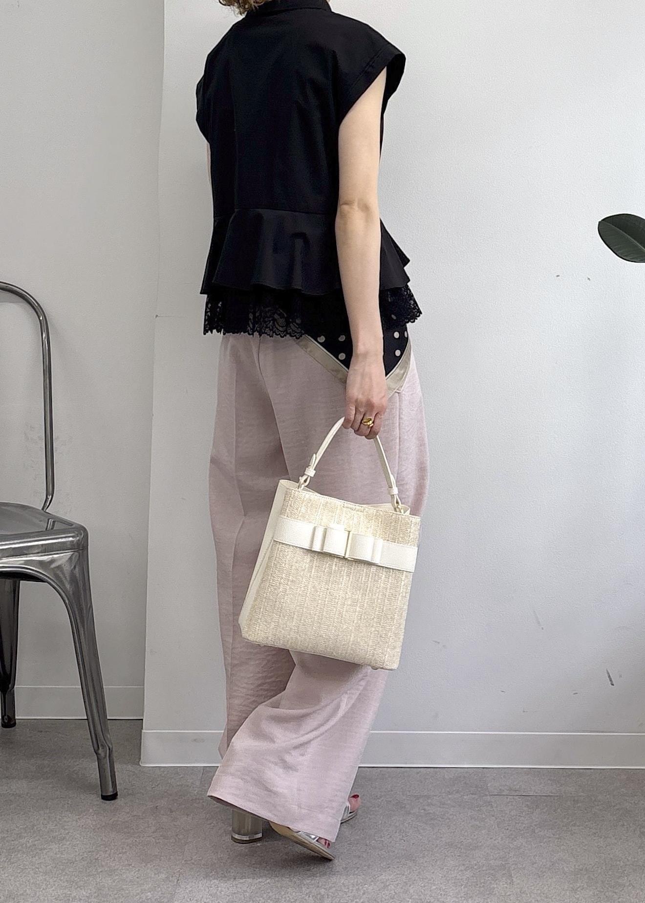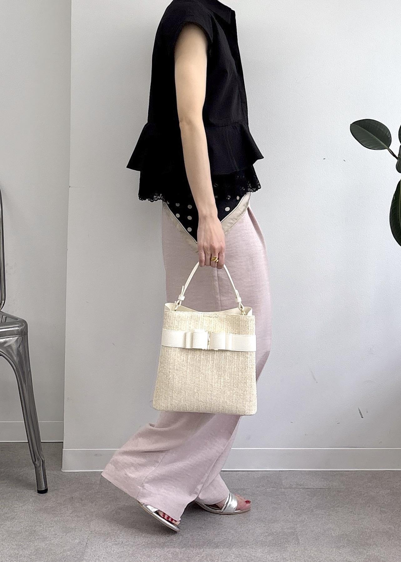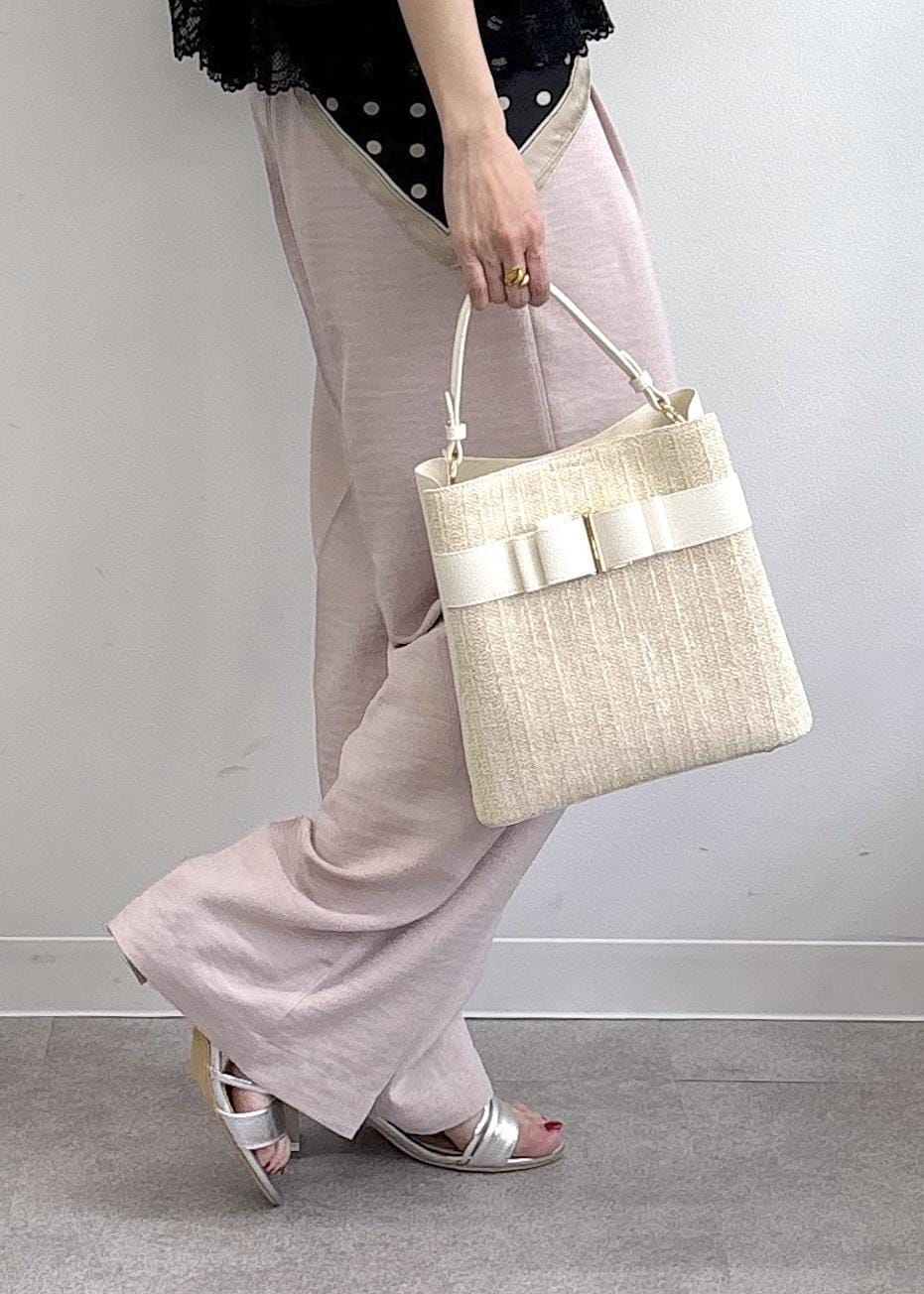 NEW! 予約VIS雑材&合皮アソート3層フロントリボンバッグ・ショルダーバッグ/2WAYオフホワイト / F¥6,919レビュー大きめリボンが大人可愛いバック♪中は3構想となっていて、真ん中がチャック使いと収納しやすくなっていてとても便利◎軽いのに高見えデザインがオシャレ。高さが程よくあるので、500mlのペットボトルや長財布なども入るサイズ感です。