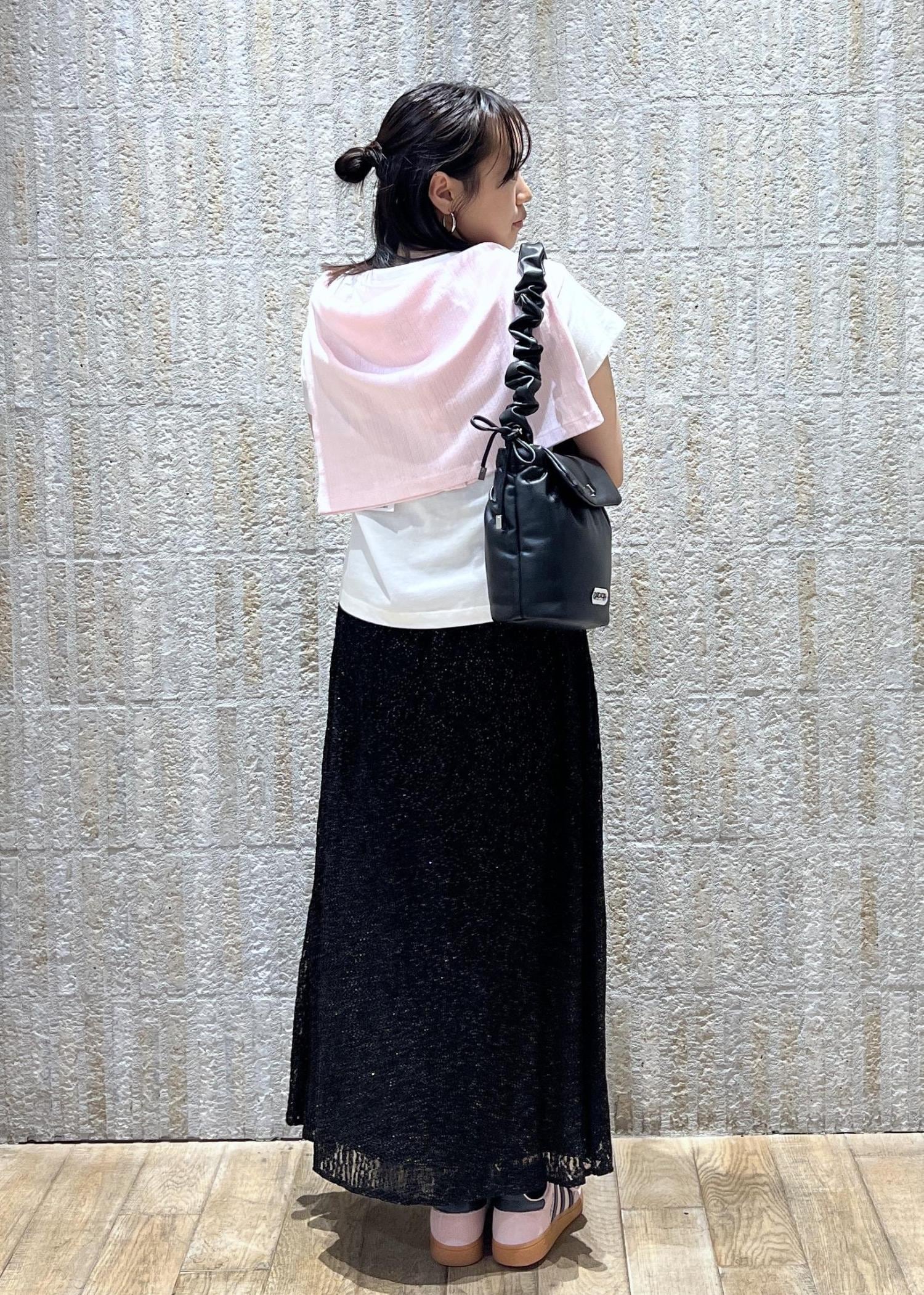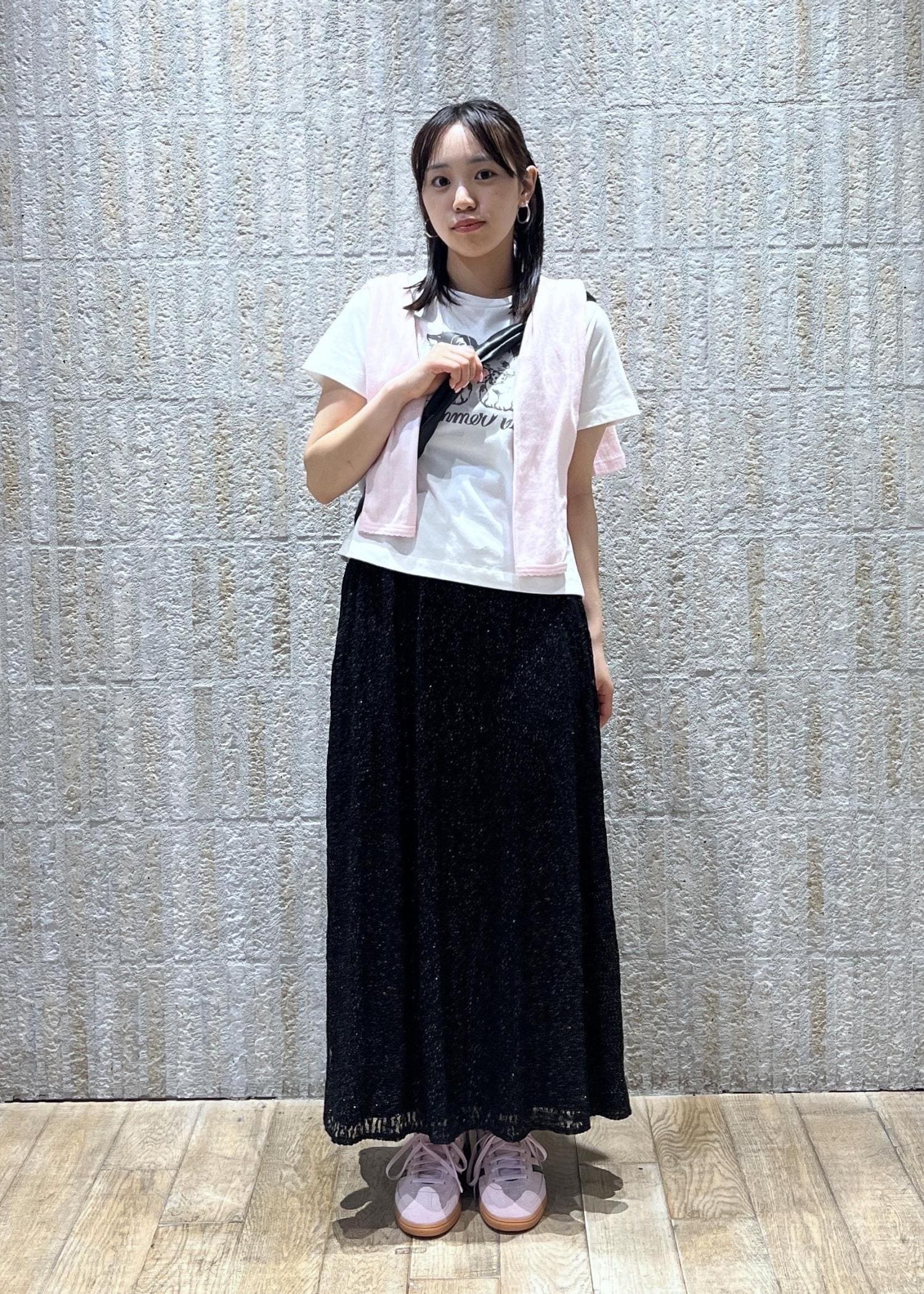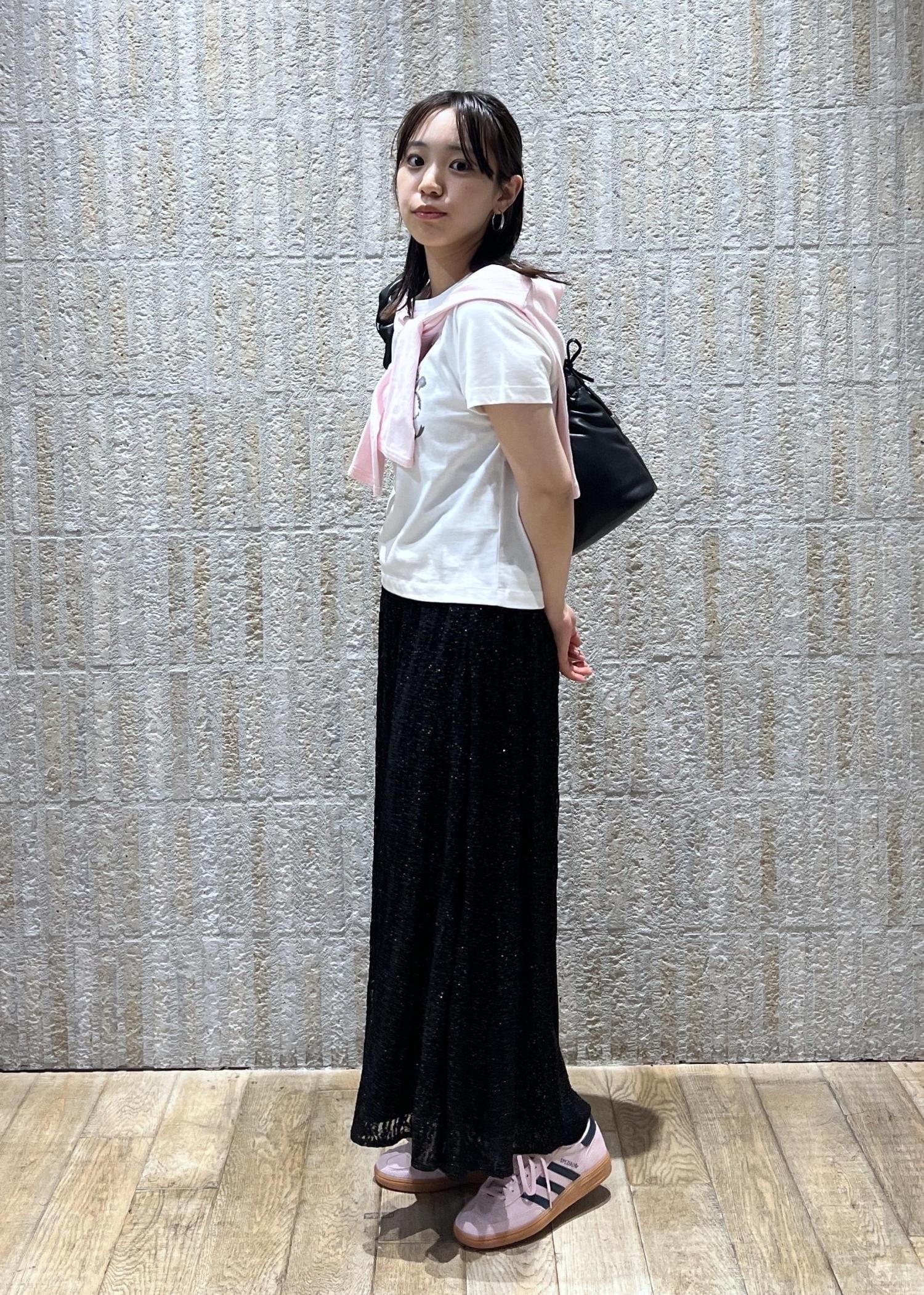 柔らかい素材で着心地抜群です。ウエストはゴムになっているので楽に着れます。ラメが入っていてカジュアルになり過ぎず着映えします◎ -