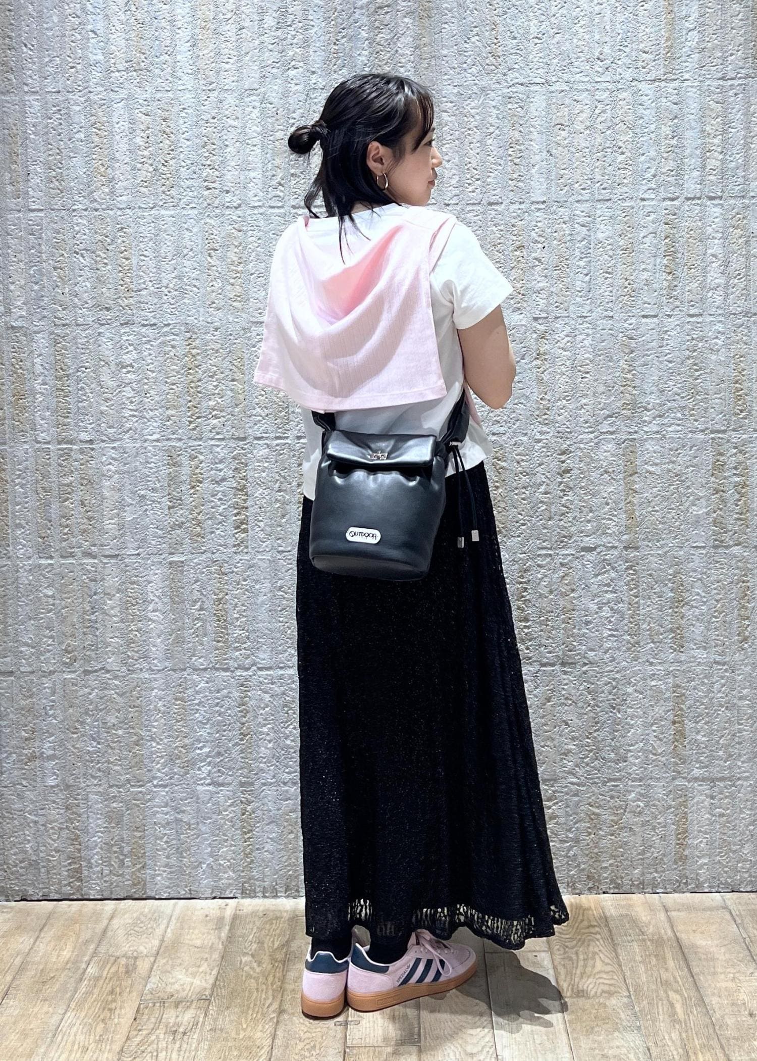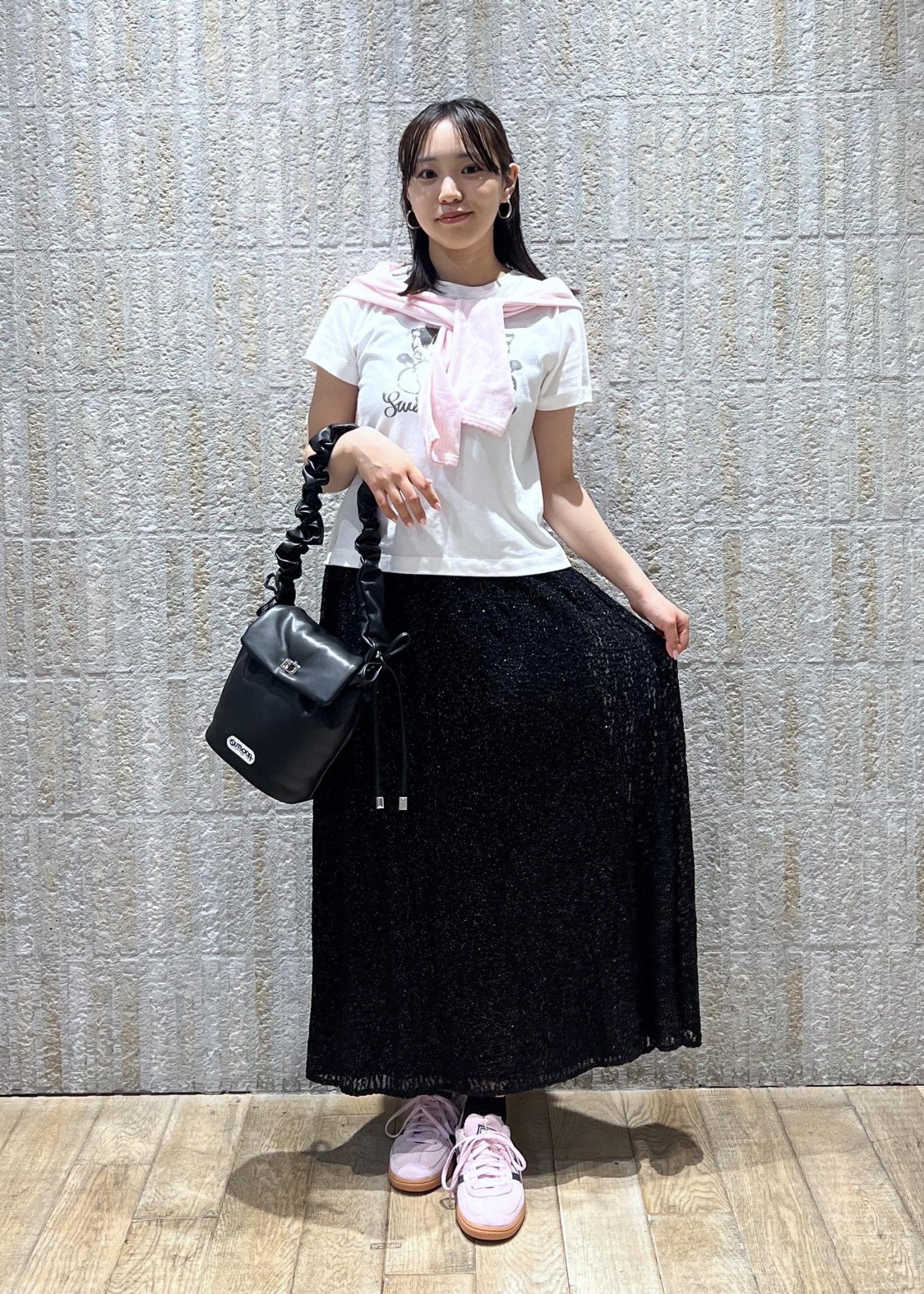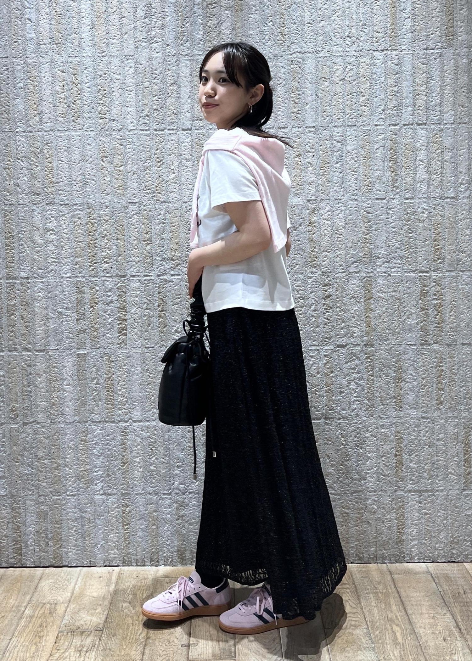 柔らかい素材で着心地抜群です。ウエストはゴムになっているので楽に着れます。ラメが入っていてカジュアルになり過ぎず着映えします◎ -