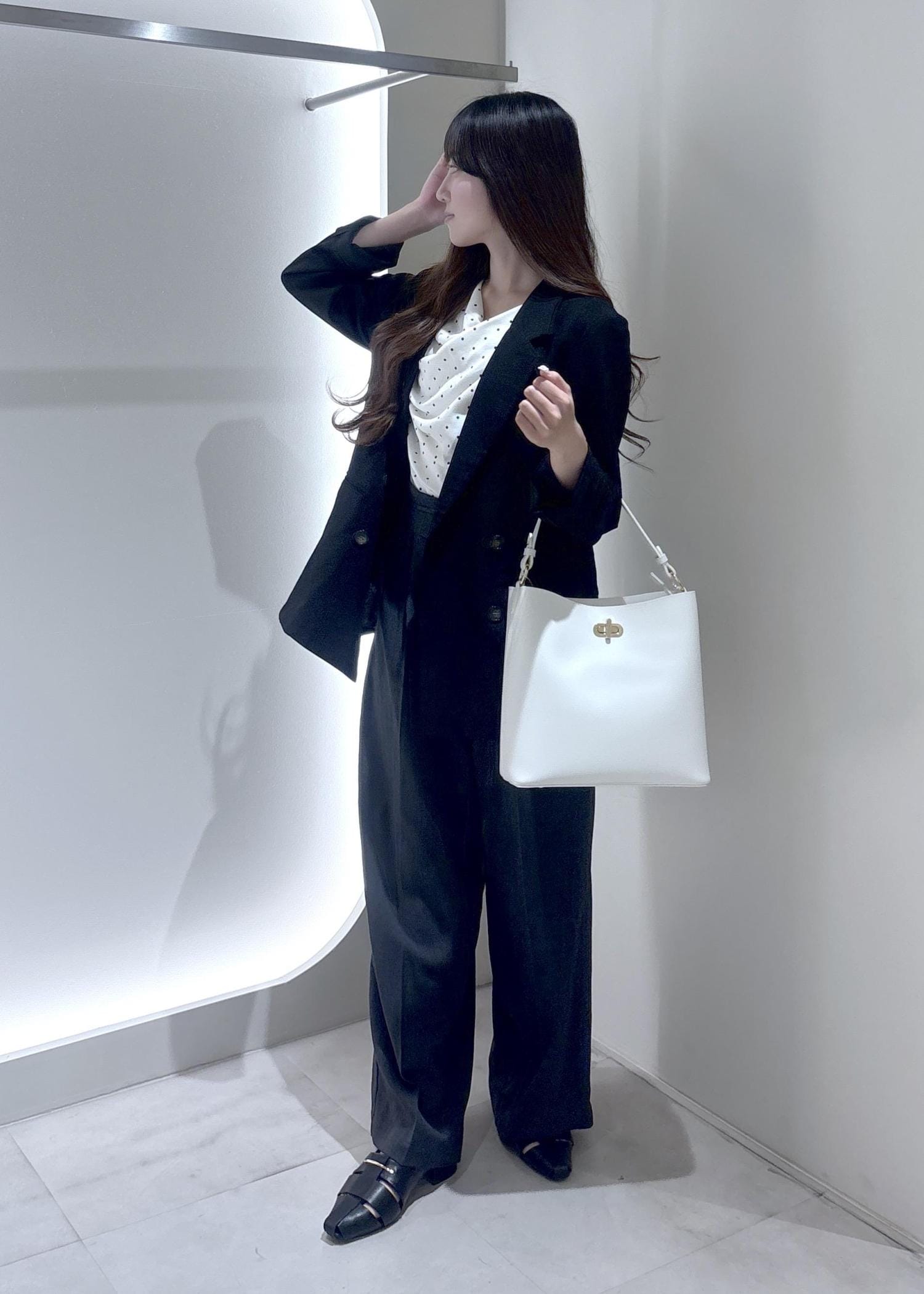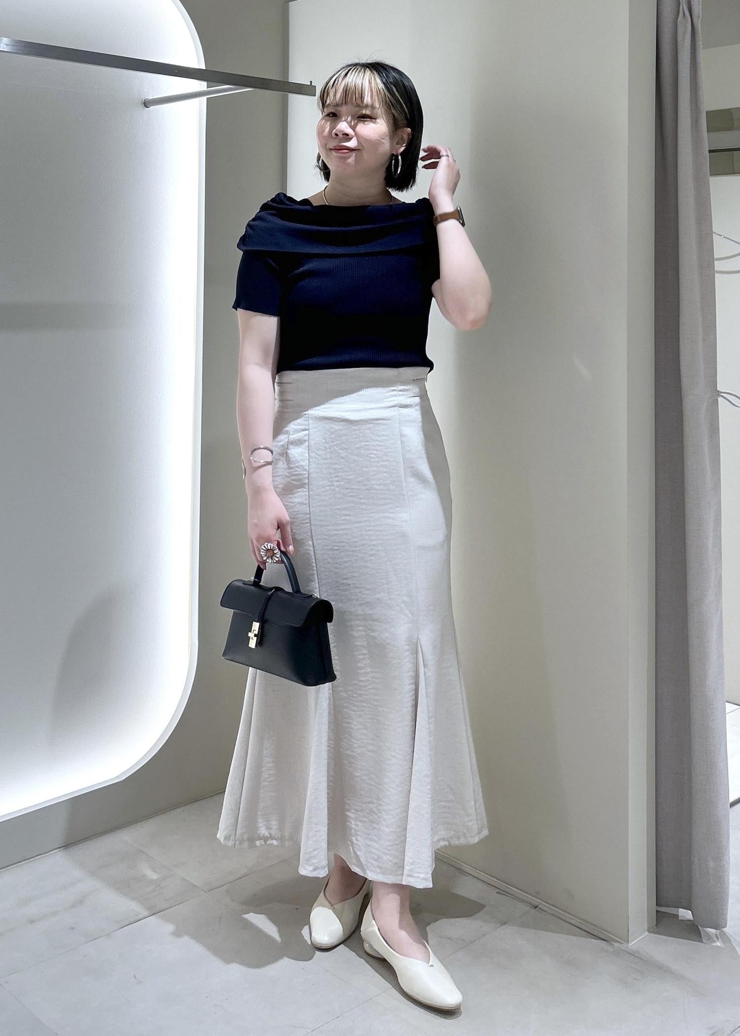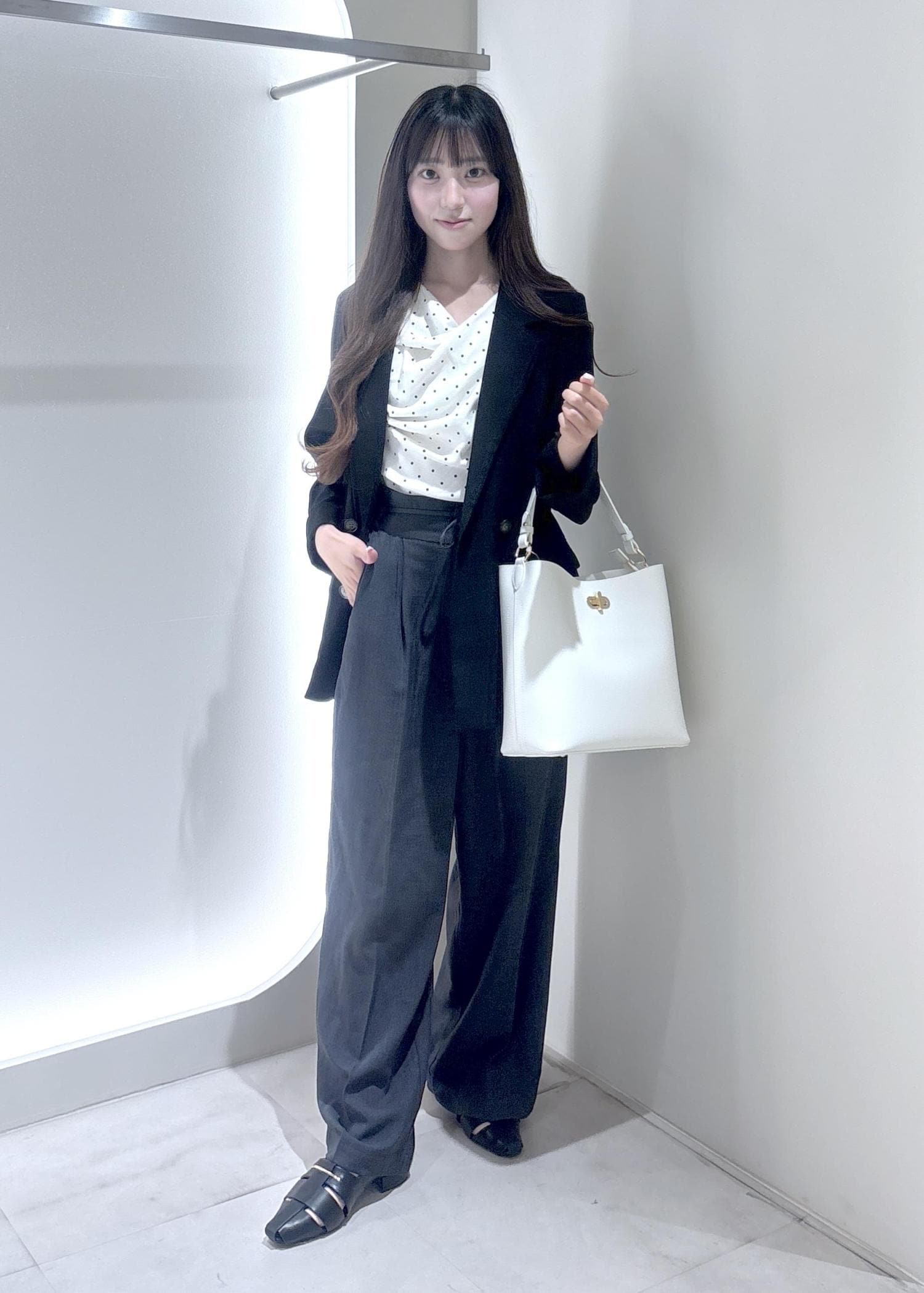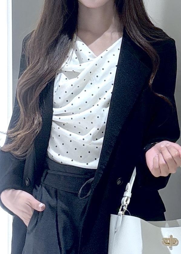 ドレープになっていて首元が空いているので首元スッキリ見えるデザインになっています!