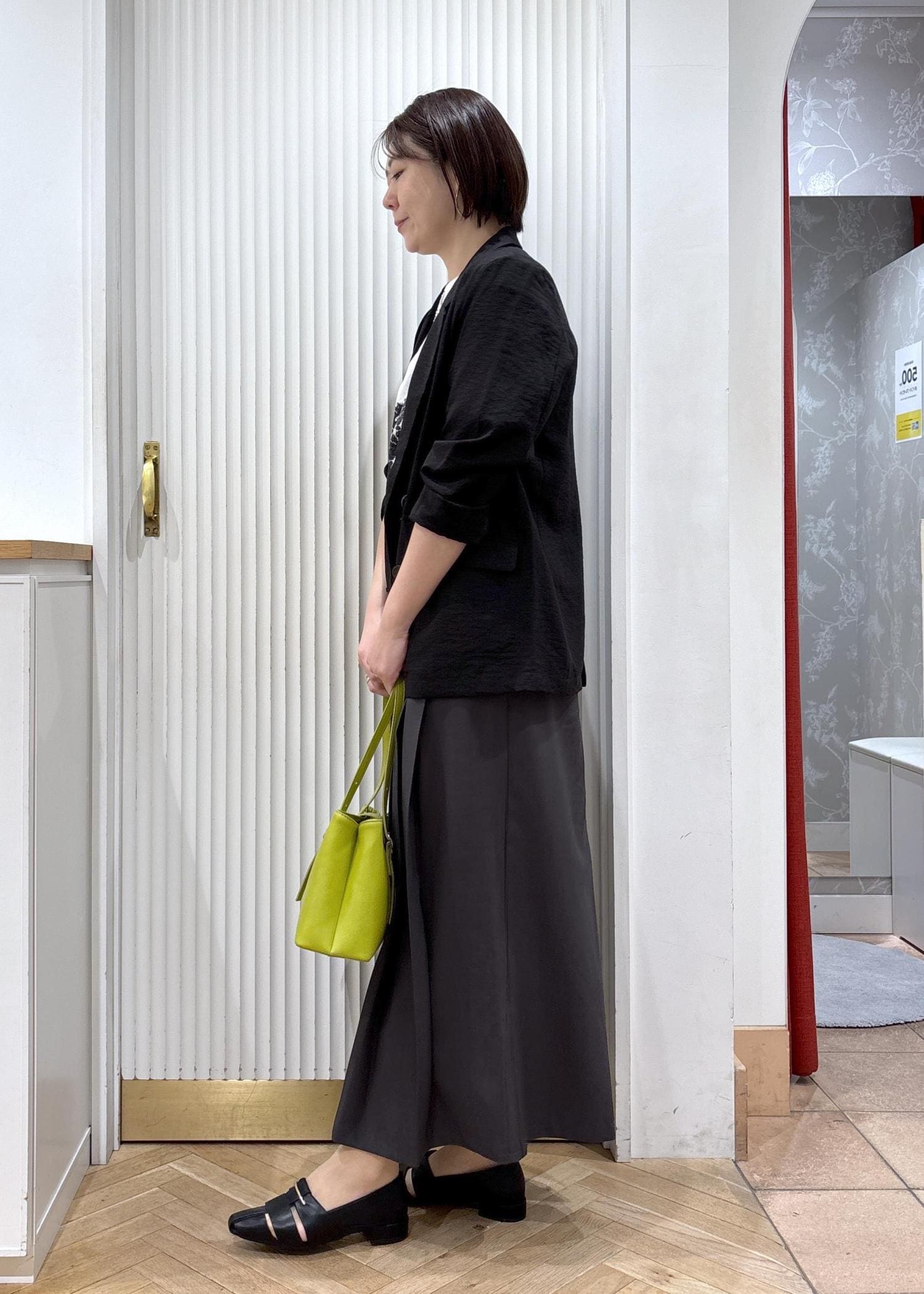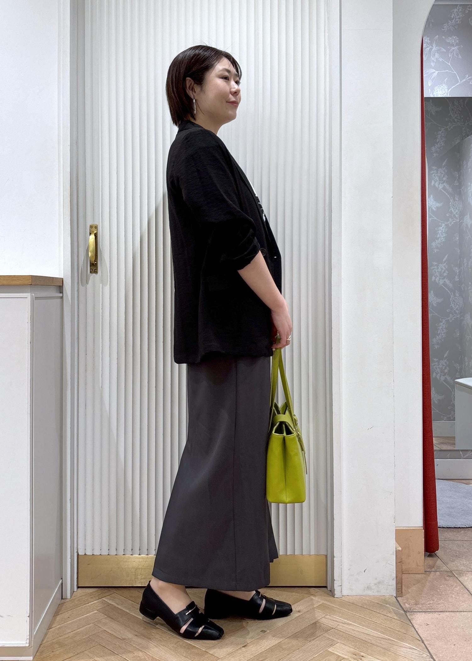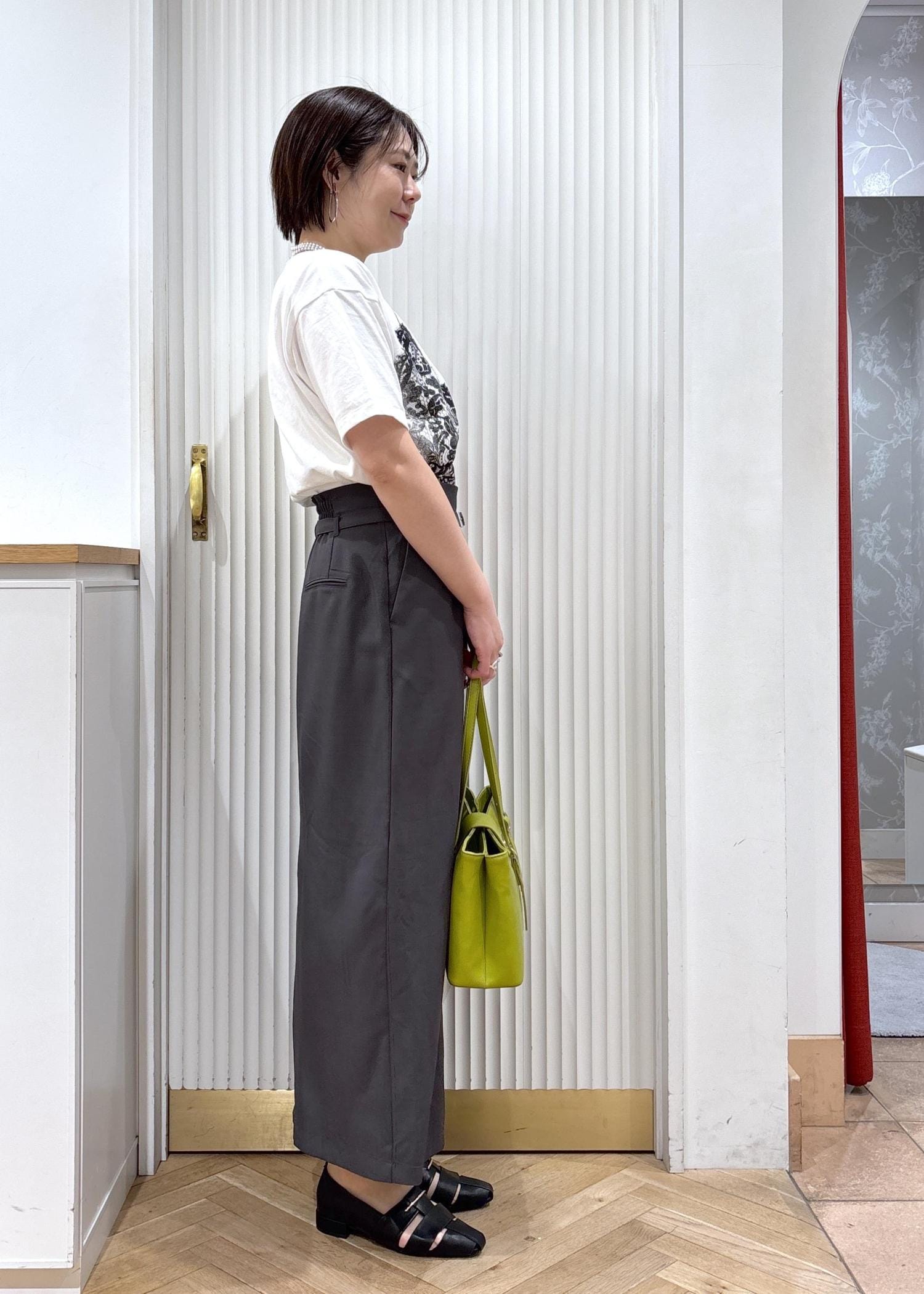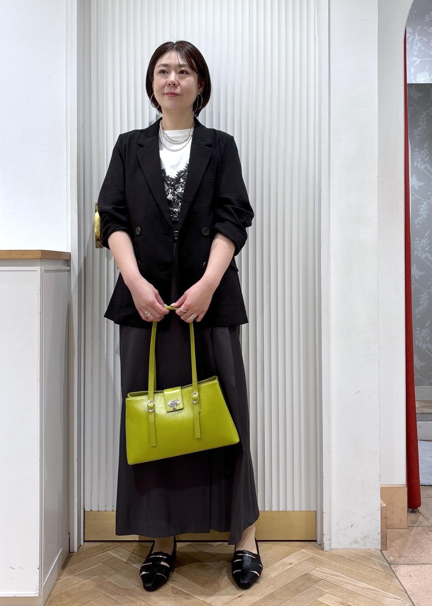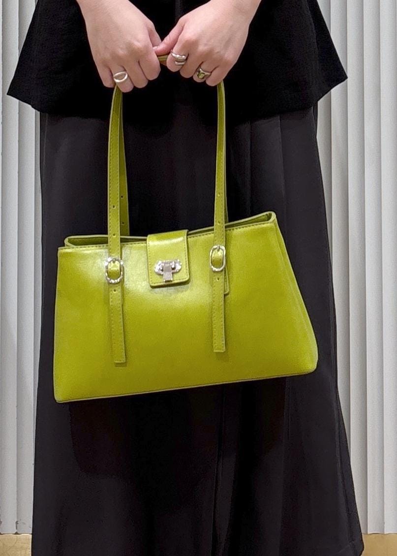 個人的には金具がシルバーなのもカジュアルにも合わせやすく気に入ったポイントです!ライトグリーンは差し色に使うとおしゃれ感アップです!