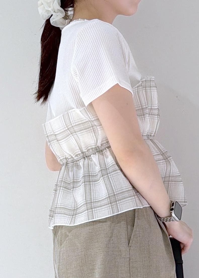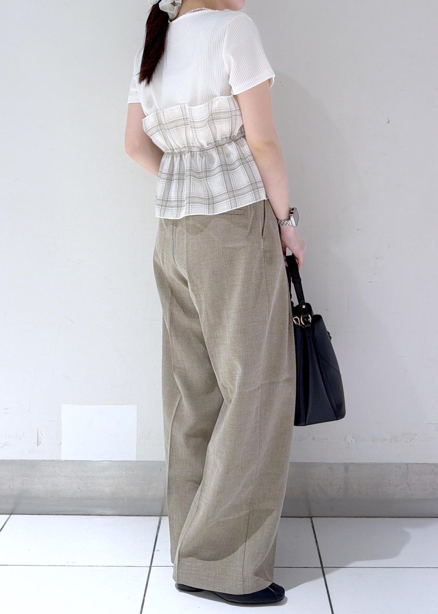VISチェック&無地ビスチェドッキング半袖プルオーバー/イージーケアキナリ系 / F¥5,489レビュー1枚で着映えするビスチェドッキングニットです!サラッとした生地で着心地も良かったです◎ビスチェのウエスト部分ゴムが入ってるのでスタイルアップもします