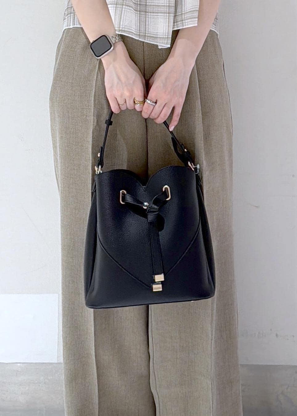 ブラックは、ハートがさり気なく分かるようになってるので、いろんなテイストのコーデにも使いやすいです◎金の金具が高見えします♪