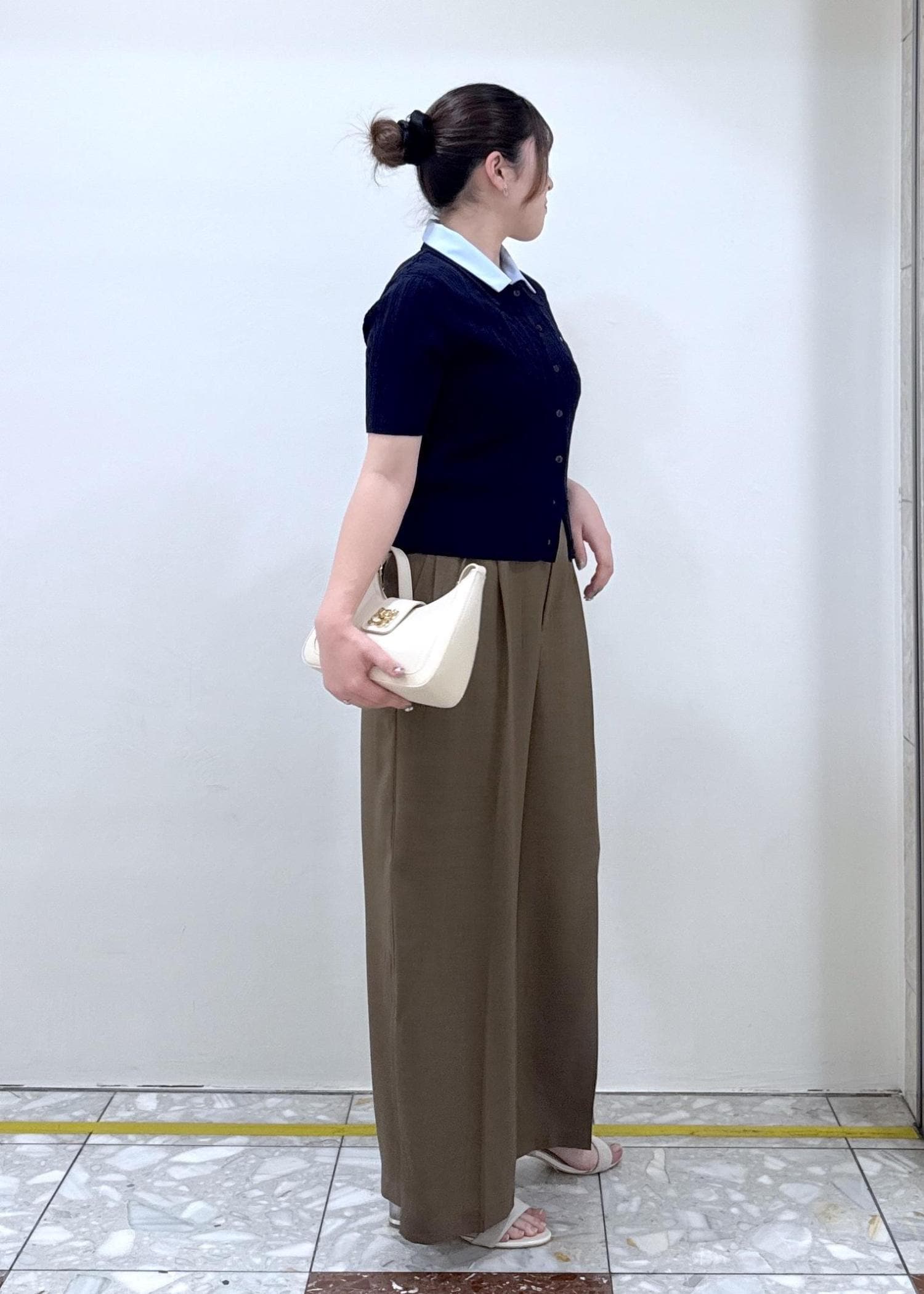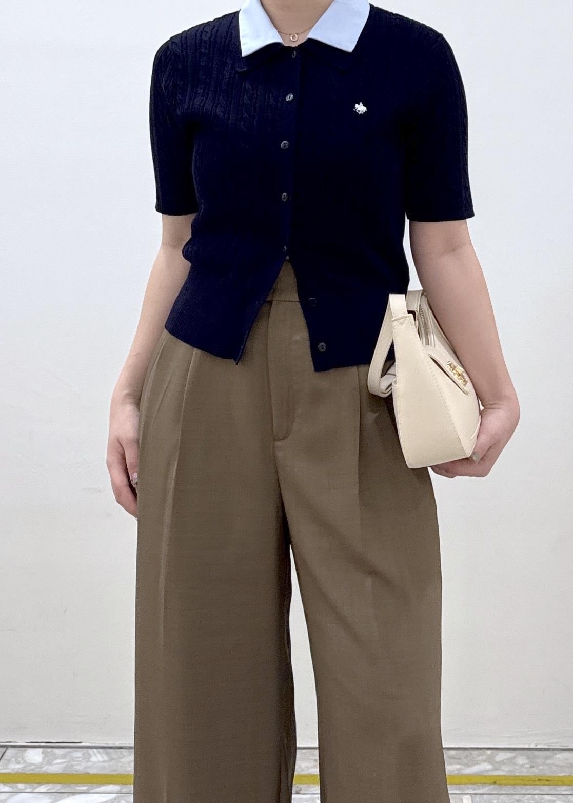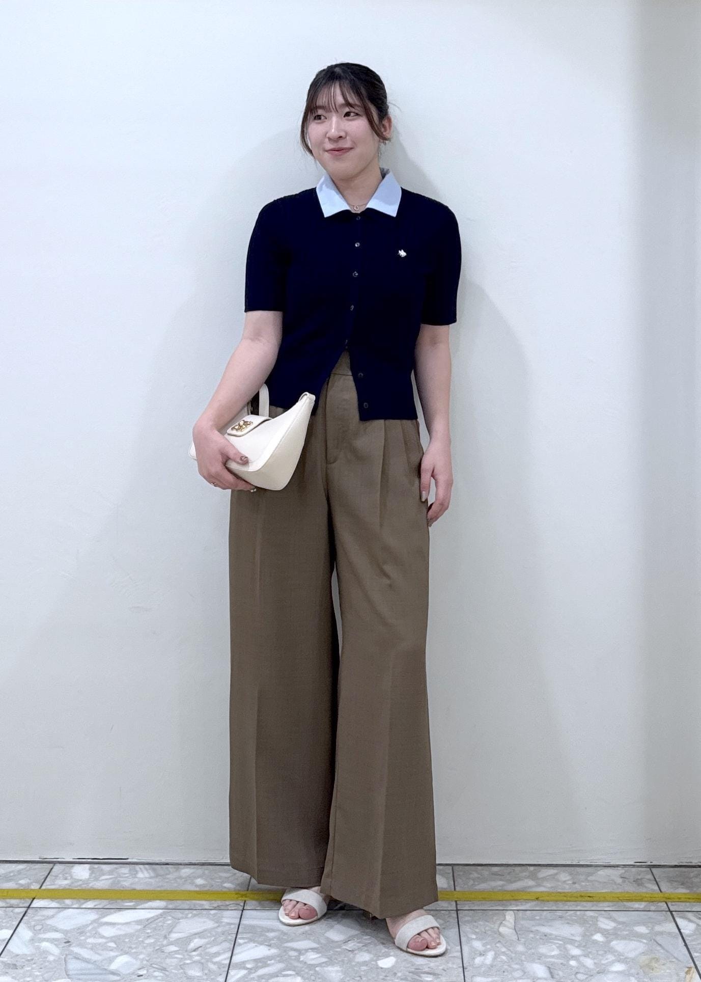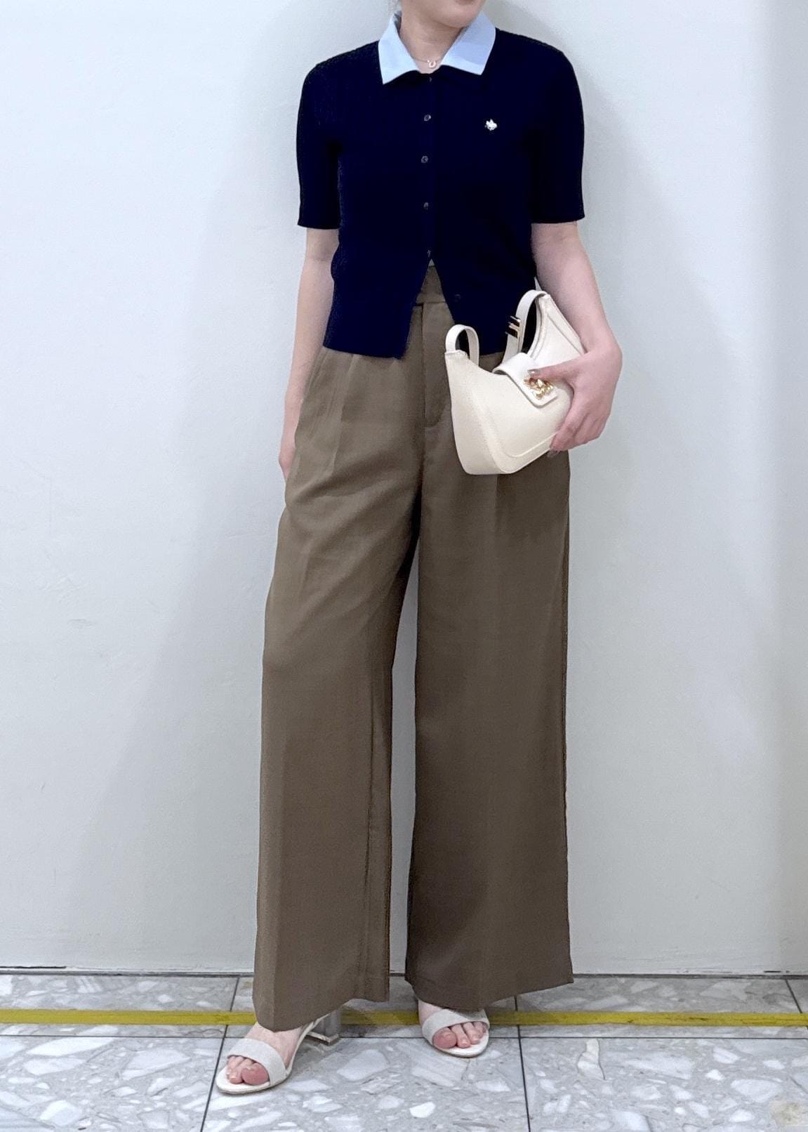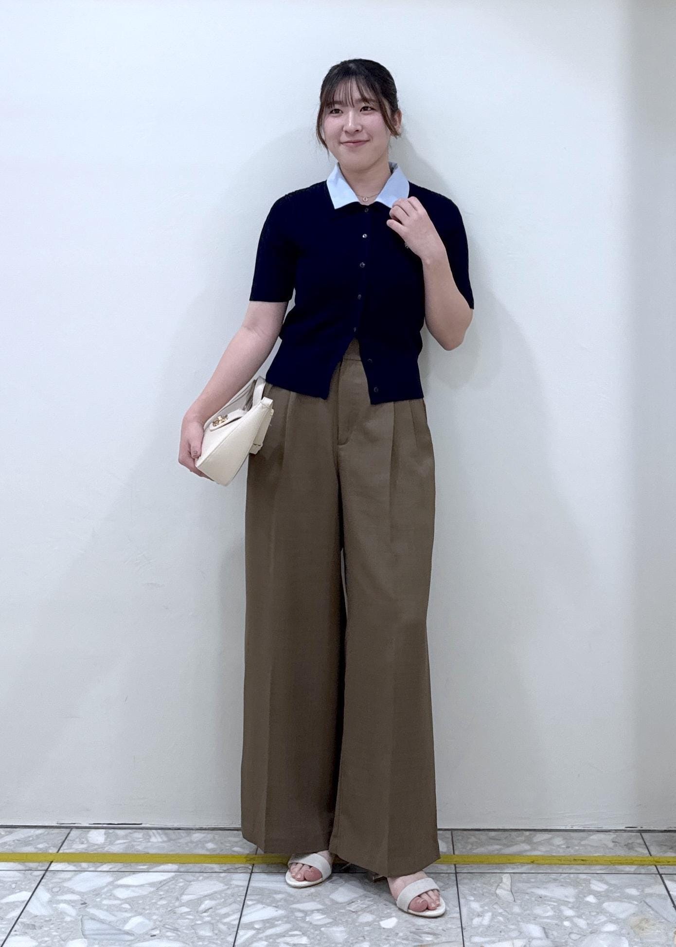 ネイビー×ブラウンがトレンド感のあるコーデに!