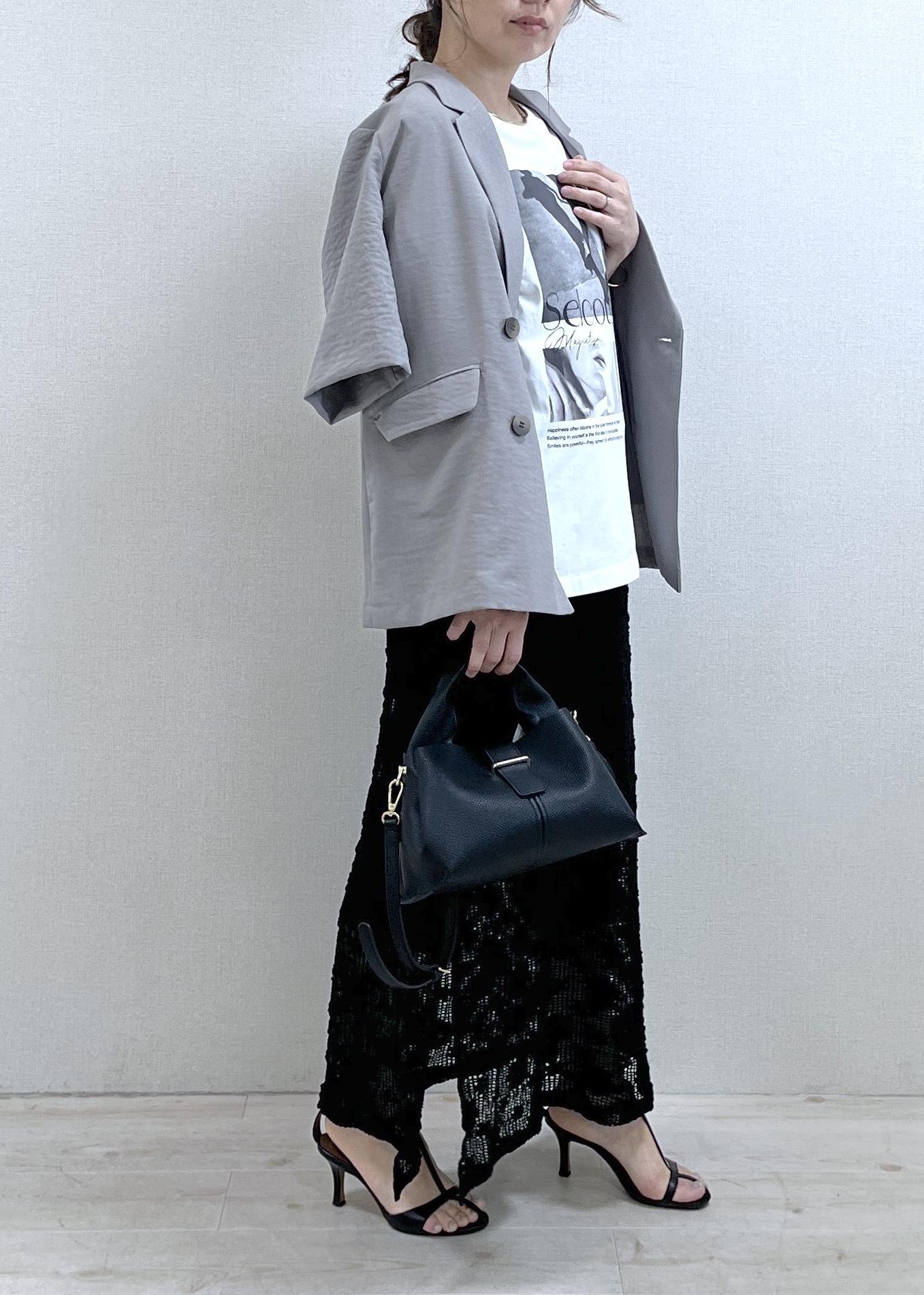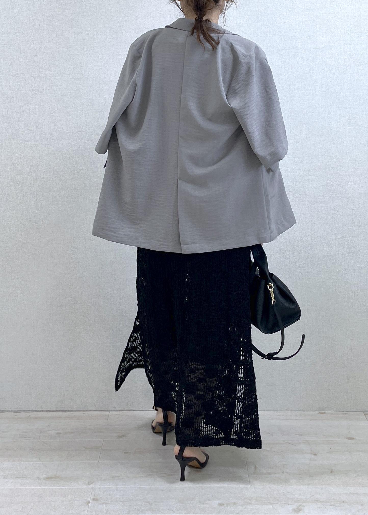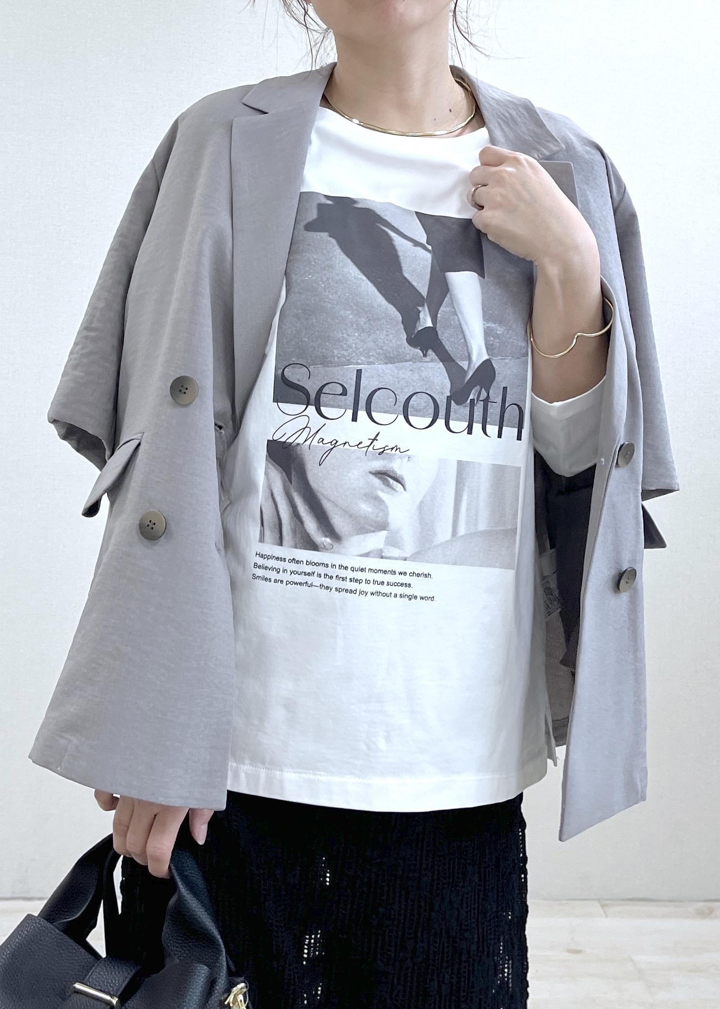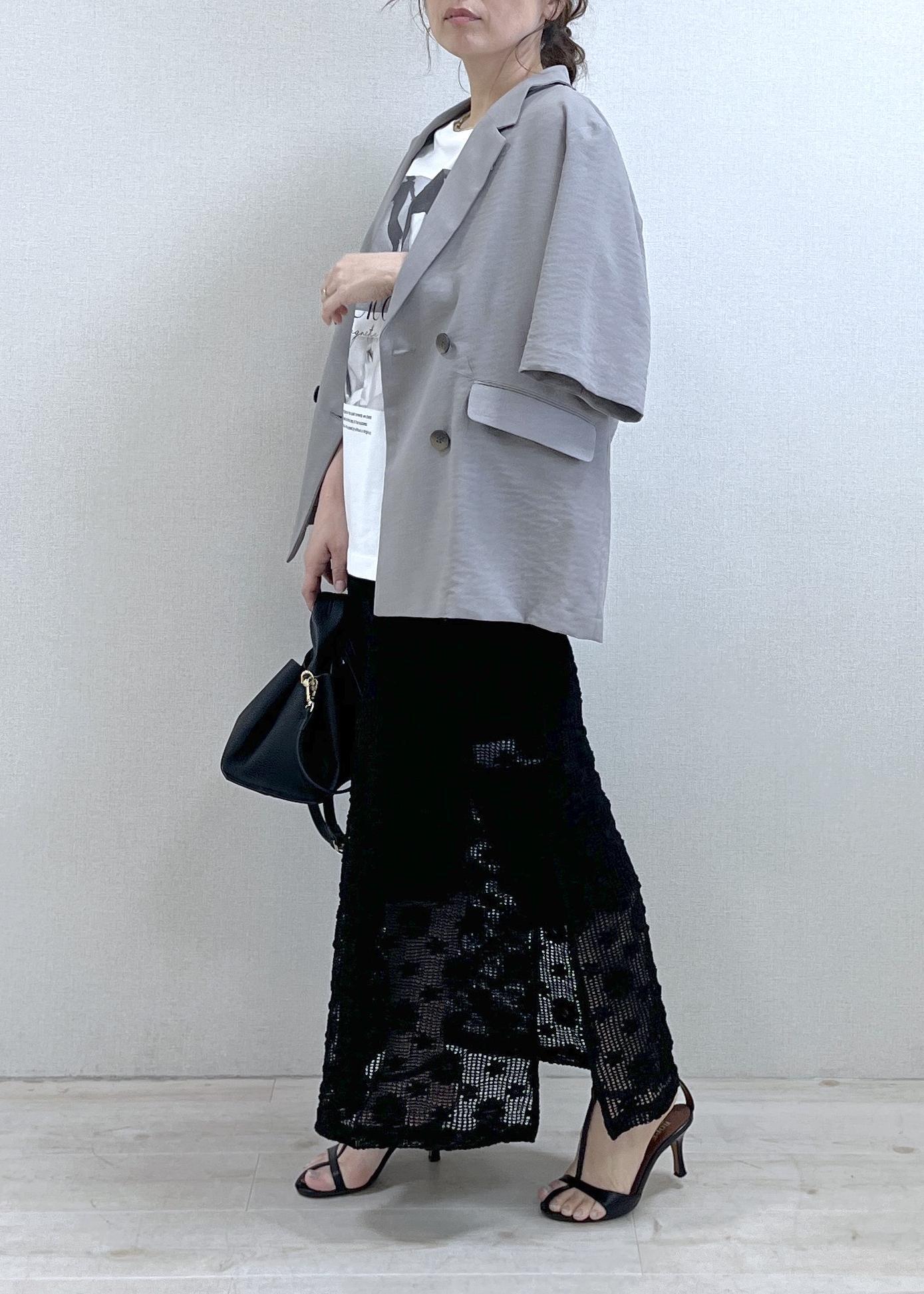VIS美easyリネンライクハーフスリーブダブルジャケット/接触冷感・セットアップ対応グレー / S¥7,909レビュー152cmでサンプルの為Mサイズ着用し、着丈はお尻が隠れるくらいの丈。ややオーバーサイズですが、柔らかくシワになりにくい素材なので横に広がりすぎることなくお召しいただけます。リラックス感ありが良い方はMサイズ。コンパクト見えがお好きな方はSサイズがお勧めです。夏まで涼しく着られるシンプルジャケットは持っていると安心です!画像はSサイズ着用です。