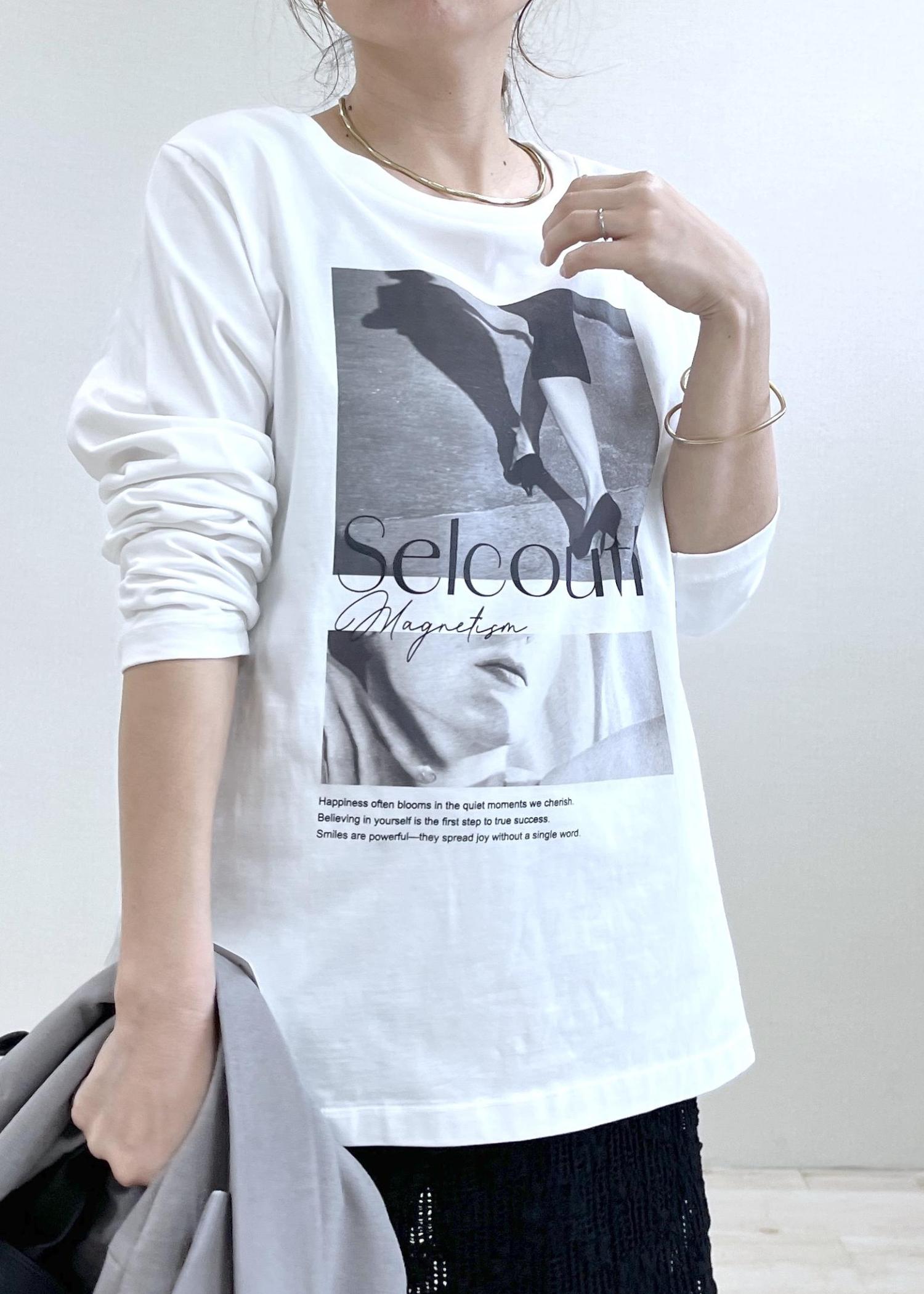 VISロゴ&フォトアソートプリントロンTホワイト / F¥2,633レビュー身体のラインを拾いすぎないすっきりサイズのロンTです。綿100%素材なので、パリッとした着心地です。着丈はお尻に少しかかるくらいの丈。何枚あっても困らないアイテムです。