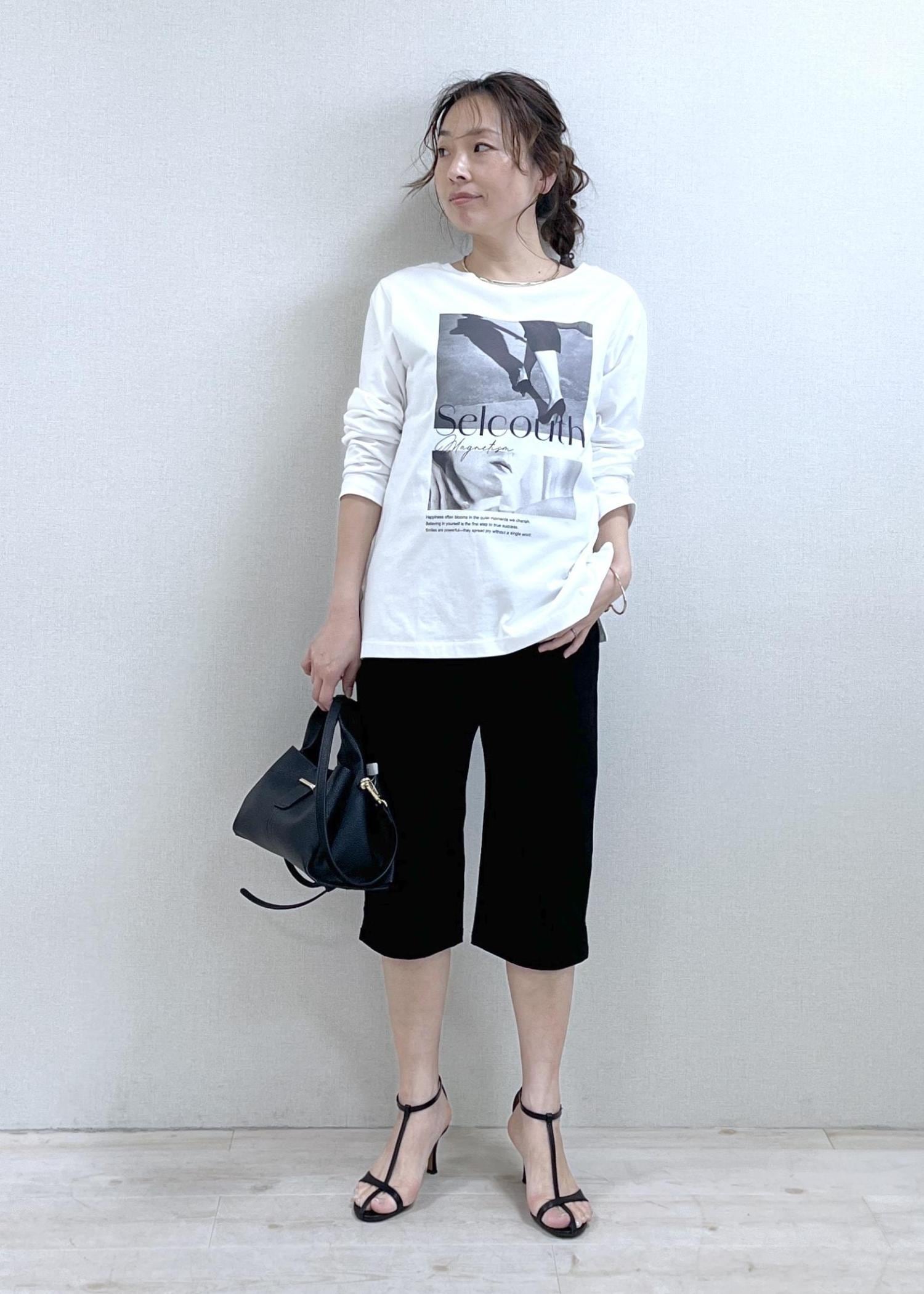 VIS裾スリットカプリパンツブラック / S¥5,489レビューSサイズ着用し、膝下くらいの丈。ウエストもジャストサイズ。太もも周りはややゆとりをもって着用できました。パリッとした張りのあるコットンツイル素材でキレイ見え。今年は是非取り入れたいトレンドアイテムです。