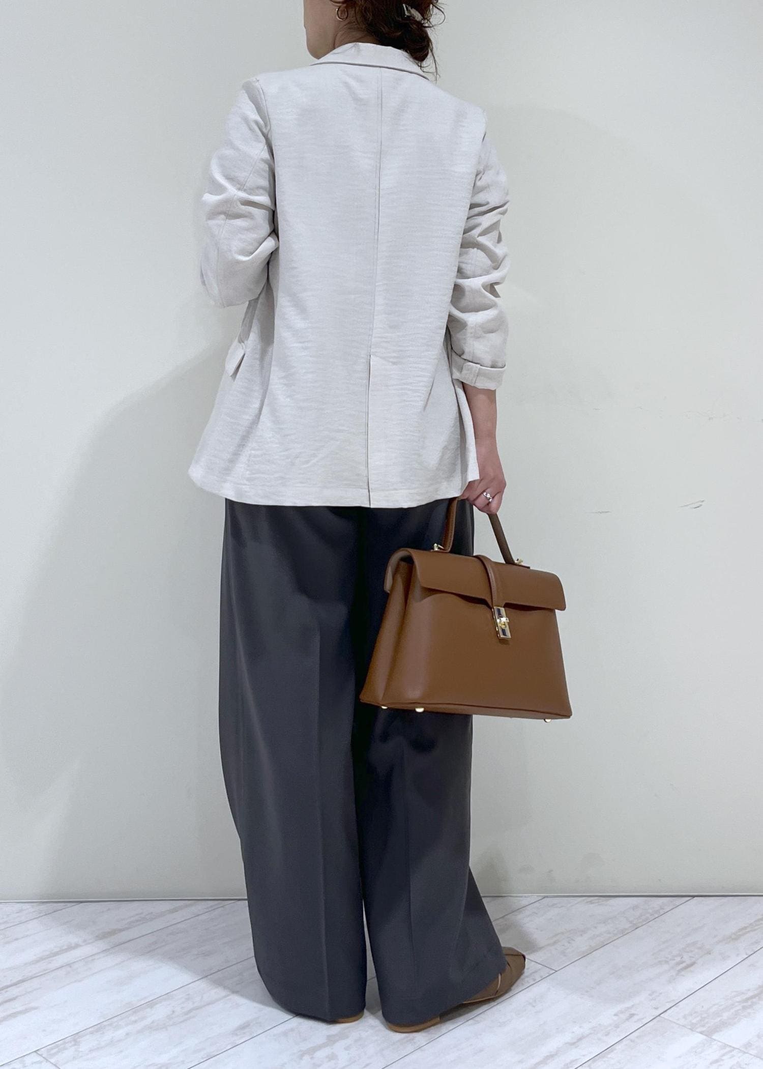 裏地もないので少しゆるっとしたサイズ感で着用できます。