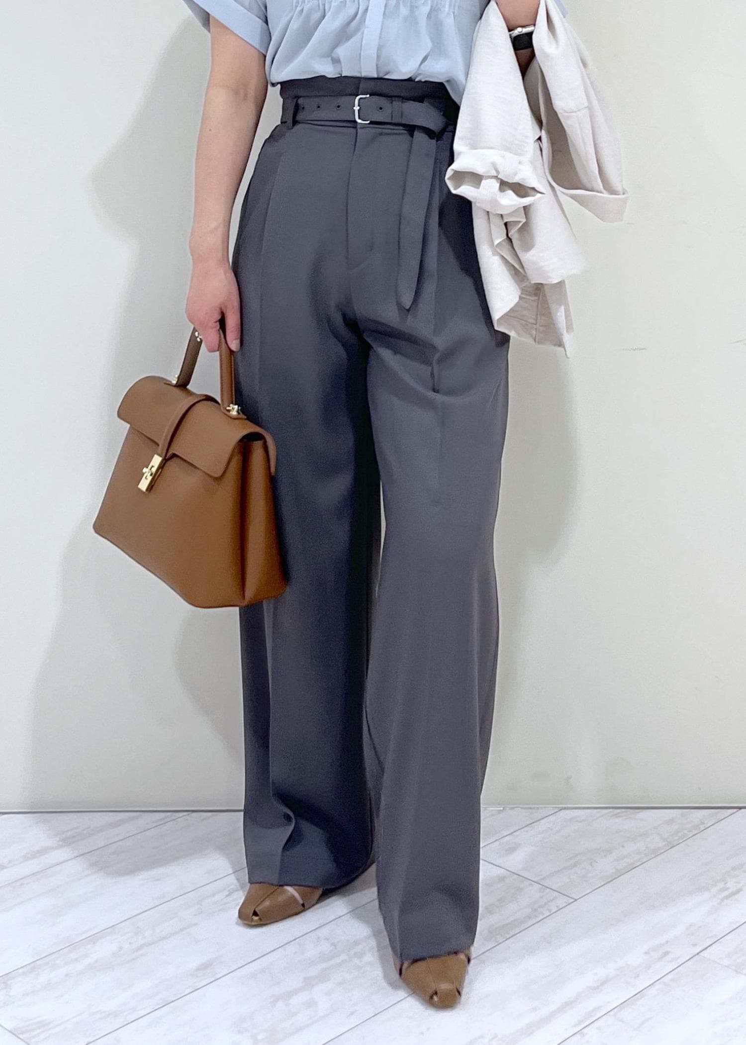 予約VISベルトディティールタックワイドパンツ/イージーケア・接触冷感チャコール / M¥6,589レビュー159㎝でMサイズ着用。