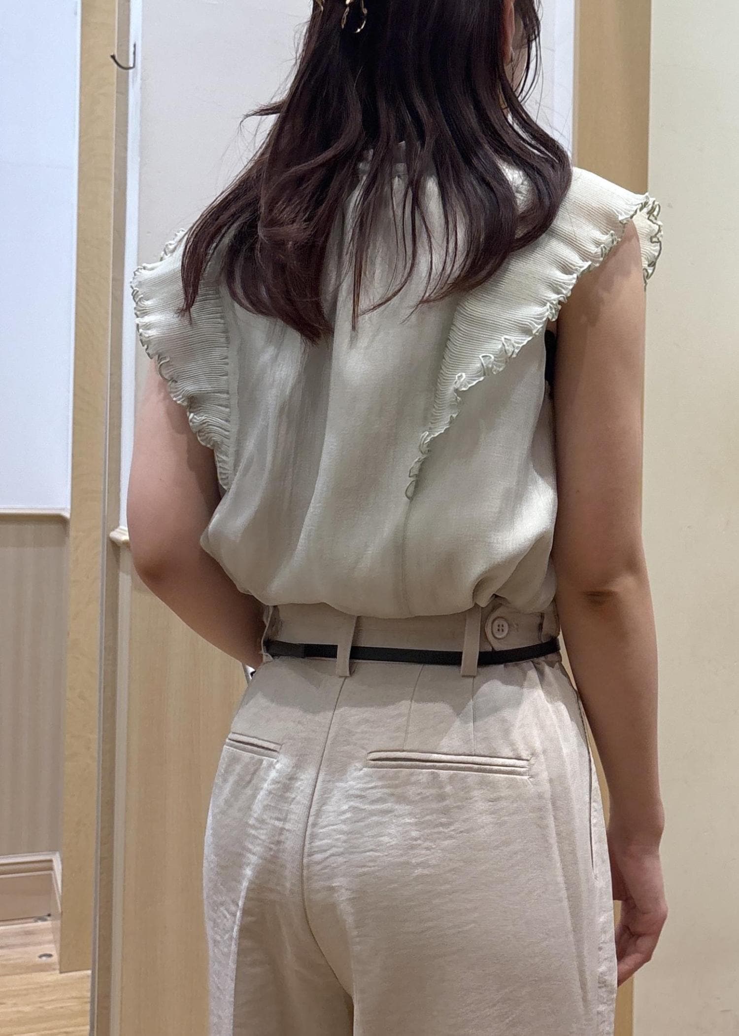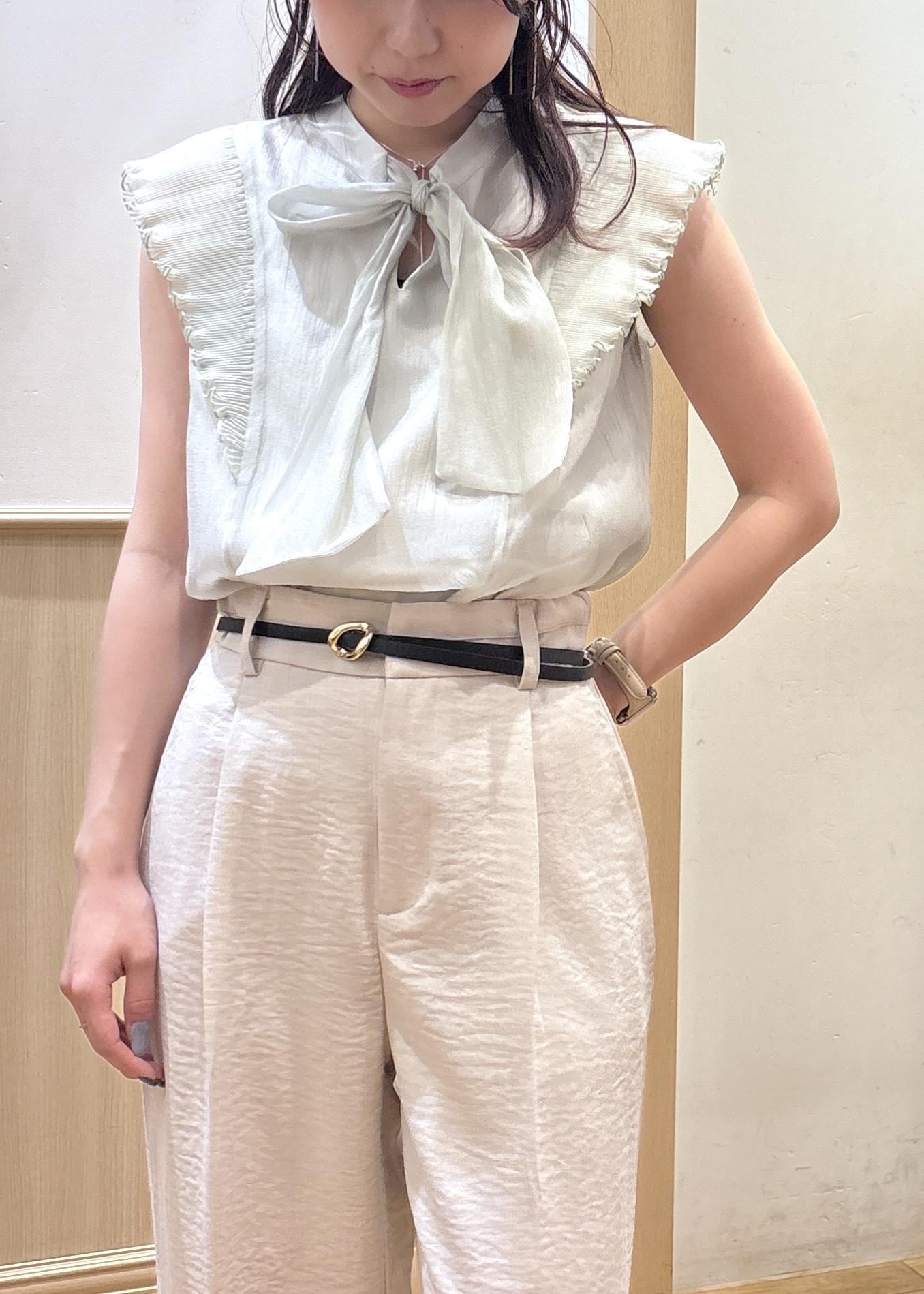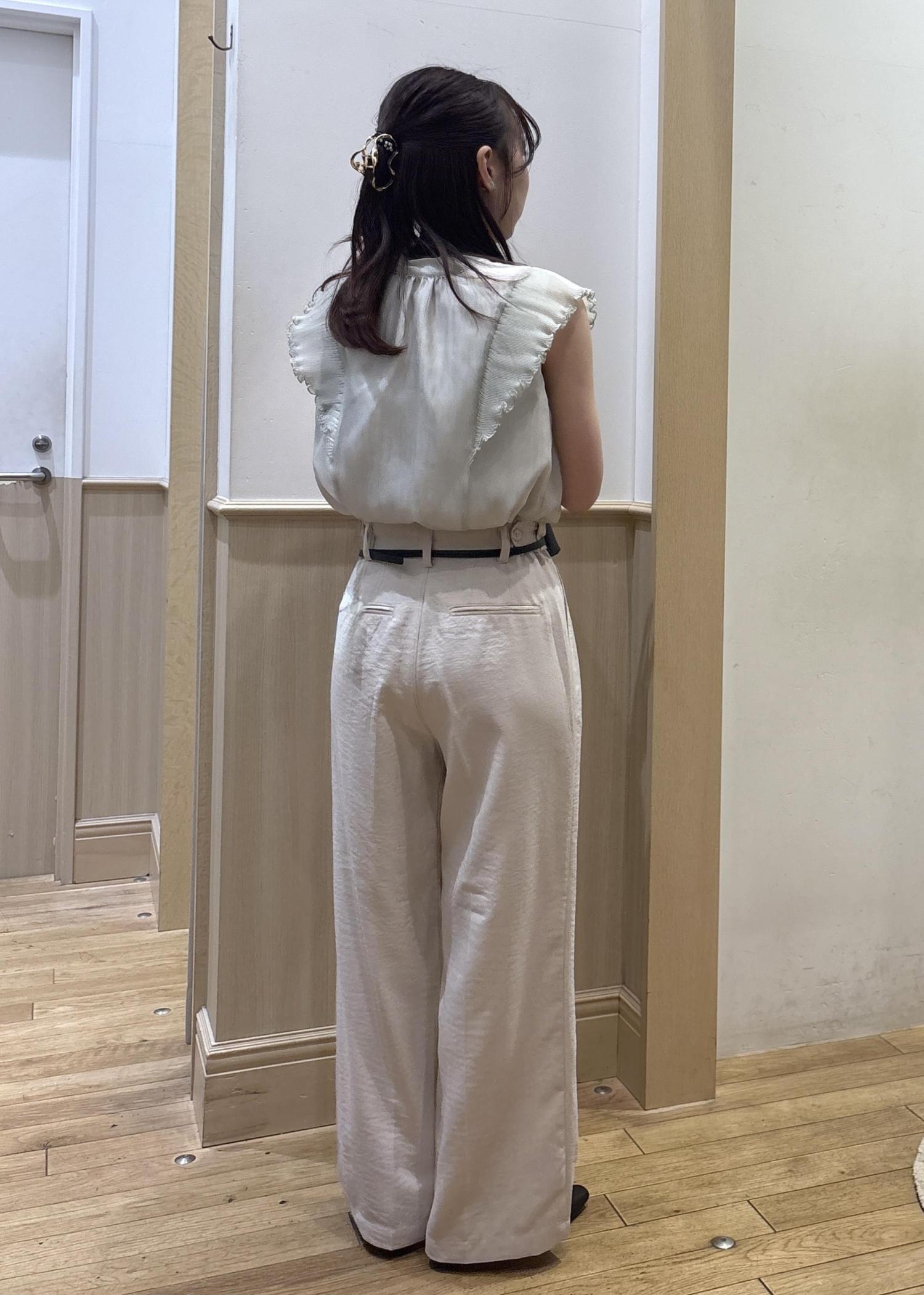 肩のフリルがシアーなので横に大きく見えすぎることもなく着用いただけます! -