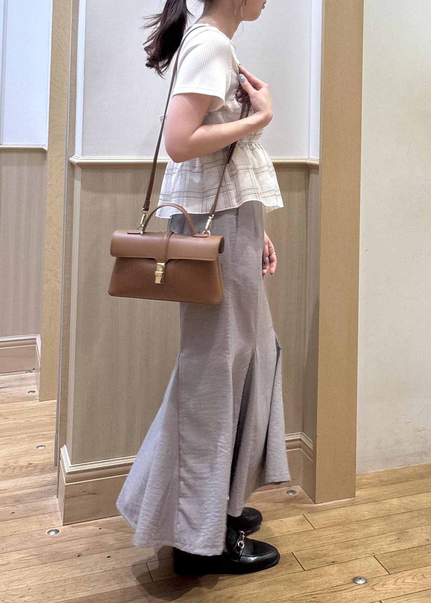 きれいめなコーデにもぴったりなシンプルなデザインで、斜め掛けしてもバッグの存在感が強くなりすぎないのがポイントです。 -