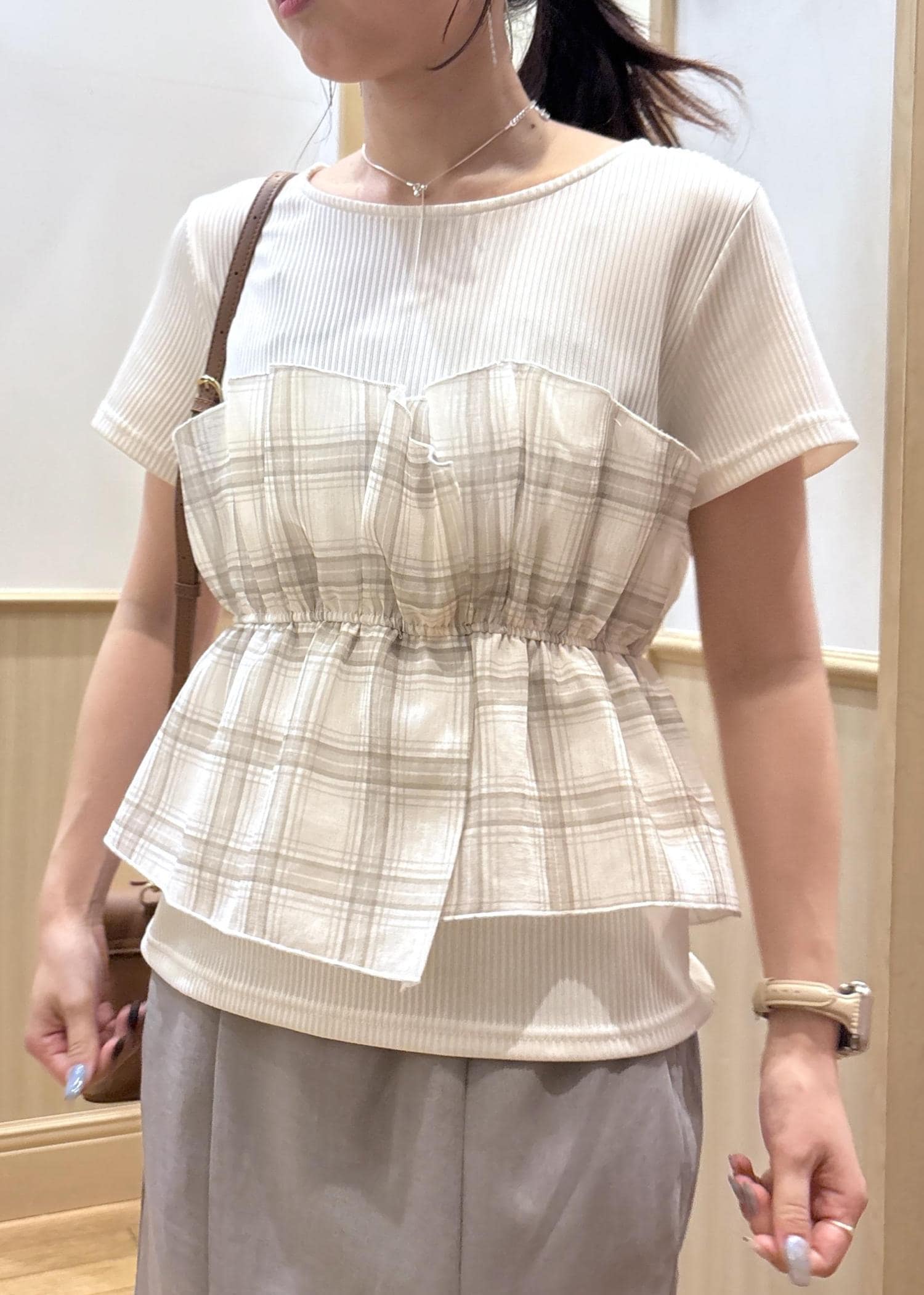 VISチェック&無地ビスチェドッキング半袖プルオーバー/イージーケアキナリ系 / F¥5,489レビュー半袖なので、脇周りも心配せずに着用いただけます。