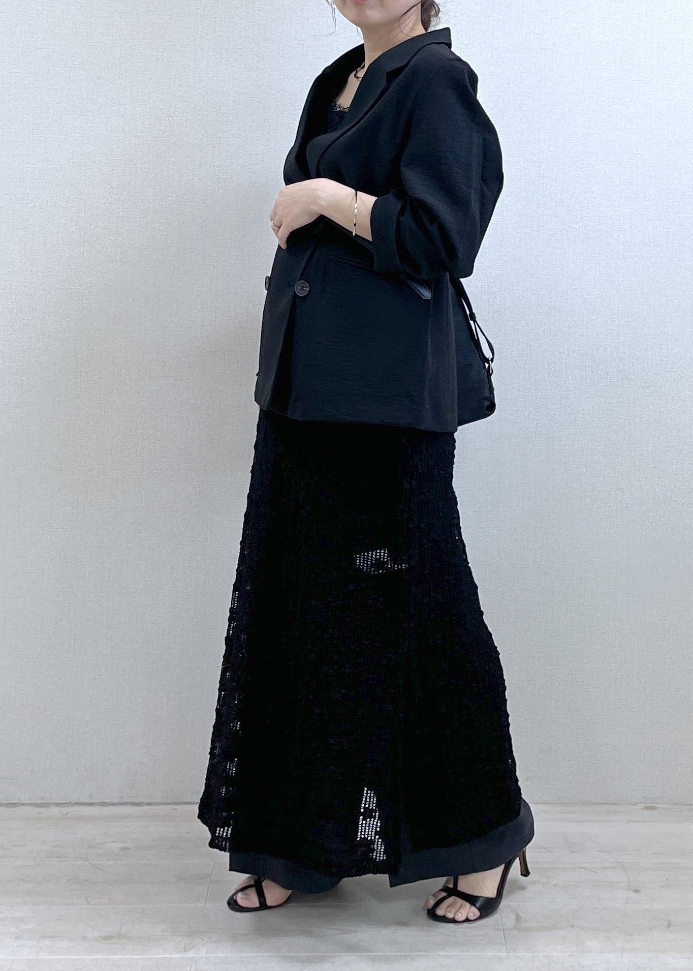 VISフラワーレースキャミワンピースブラック / F¥6,589レビューFサイズ着用し、着丈は足首が出るくらいのロング丈ですが、肩紐で調節していただけるのでお好きな長さにできます。全体的にすっきりシルエットの細身デザインですが、胸周りはやや大きめでした。レイヤードスタイリングにこなれ感をプラスしてくれる今年は是非欲しいアイテムです。ポコポコした表面感のある素材です。