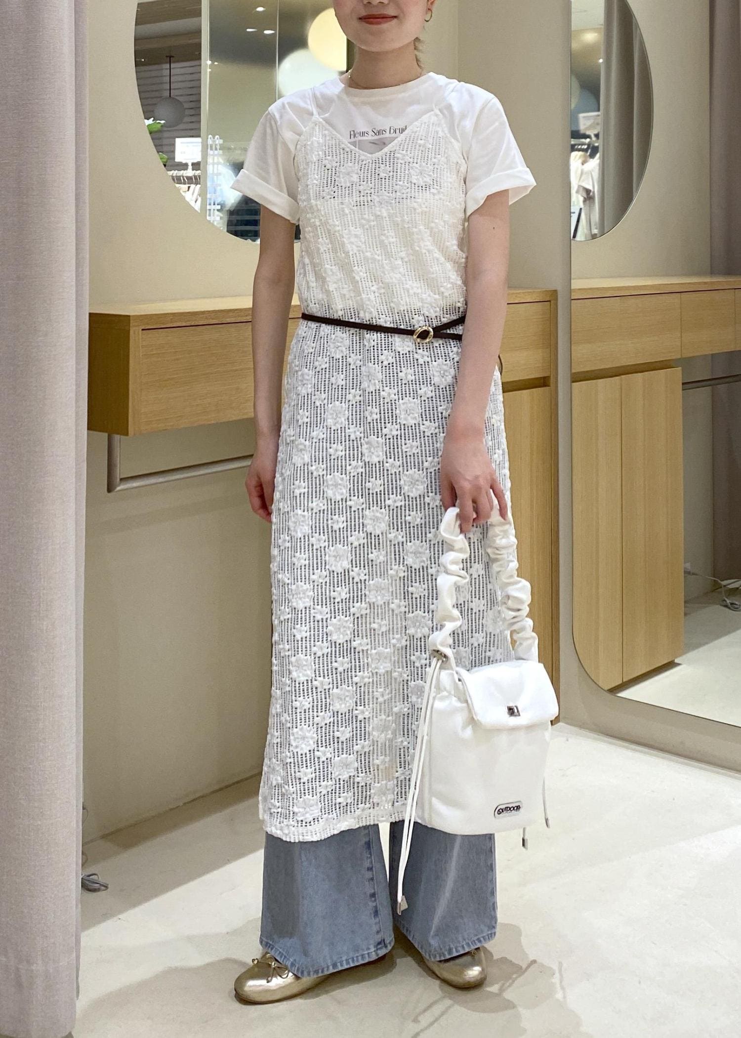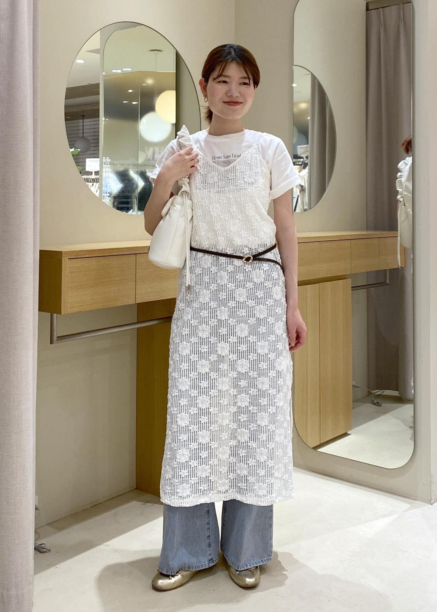 ベルトでウエストマークを作り、シルエットにメリハリも出してみました!