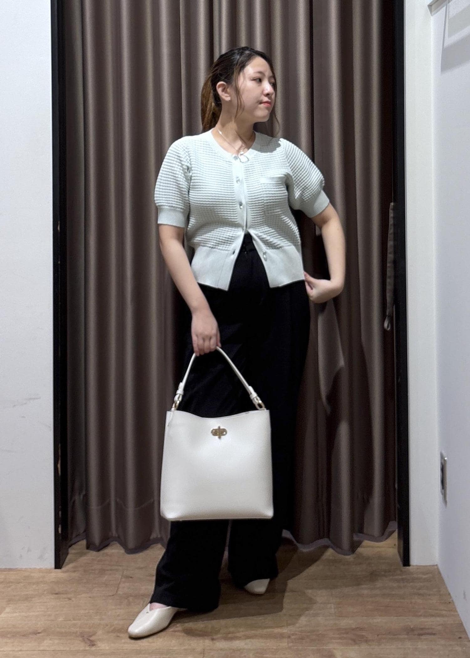 VISクルーネックコンパクトカーディガン/イージーケアライトグリーン / F¥5,929レビューコンパクトなシルエットですが、全体的に程よくゆとりがあり袖がパフデザインです!