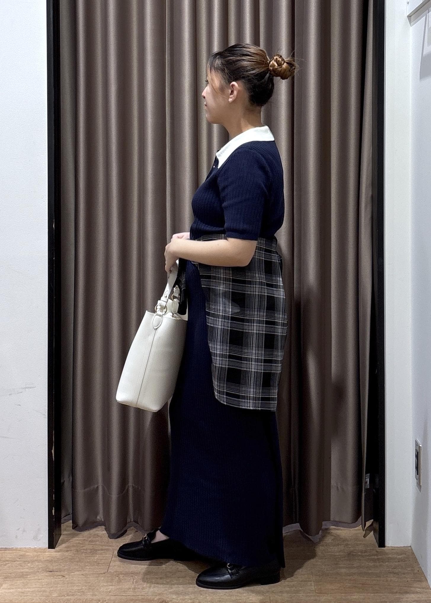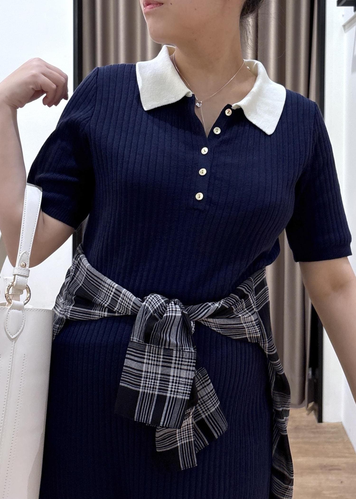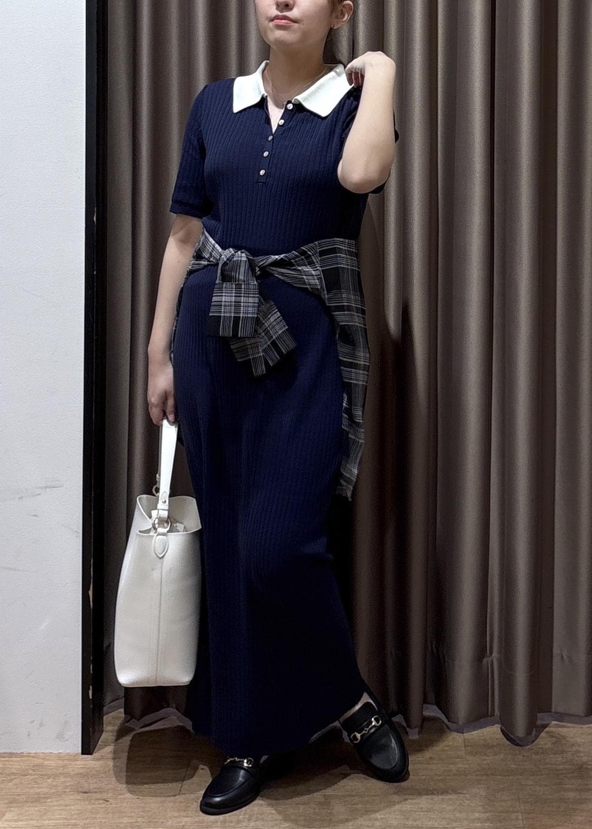 VISポロ襟ニットワンピースネイビー / F¥7,689レビュー153cm、Fサイズ着用で足首が隠れるくらいの丈感です!