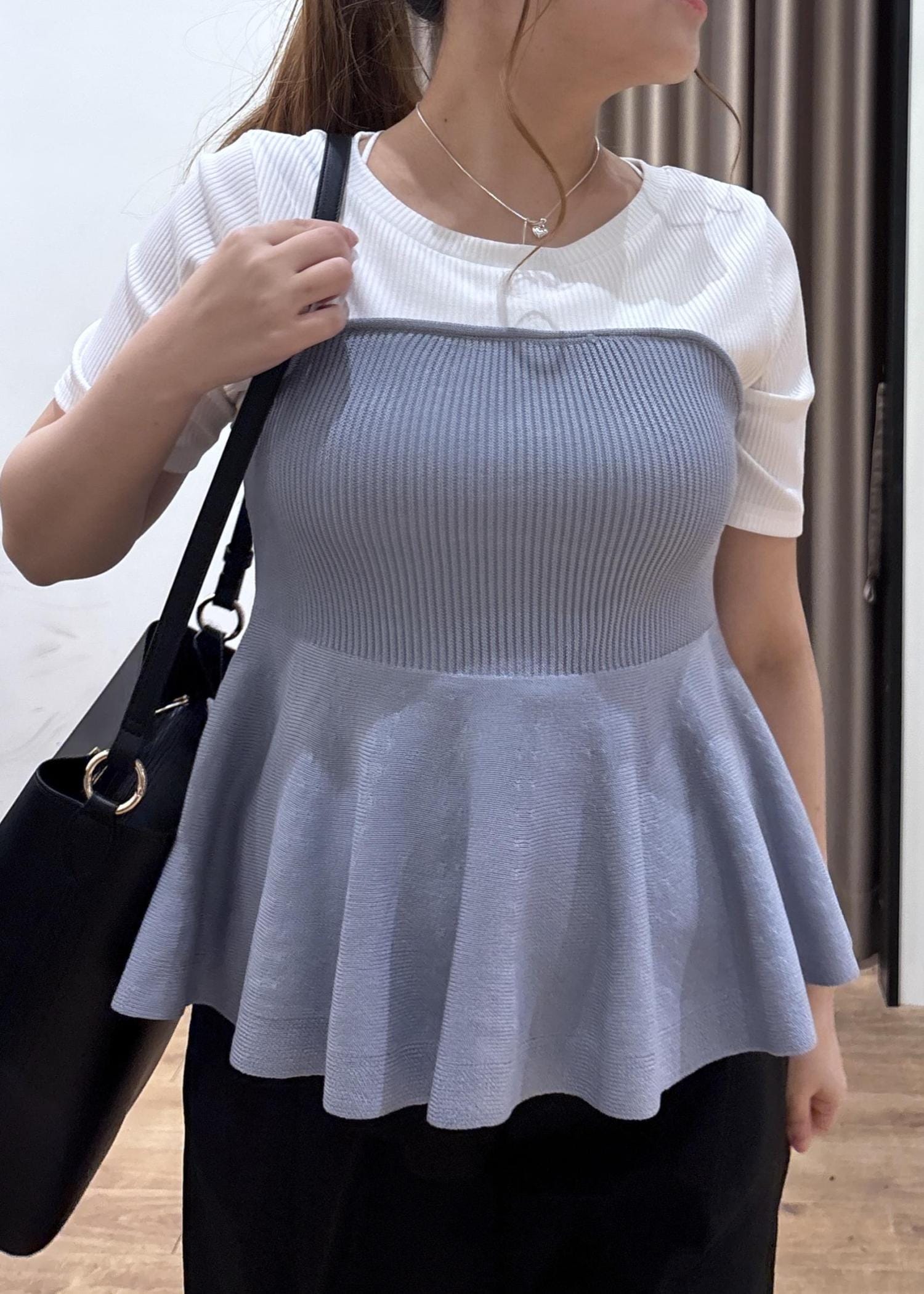 VISペプラムサマーニットドッキングカットソー/イージーケアサックス / F¥5,929レビュー全体的にスッキリとコンパクトなサイズ感ですが伸縮性があるので窮屈感はないです!