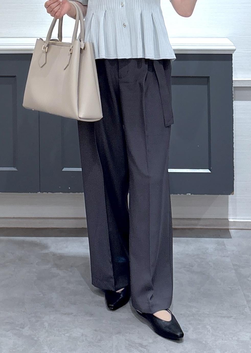 予約VISベルトディティールタックワイドパンツ/イージーケア・接触冷感チャコール / S¥6,589レビュー156cm、Sサイズ着用でウエストも丈感もピッタリでした!