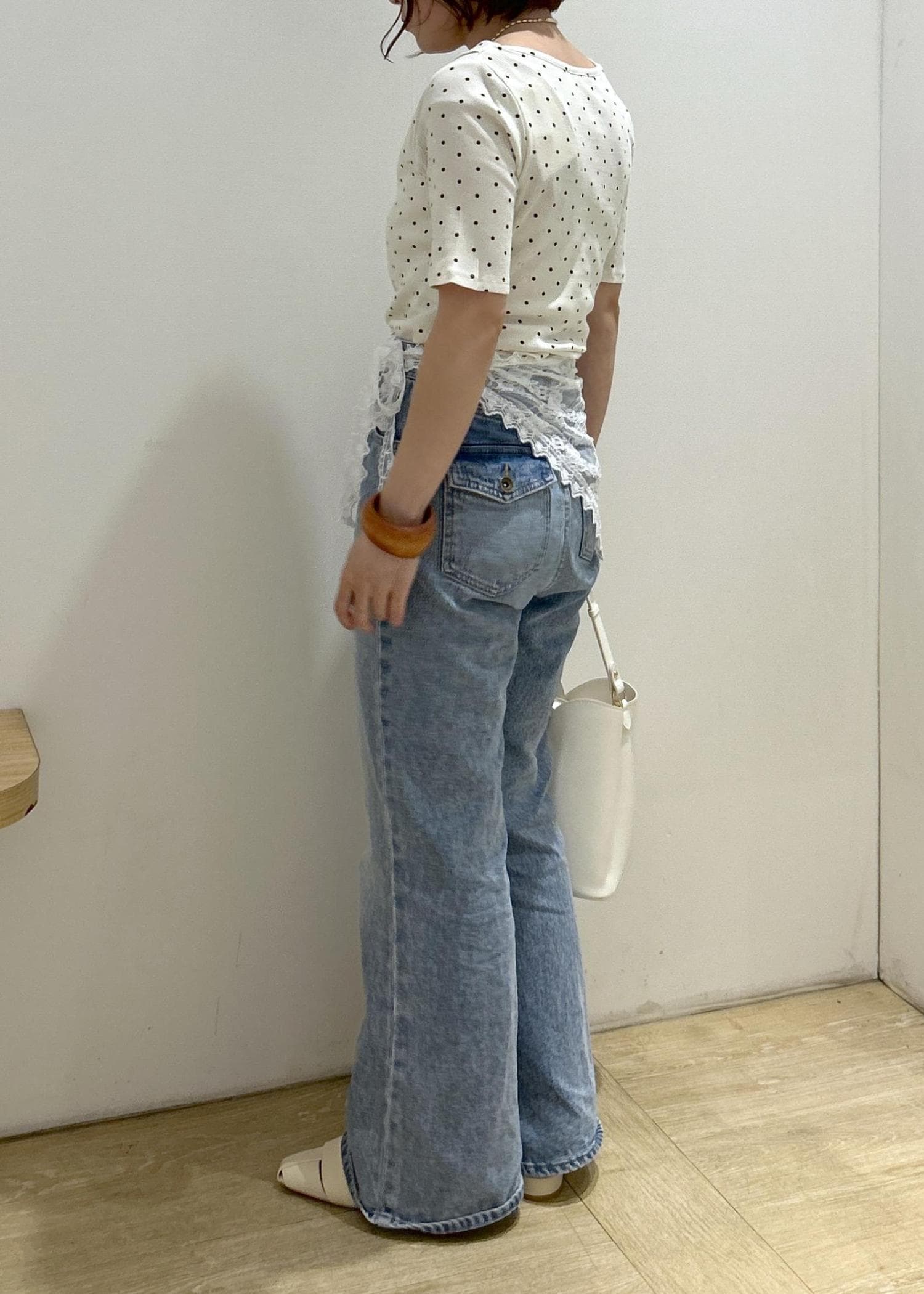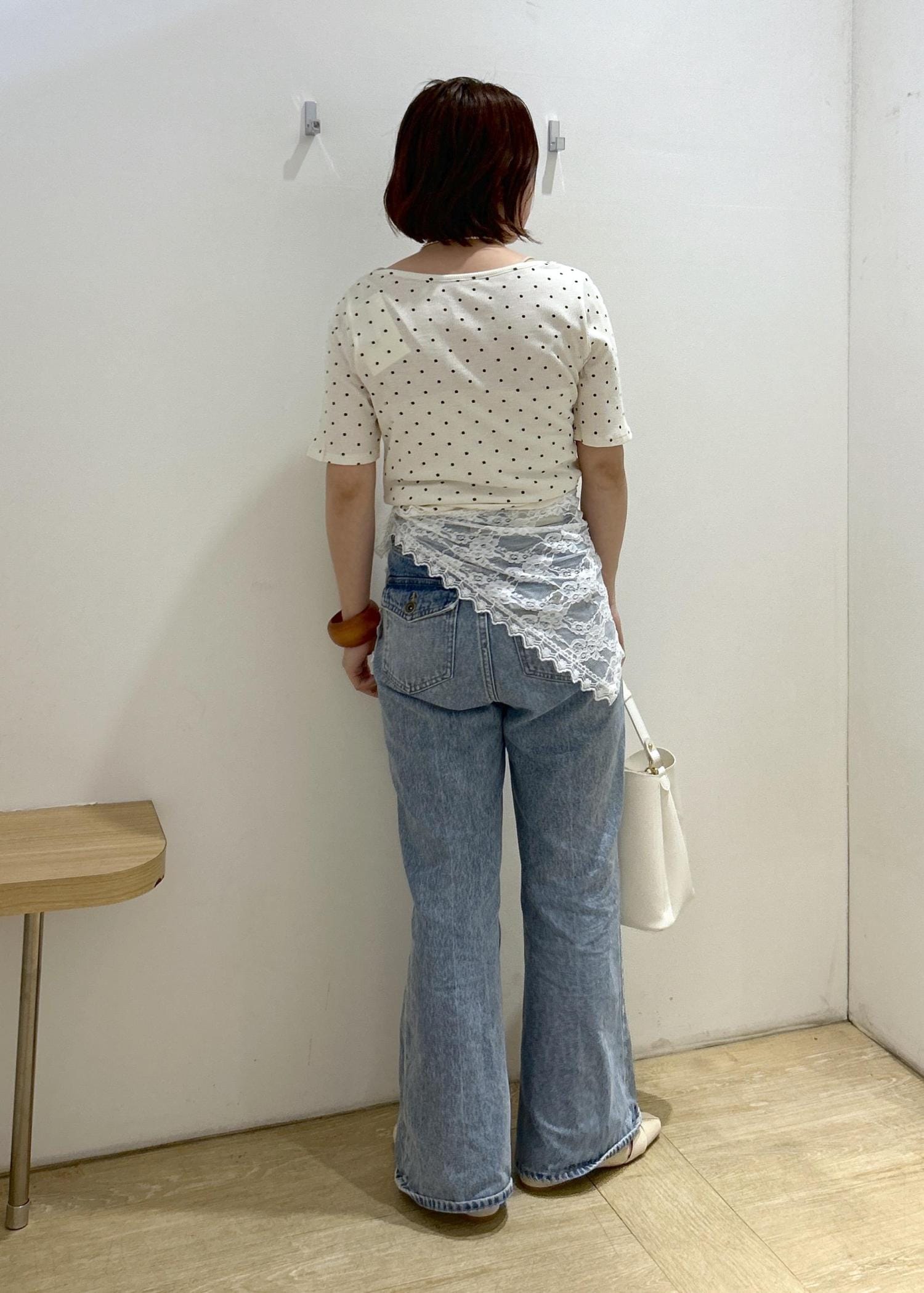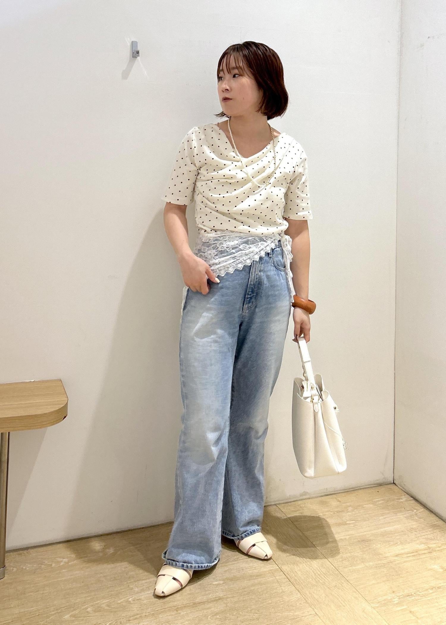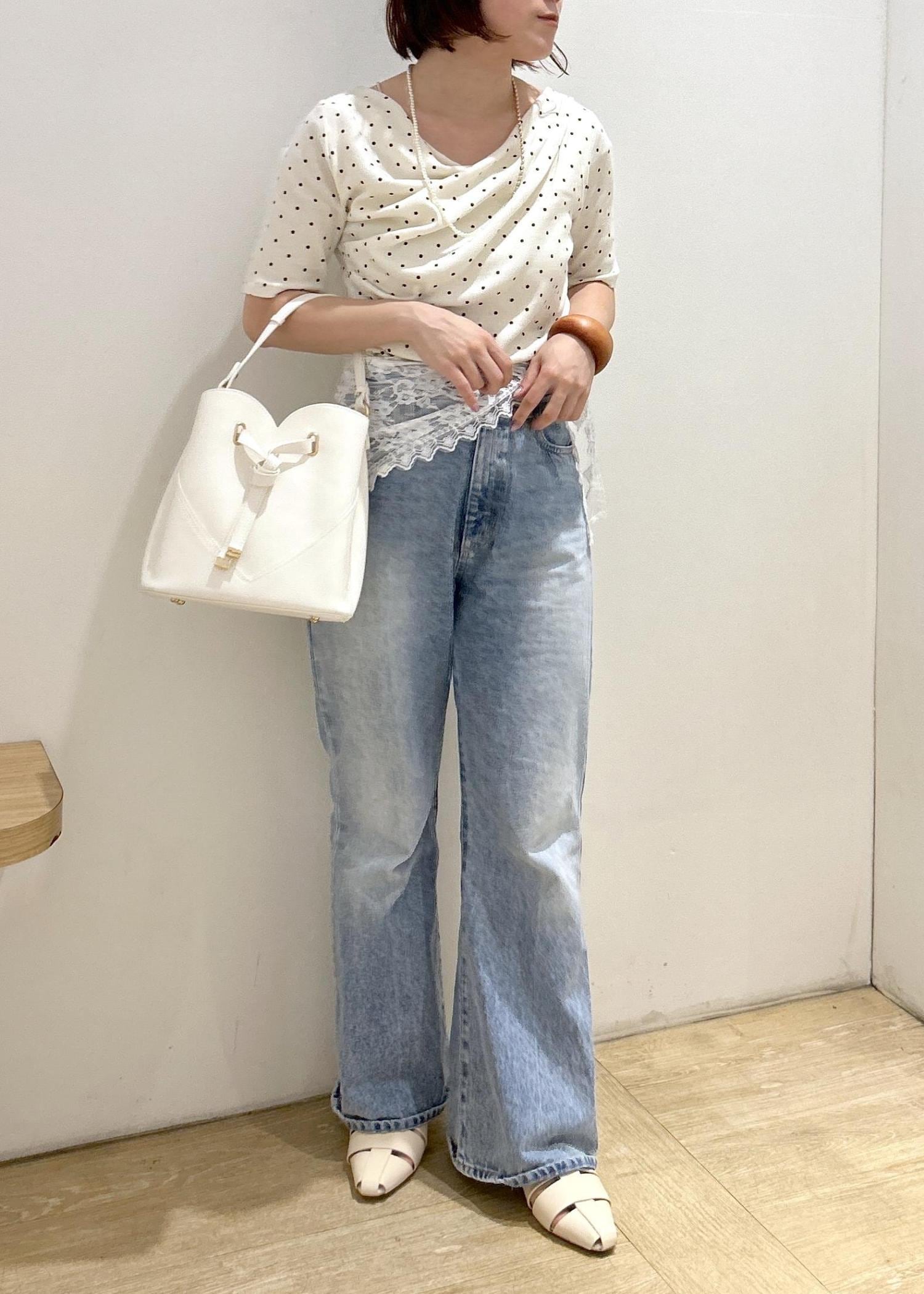 VIS三角レーススカーフオフホワイト / F¥1,639レビュー脚長効果抜群のフレアデニムです。オールシーズン履きやすい素材で、Sサイズでジャストサイズでした。丈はヒールを履いて丁度良い長さです。