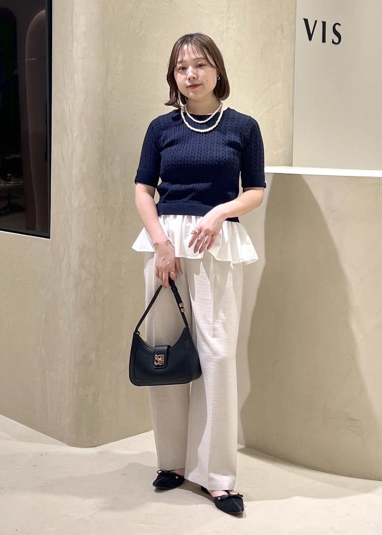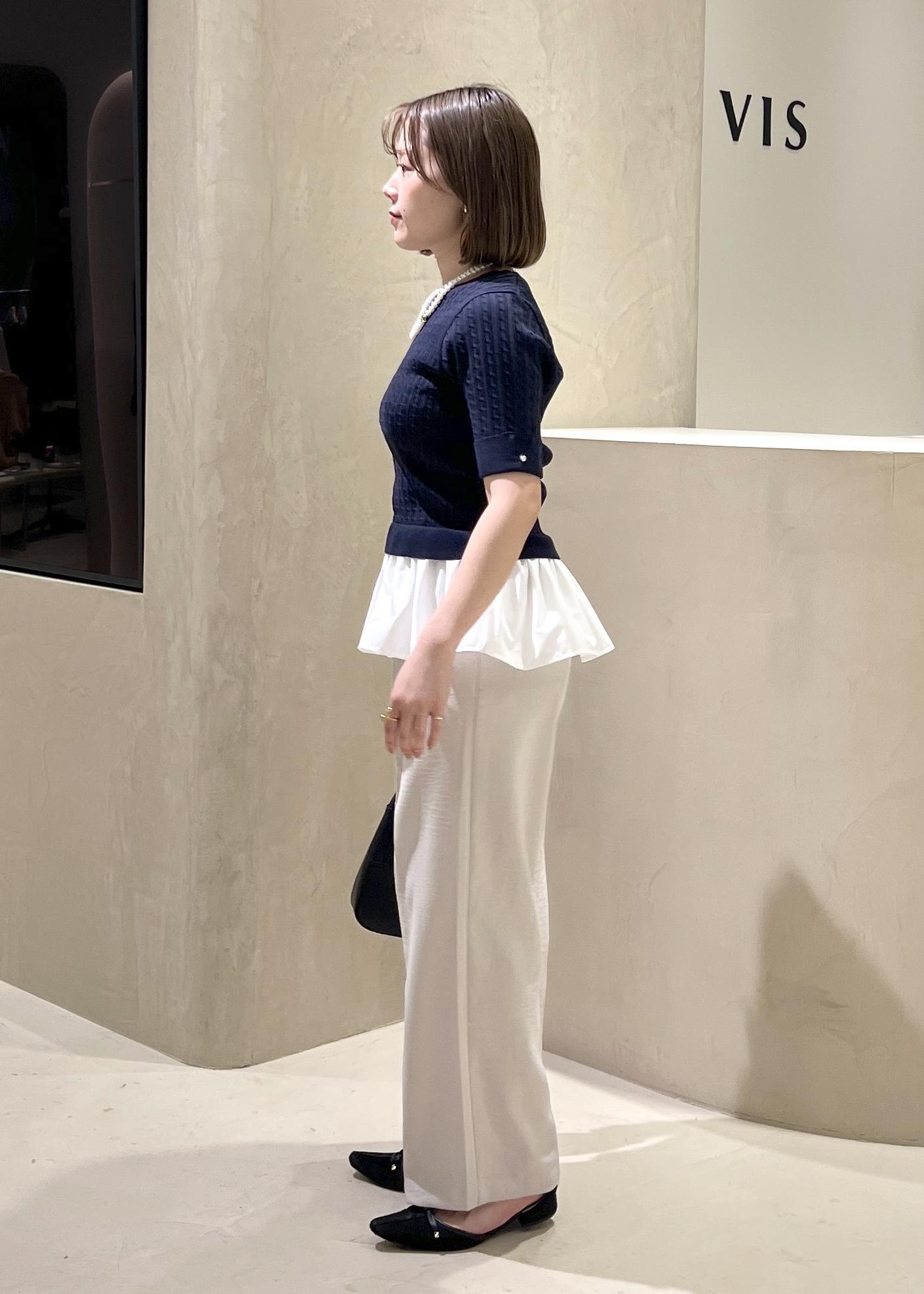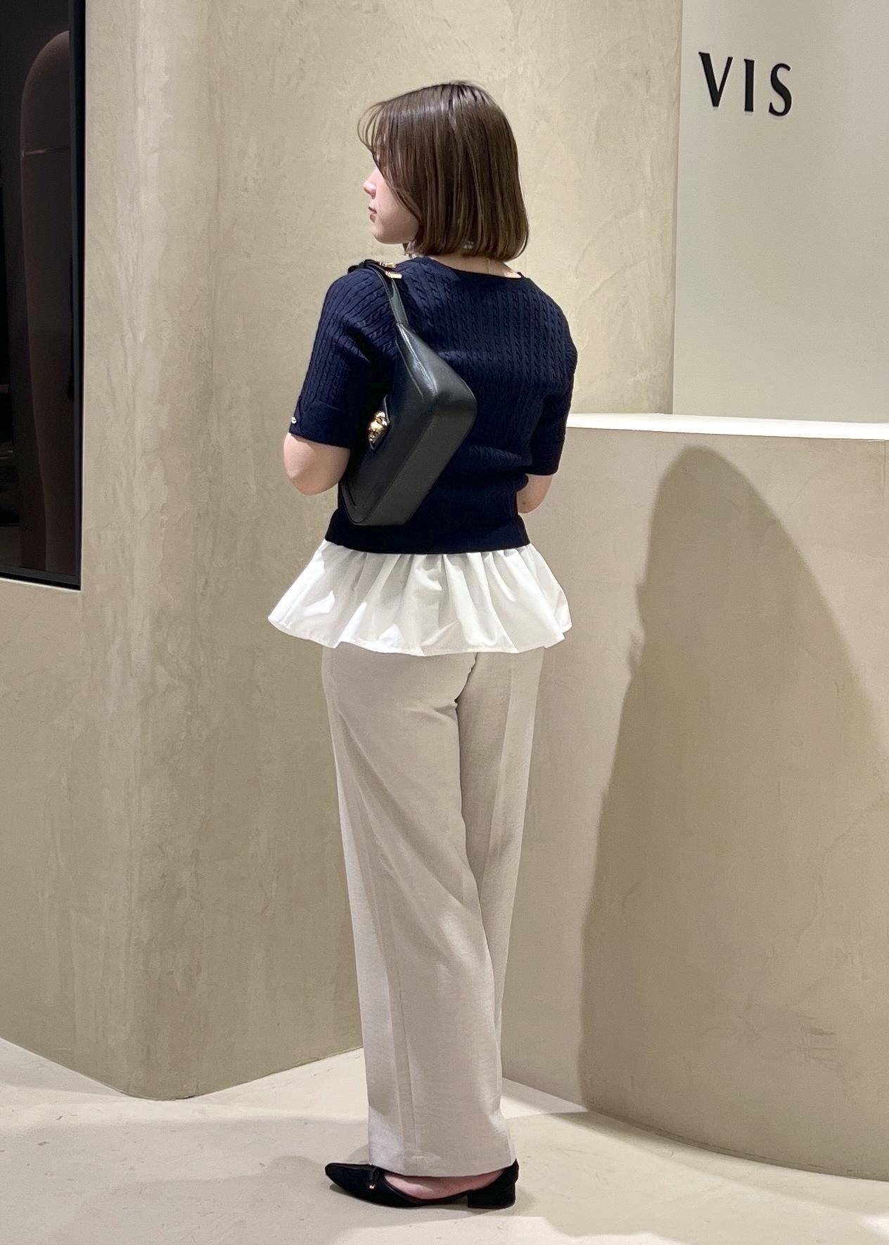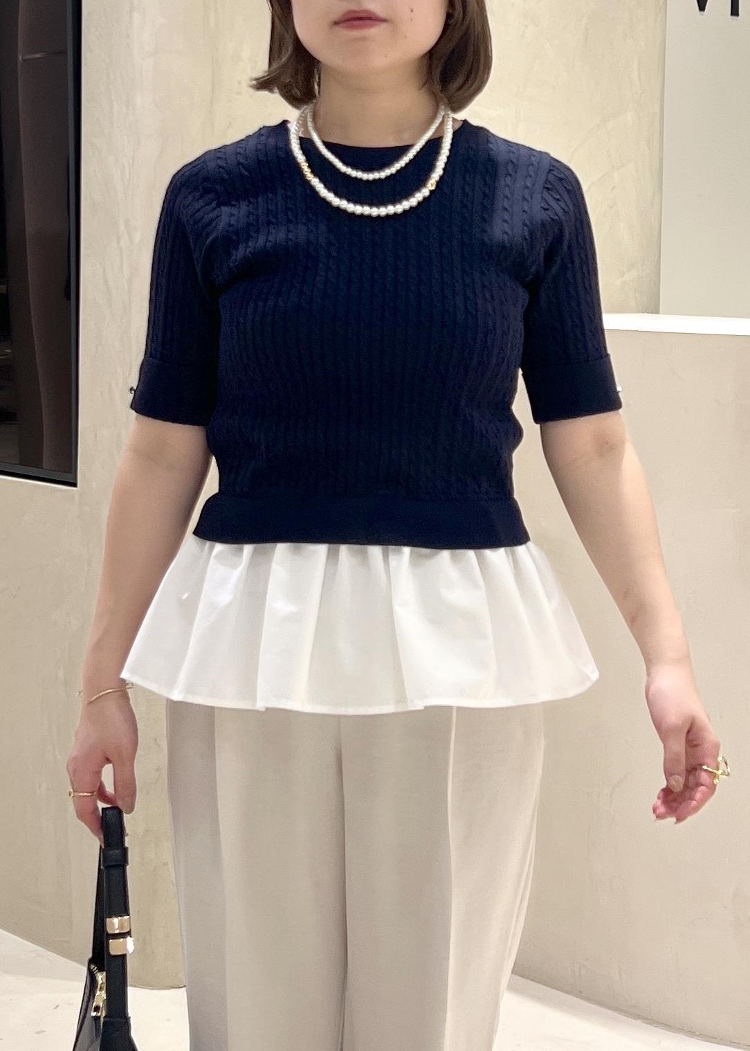 VISレイヤードケーブルハーフスリーブニットネイビー / F¥5,929レビューフリルが女性らしさを感じさせてくれて、オンオフ兼用にオススメのトップスです!