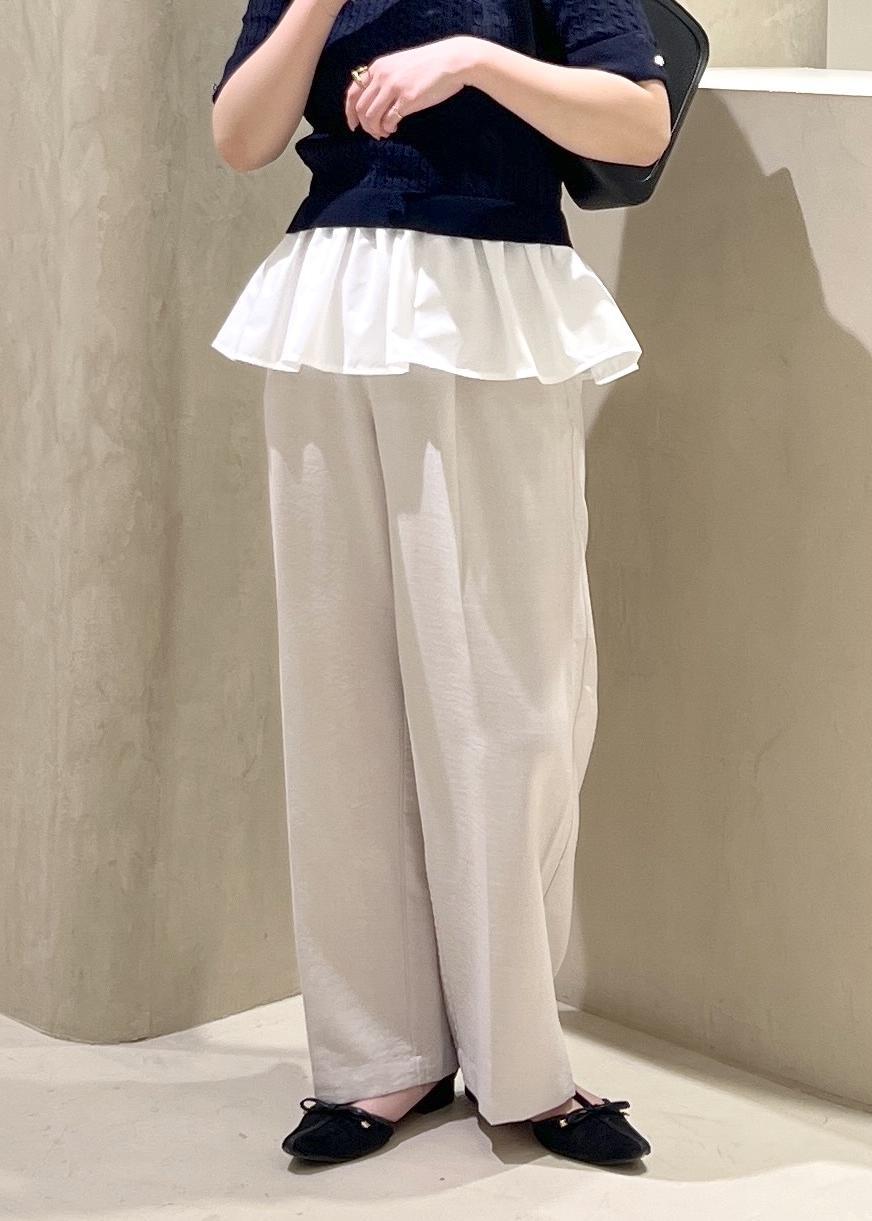 キナリは透け感があるので、インナーは形や色を拾いにくいものがおすすめです。サラッとしてひんやり感があるので、これからのシーズンに大活躍のパンツです。 -