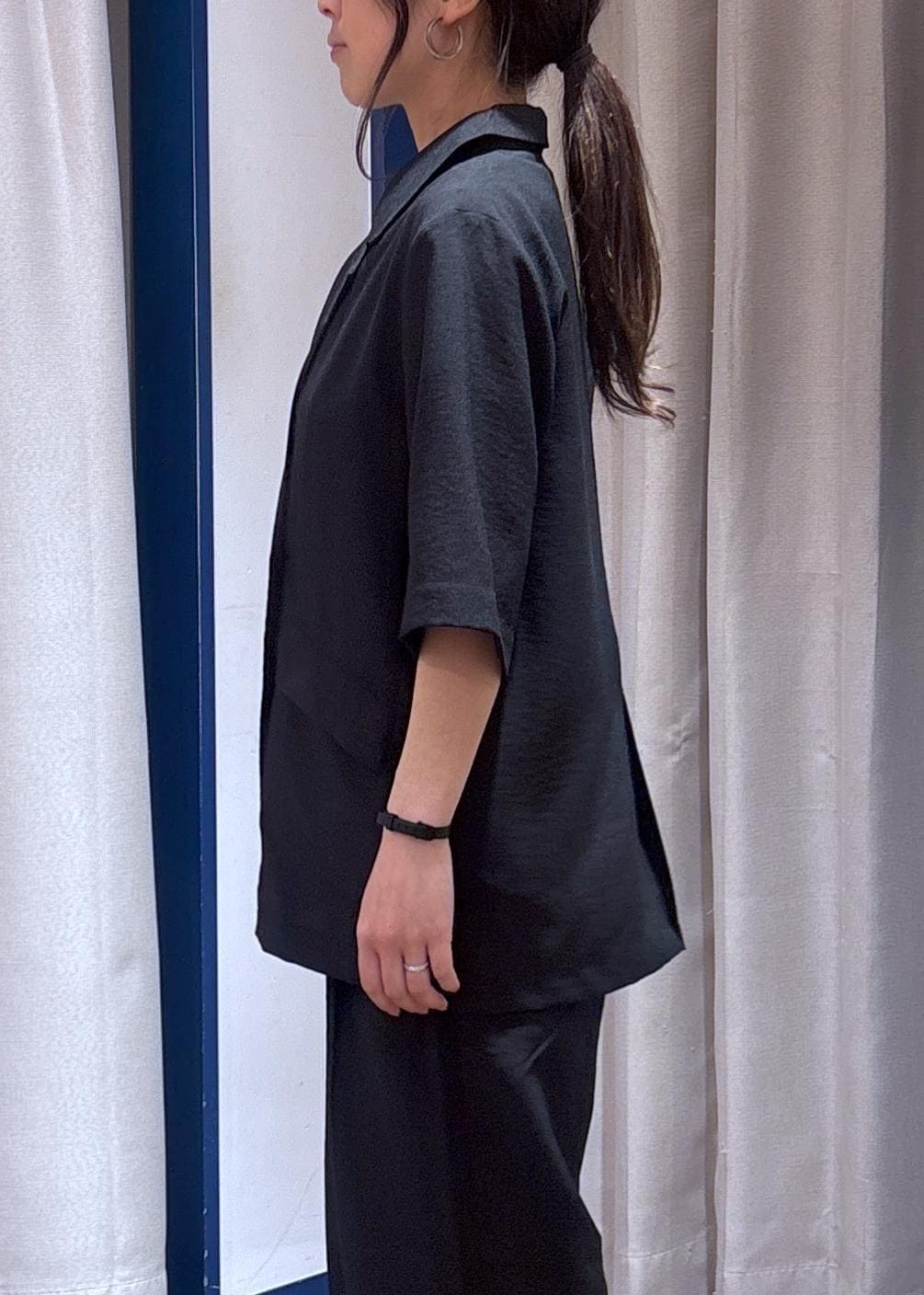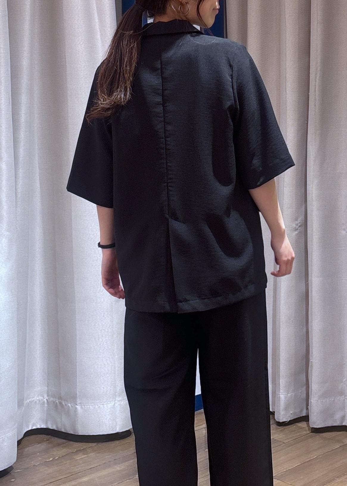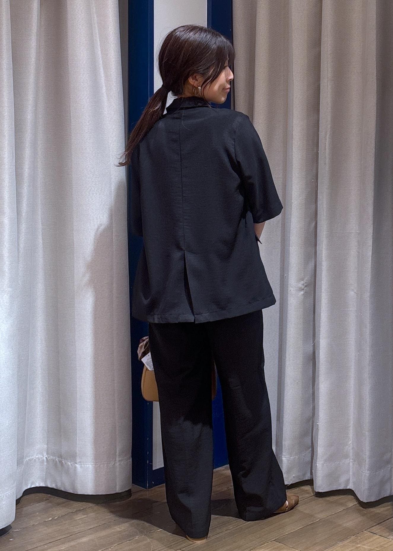 VIS美easyリネンライクハーフスリーブダブルジャケット/接触冷感・セットアップ対応ブラック / S¥7,909レビュー156cm/S着用。着丈はお尻にかかる長さで、袖丈はひじがギリギリ見えるくらいです。とにかく軽い生地で真夏もカーディガン感覚で着られます◎洗濯機で洗えるのも嬉しい‼︎少しゆったりめなサイズ感ですが広がらないのですっきり見えます!