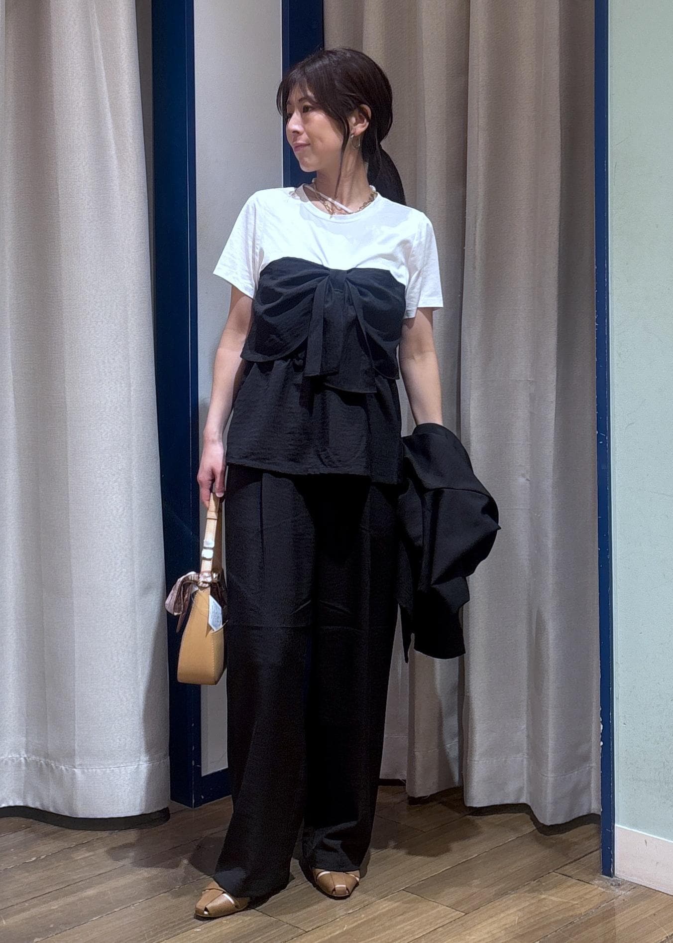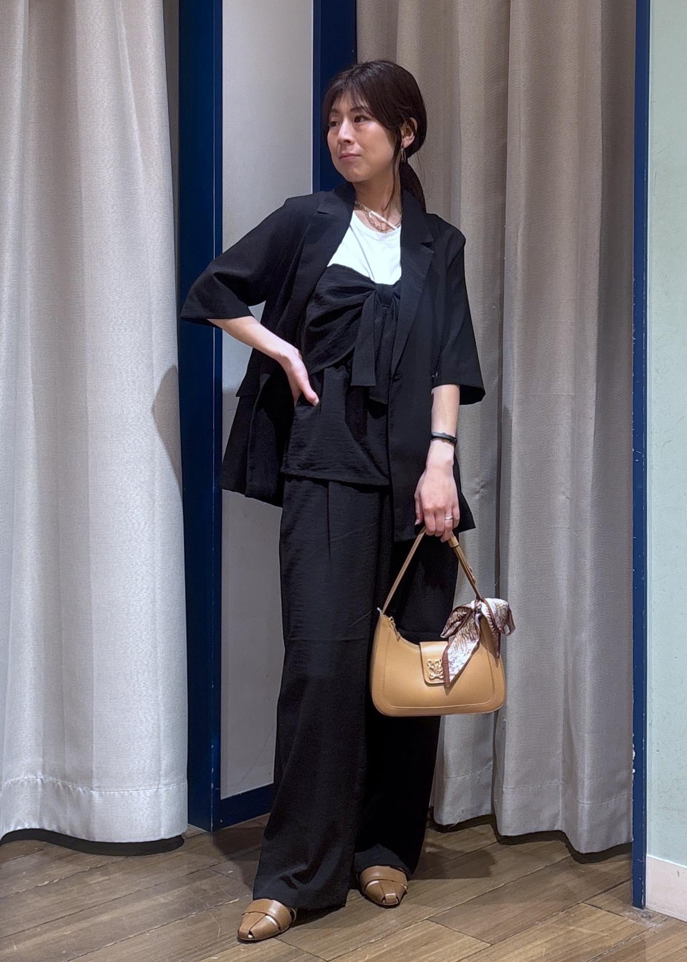 VIS美easyリネンライクリボンビスチェトップス/イージーケア・接触冷感・セットアップ対応ブラック / F¥5,489レビュー156cm/F着用。着丈はお尻にかかる長さで、袖丈は二の腕が隠れる長さです。一枚で着映えするデザインで、同じカラーのボトムと合わせるとキチンと見えがしっかりできます◎洗濯機で洗えるのも嬉しい‼︎